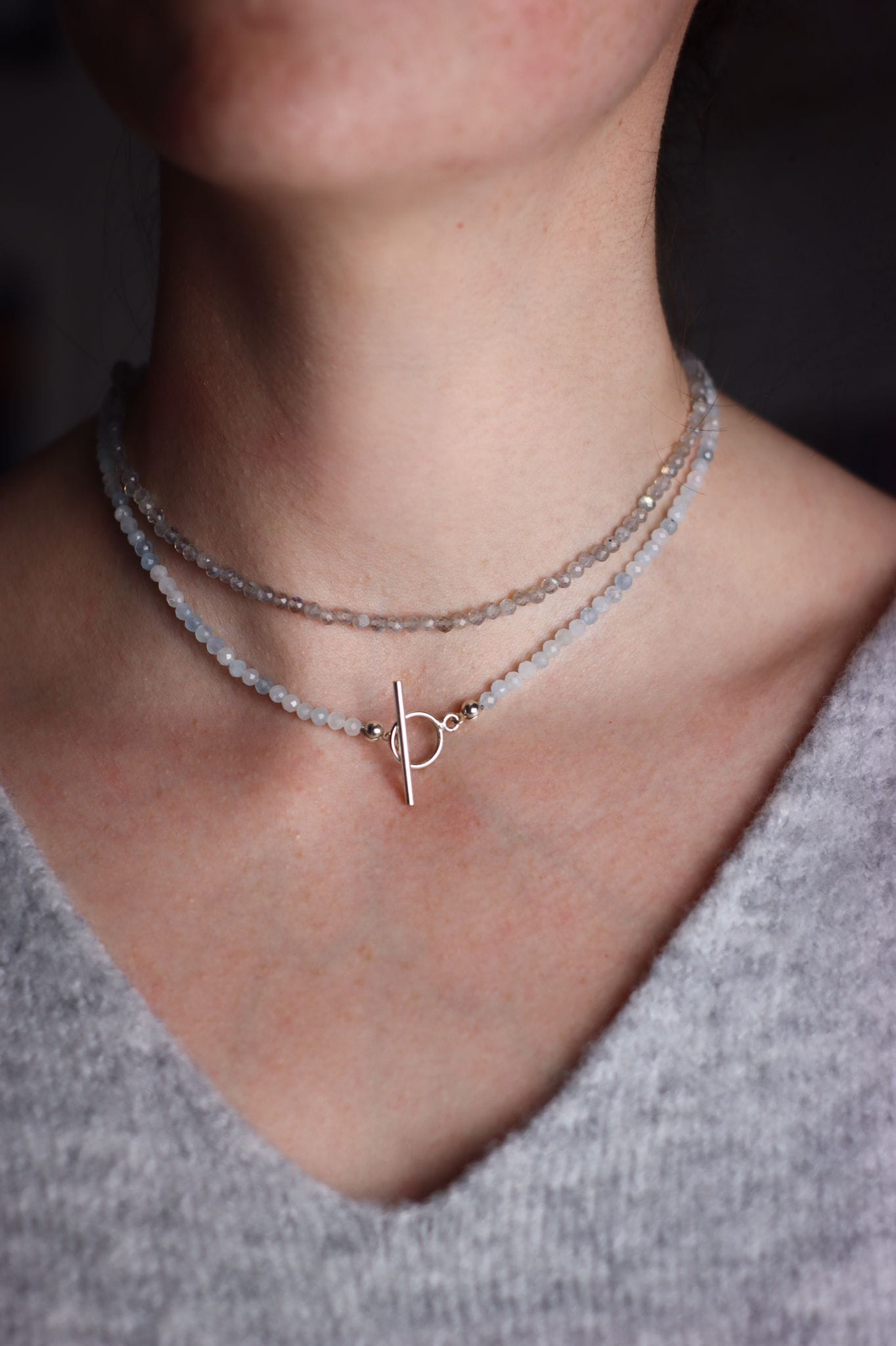 Ręcznie wykonany naszyjnik klasyczny z fasetowanych labradorytów oraz srebra pr.925.