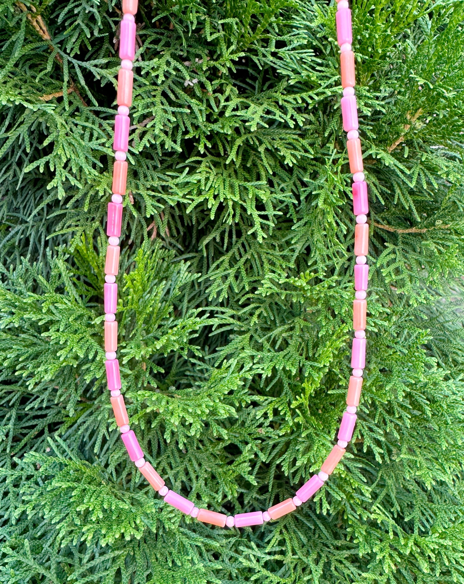 Naszyjnik klasyczny koral różowy i pomarańczowy