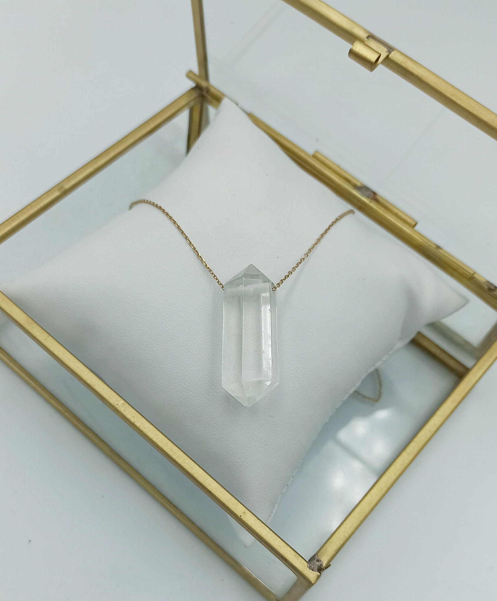 Naszyjnik sopel czystego kryształu górskiego na łańcuszku z pozłacanego srebra pr. 925