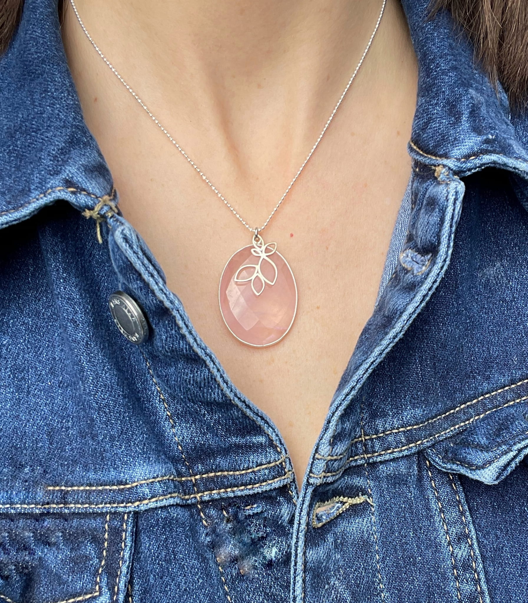 Naszyjnik z fasetowanego kwarcu różowego na łańcuszku z klasycznego srebra pr. 925