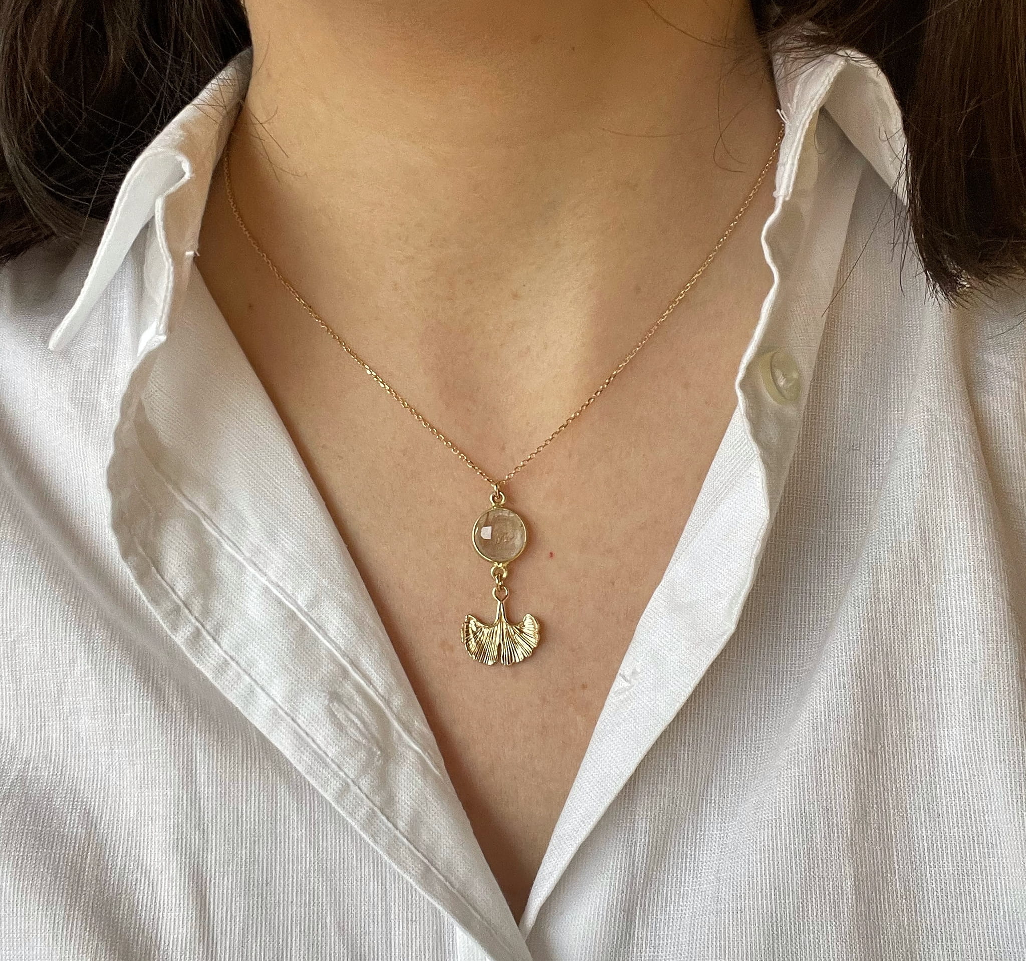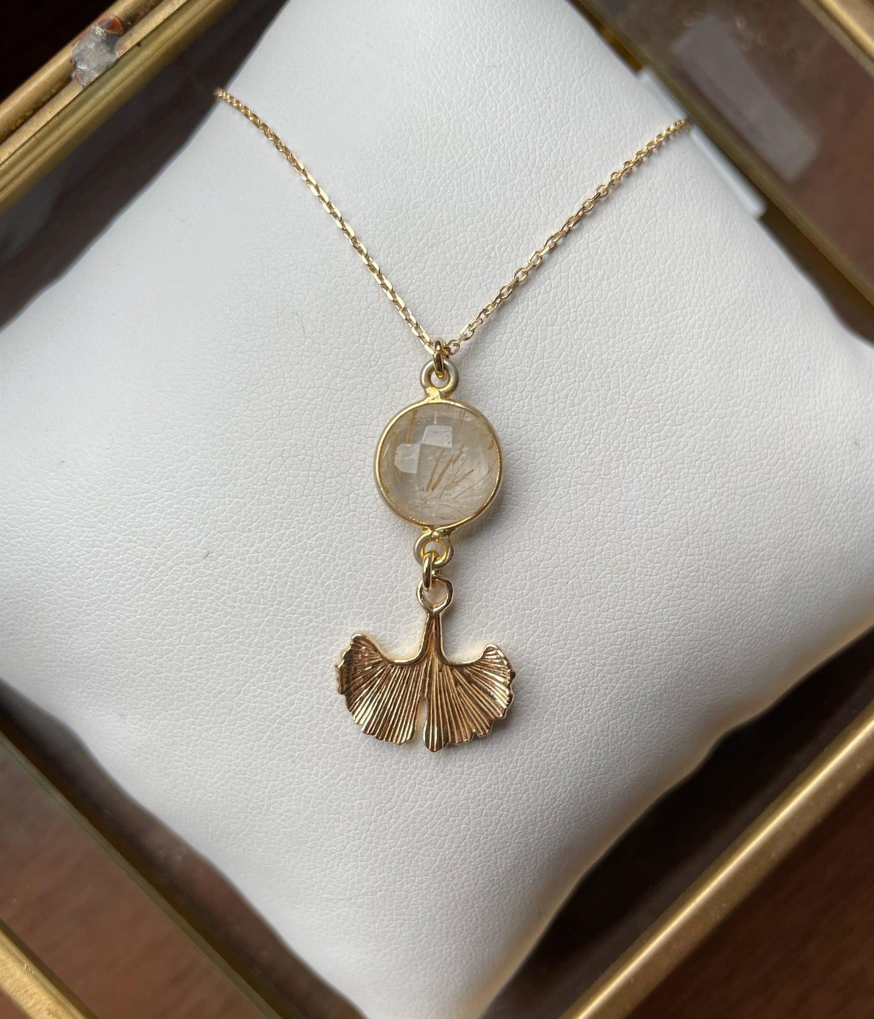 Naszyjnik z pięknego kwarcu z rutenem i miłorzębu na łańcuszku ze srebra pr.925