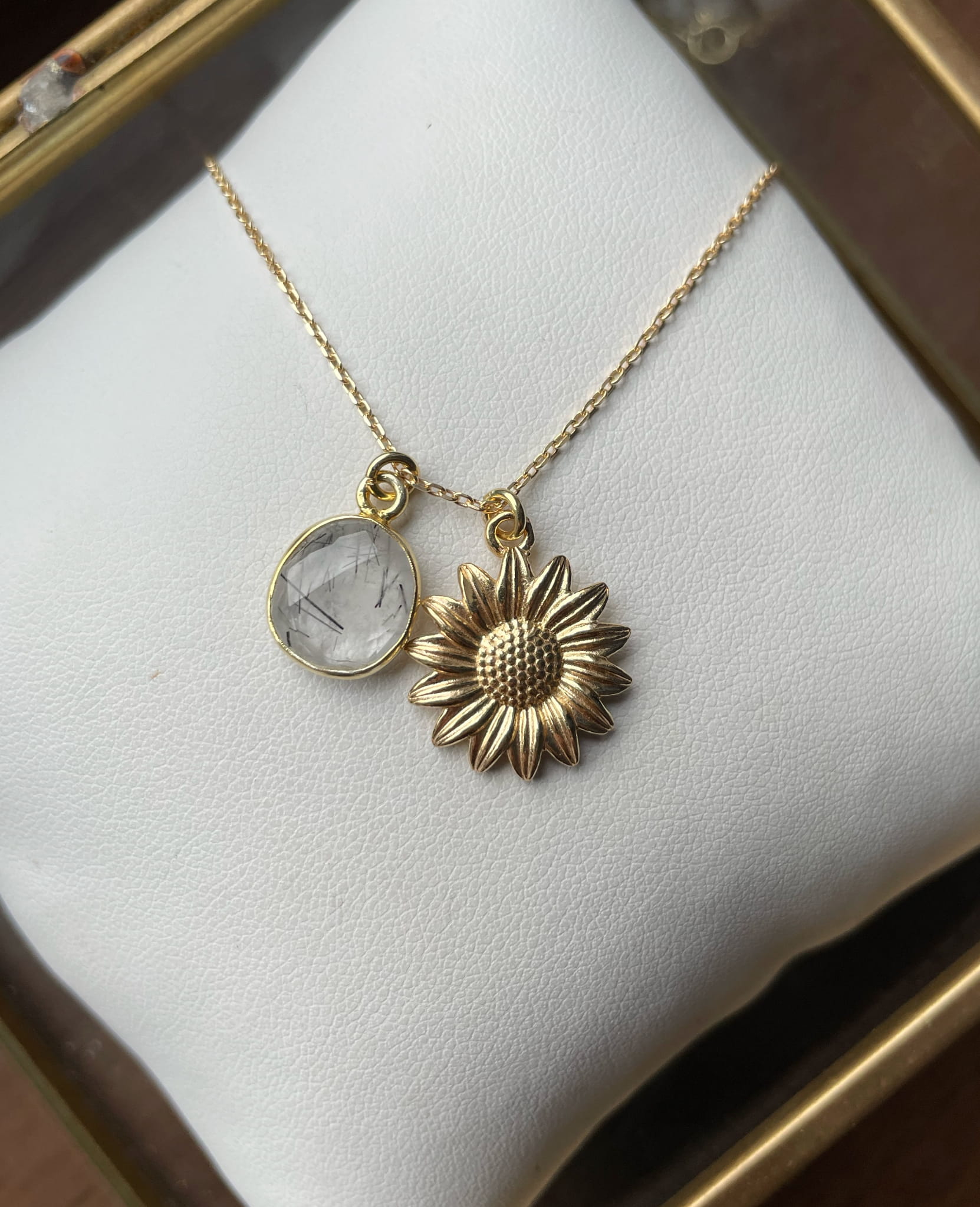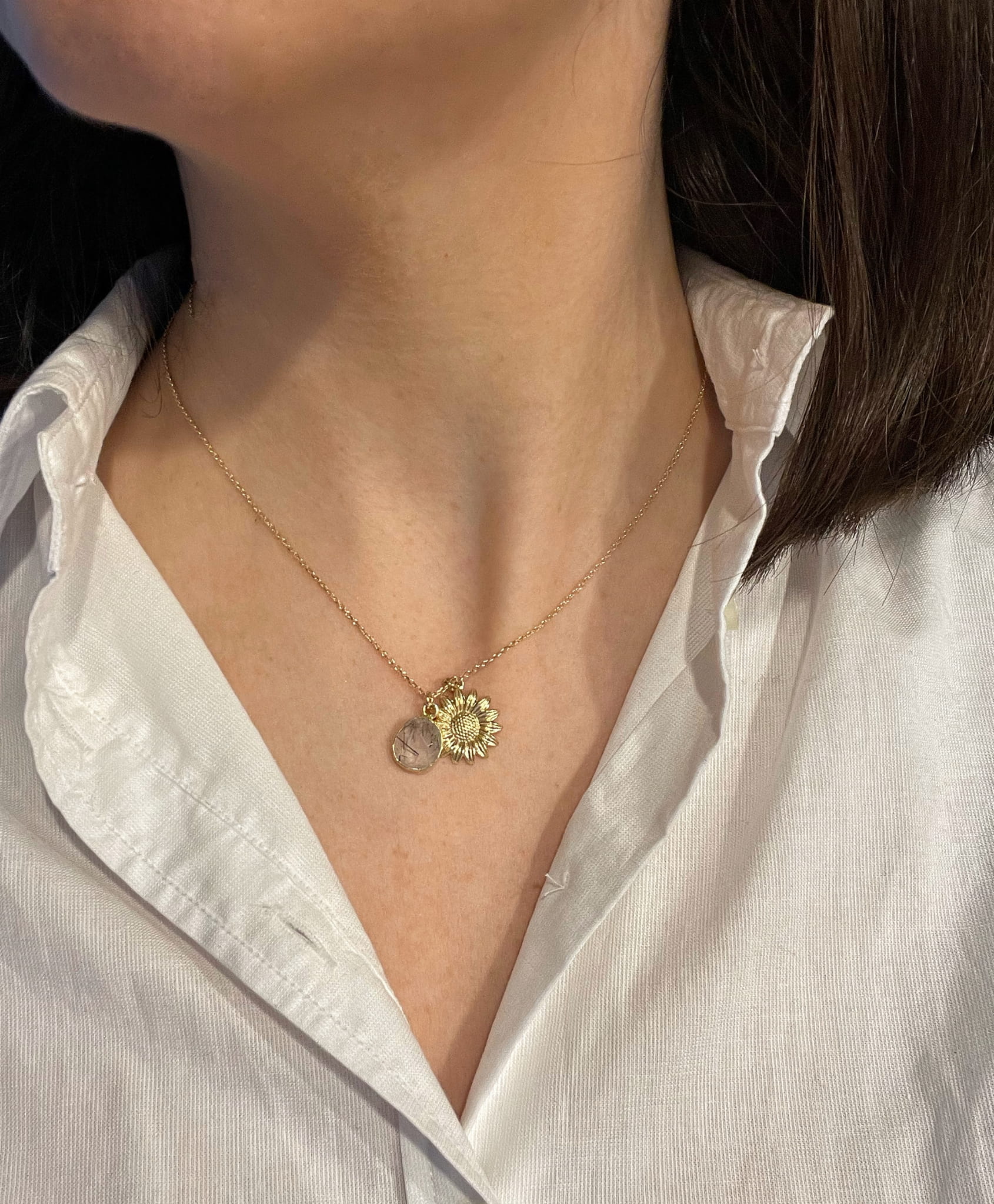 Naszyjnik kwarc z turmalinem i słonecznik