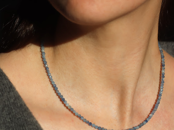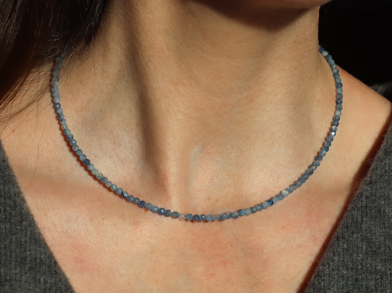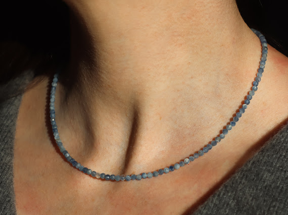 Naszyjnik z pięknych fasetowanych niebieskich kyanitów i ze srebra pr 925