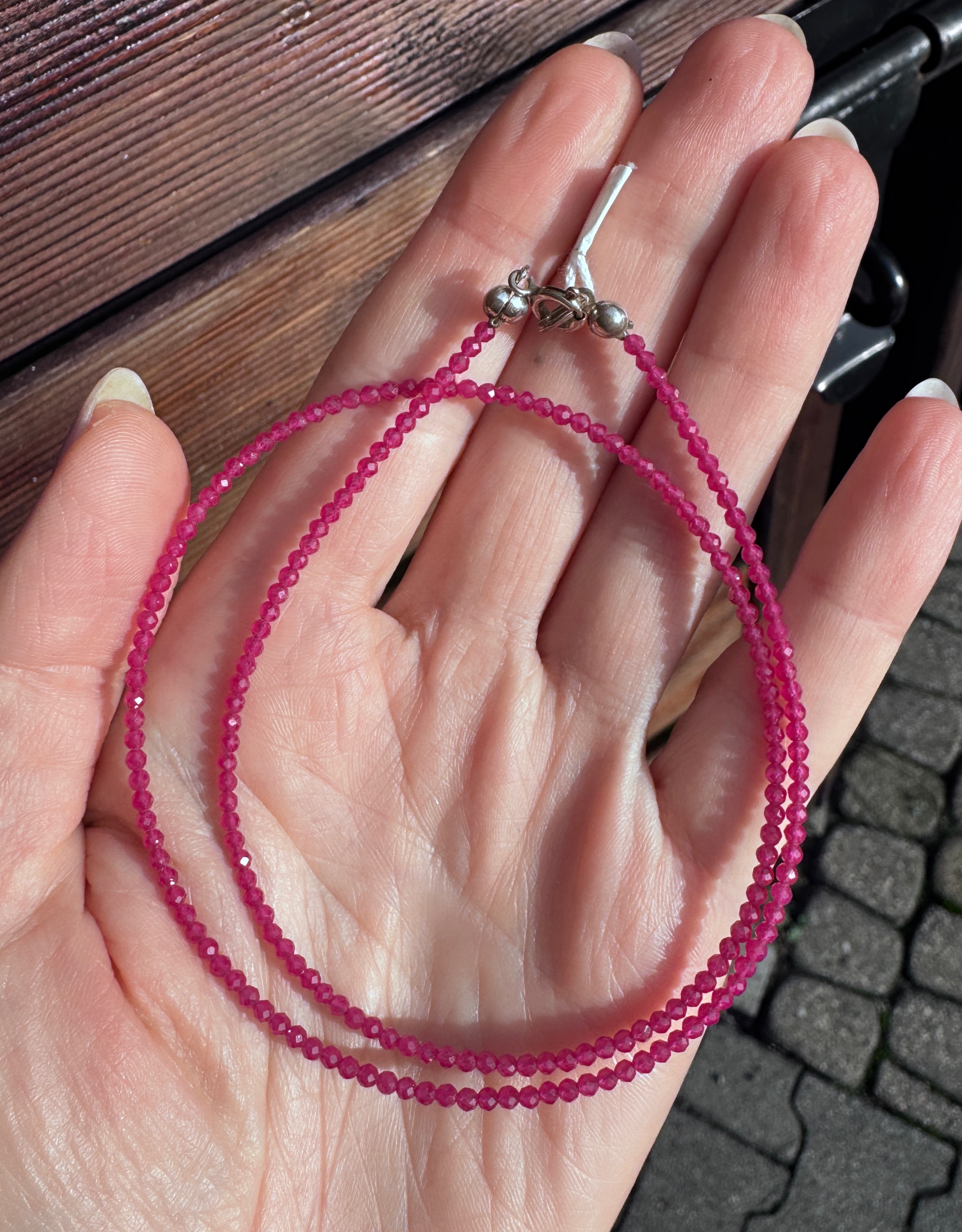 Naszyjnik z pięknych fasetowanych rubinów i ze srebra pr 925
