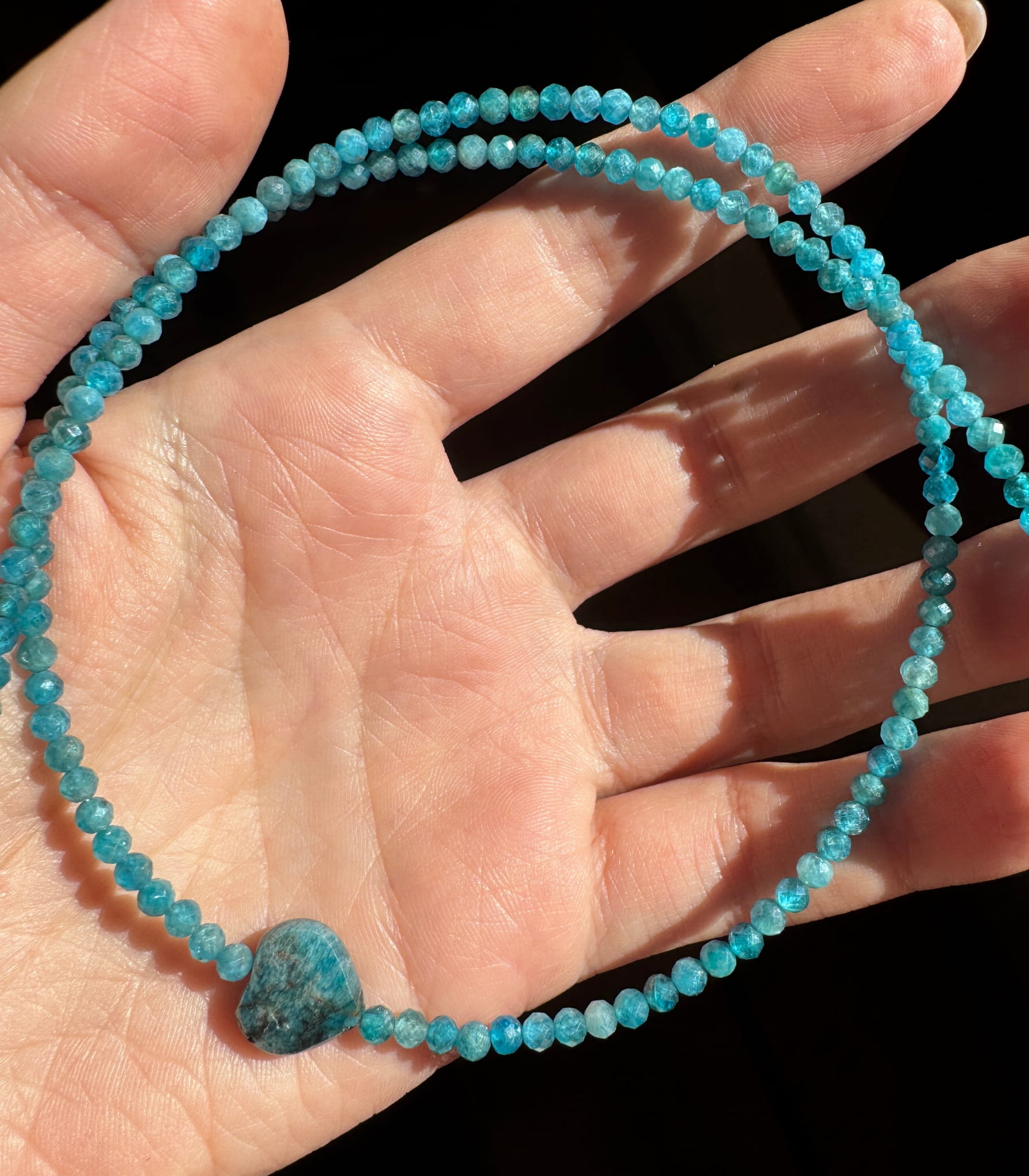 Naszyjnik ręcznie wykonany z fasetowanych apatytów oraz srebra pr.925