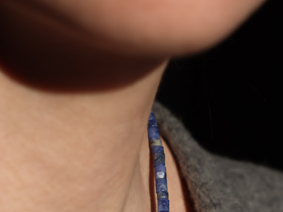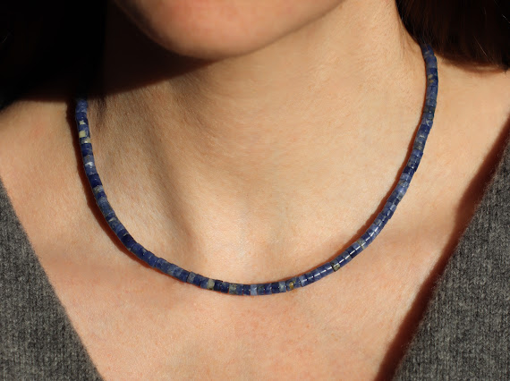Naszyjnik z pięknych plasterków sodalitu i ze srebra pr 925