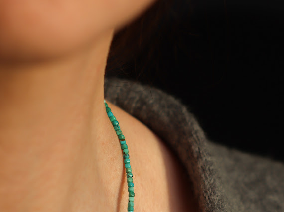 Naszyjnik z pięknych fasetowanych turkus i ze srebra pr 925