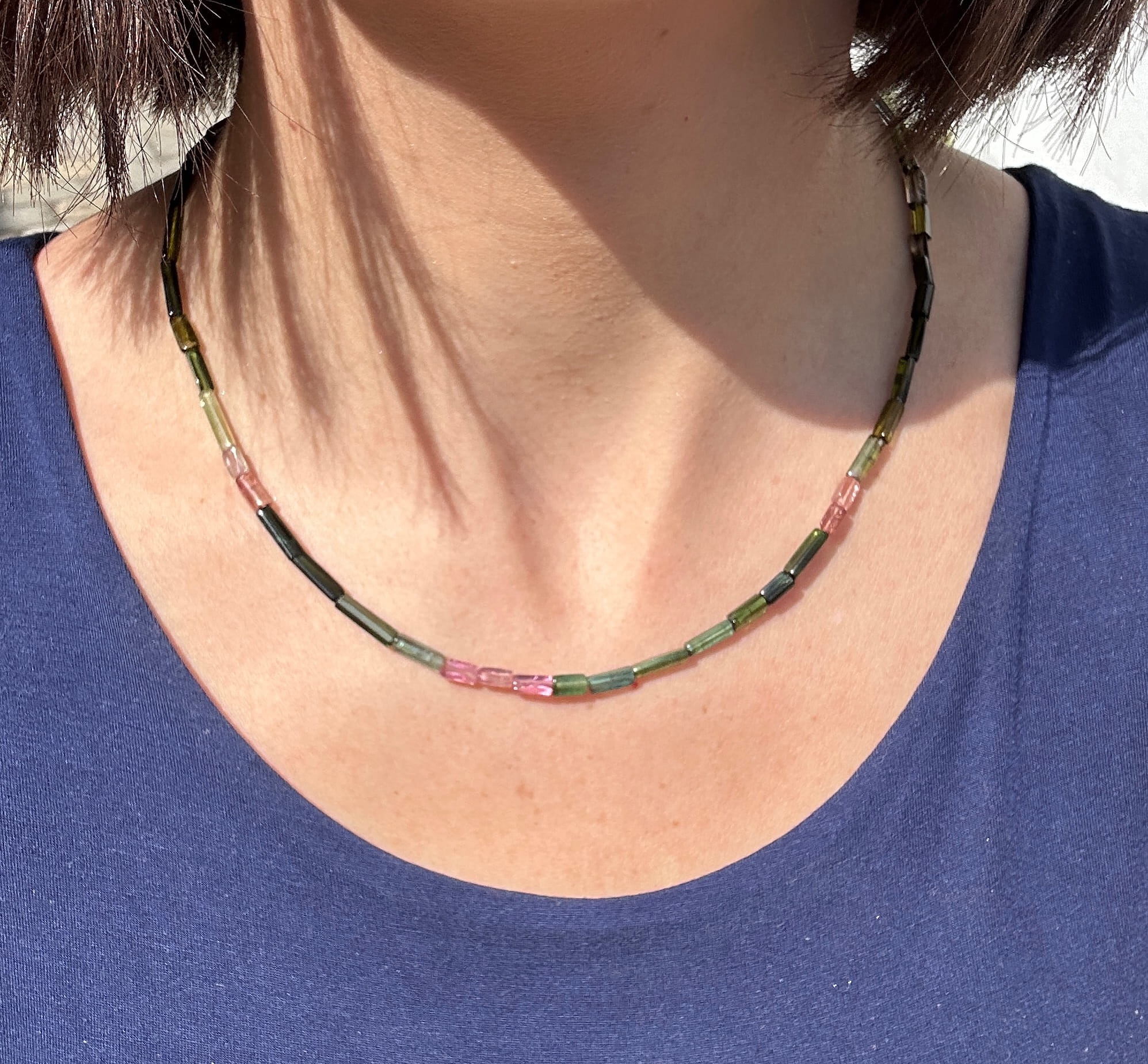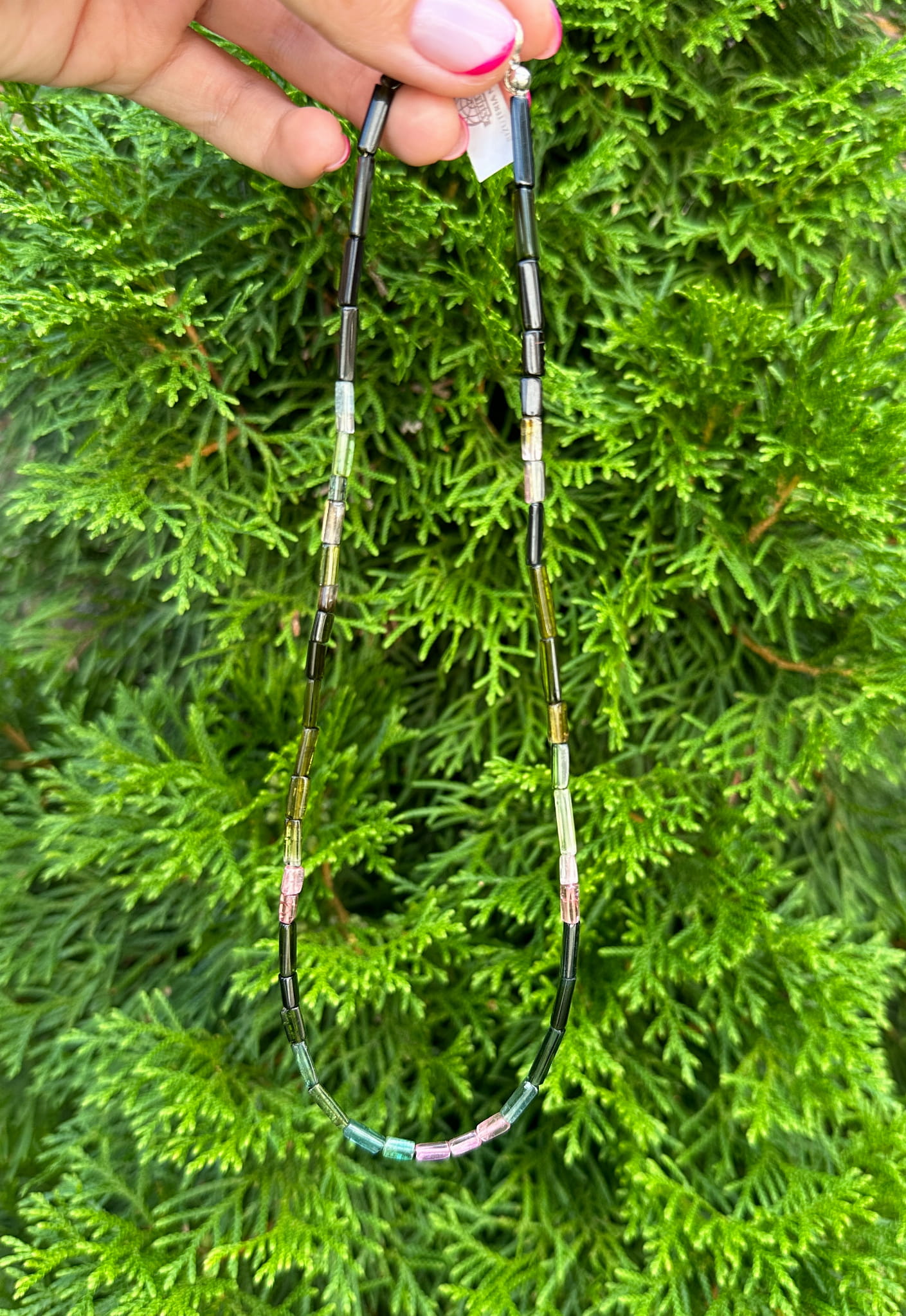 Piękny, ręcznie wykonany naszyjnik z arbuzowych, kolorowych turmalinów i srebra pr. 925