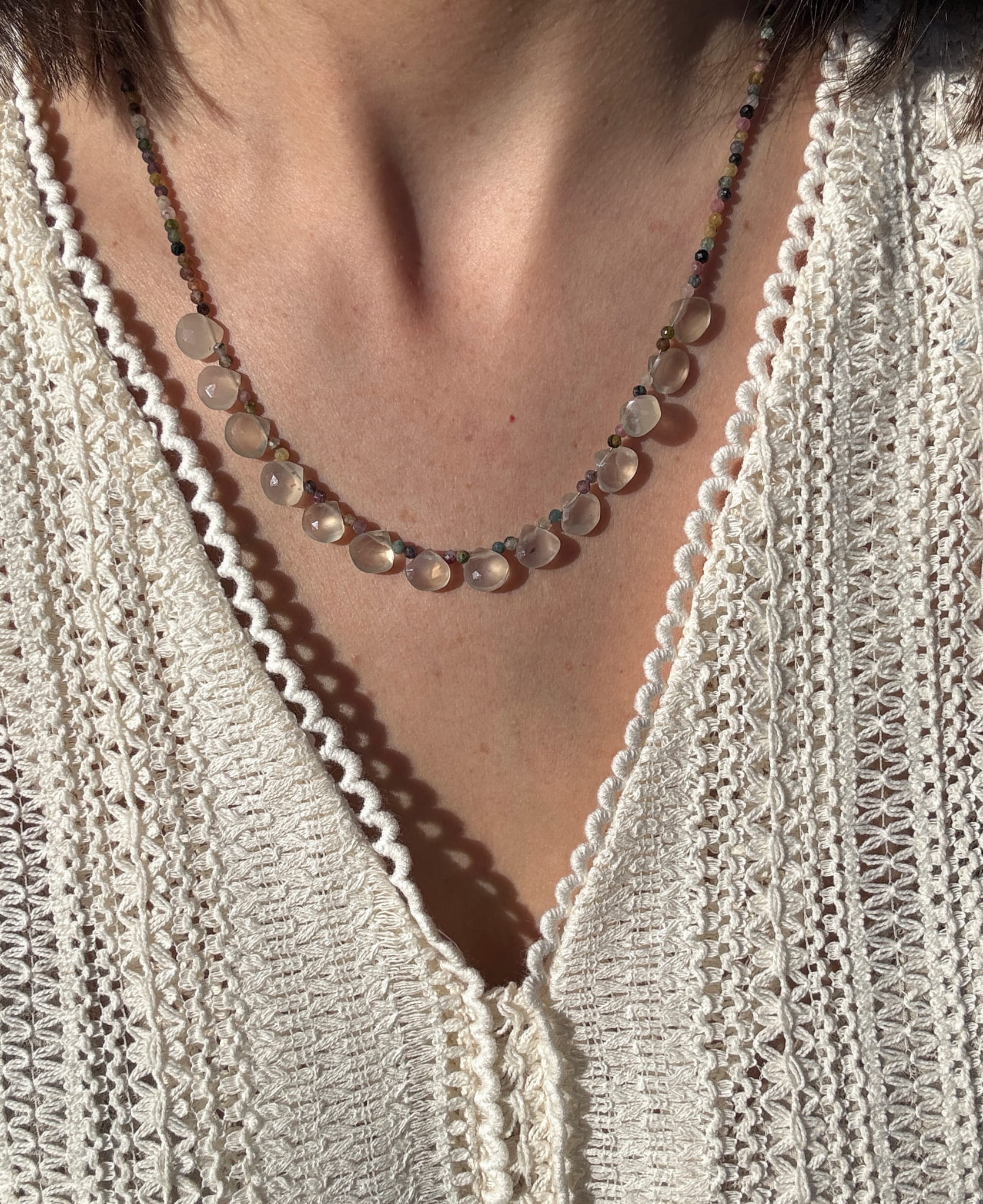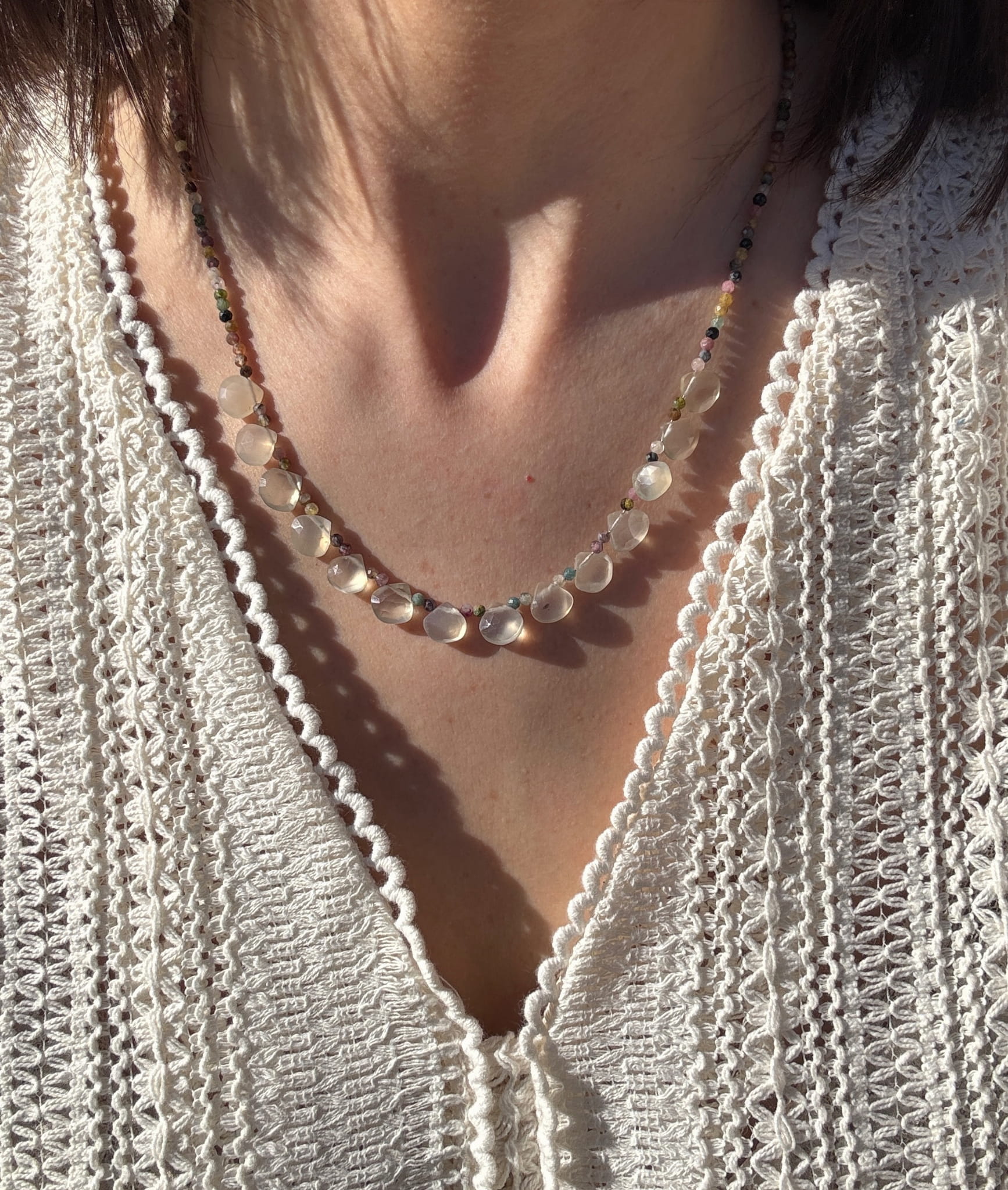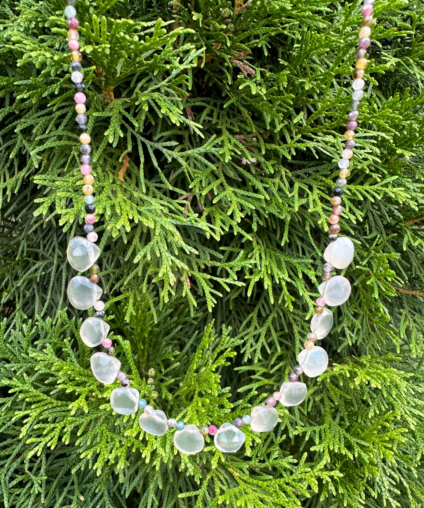 Naszyjnik turmalin fasetowany kolorowy i łezki kamienia księżycowego
