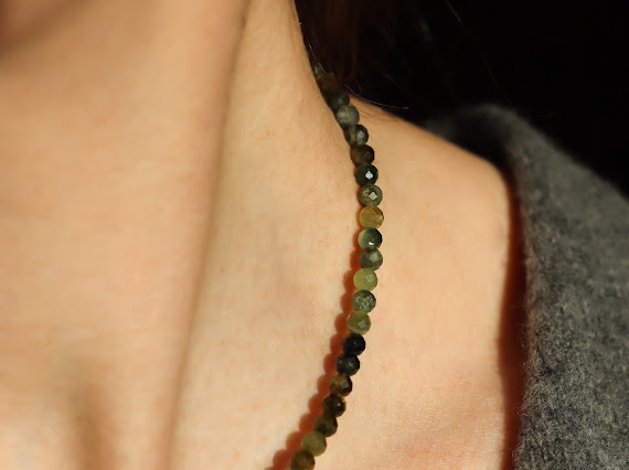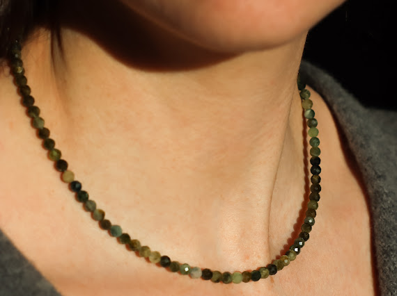 Naszyjnik z pięknych fasetowanych zielonych turmalinów i ze srebra pr 925