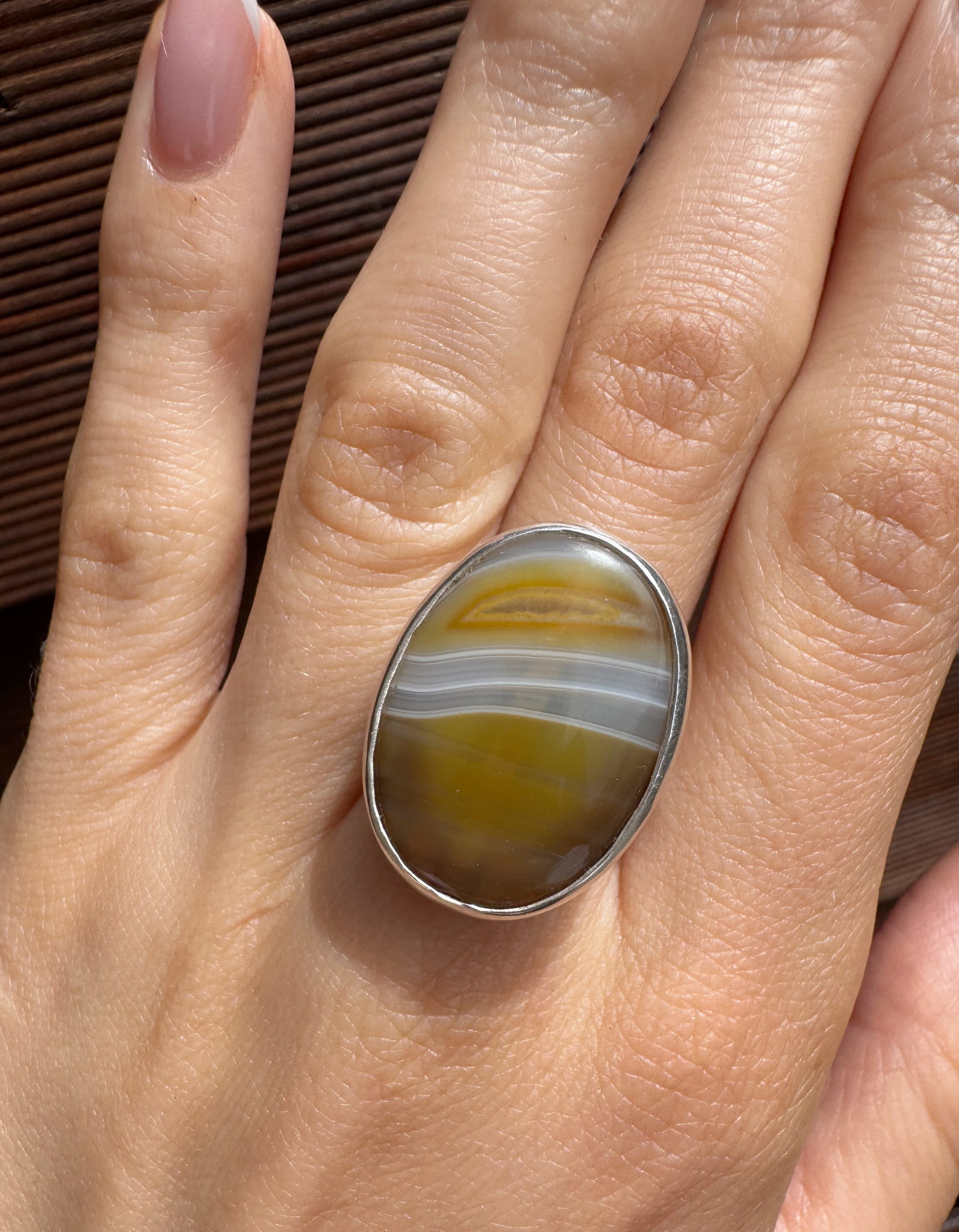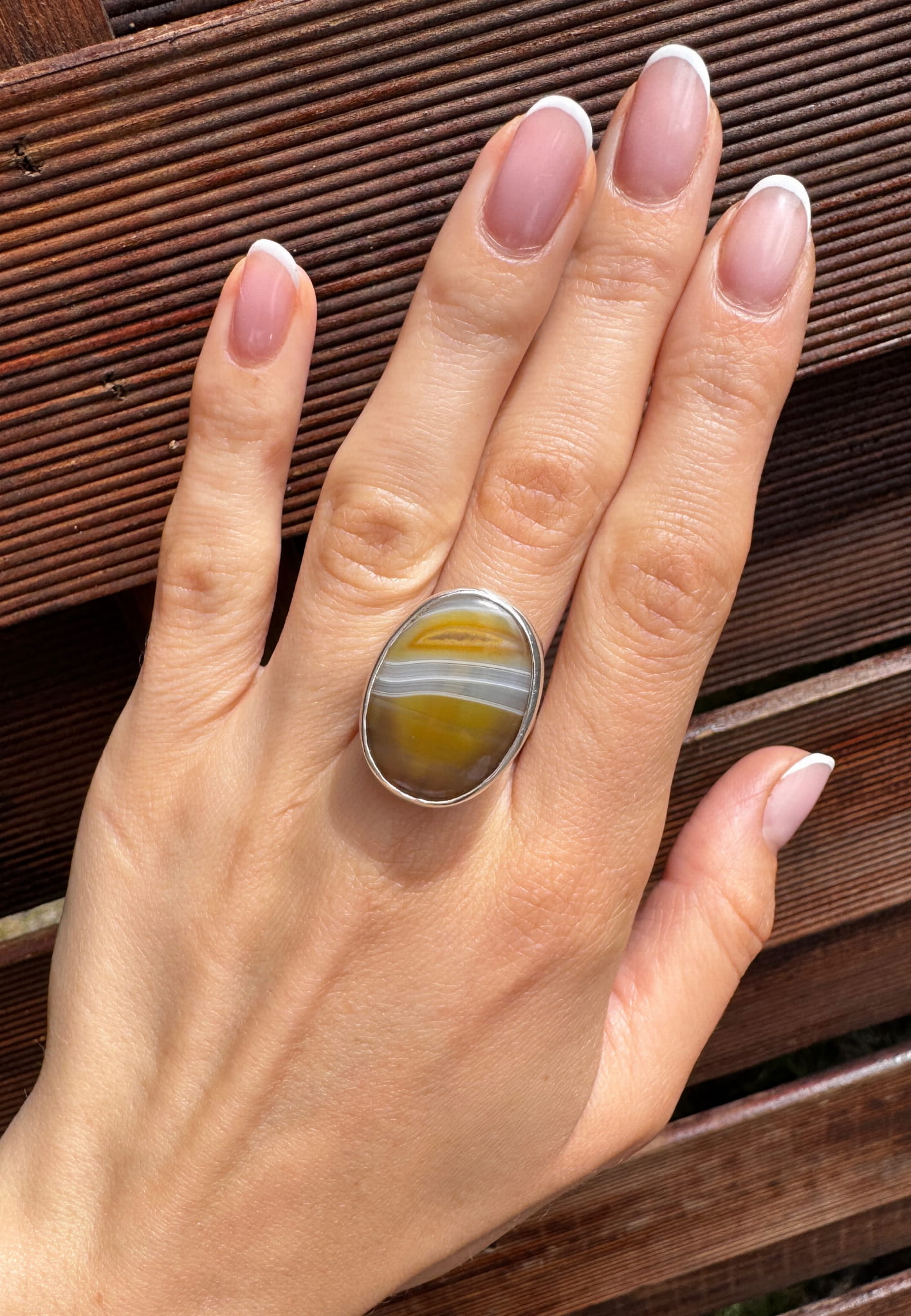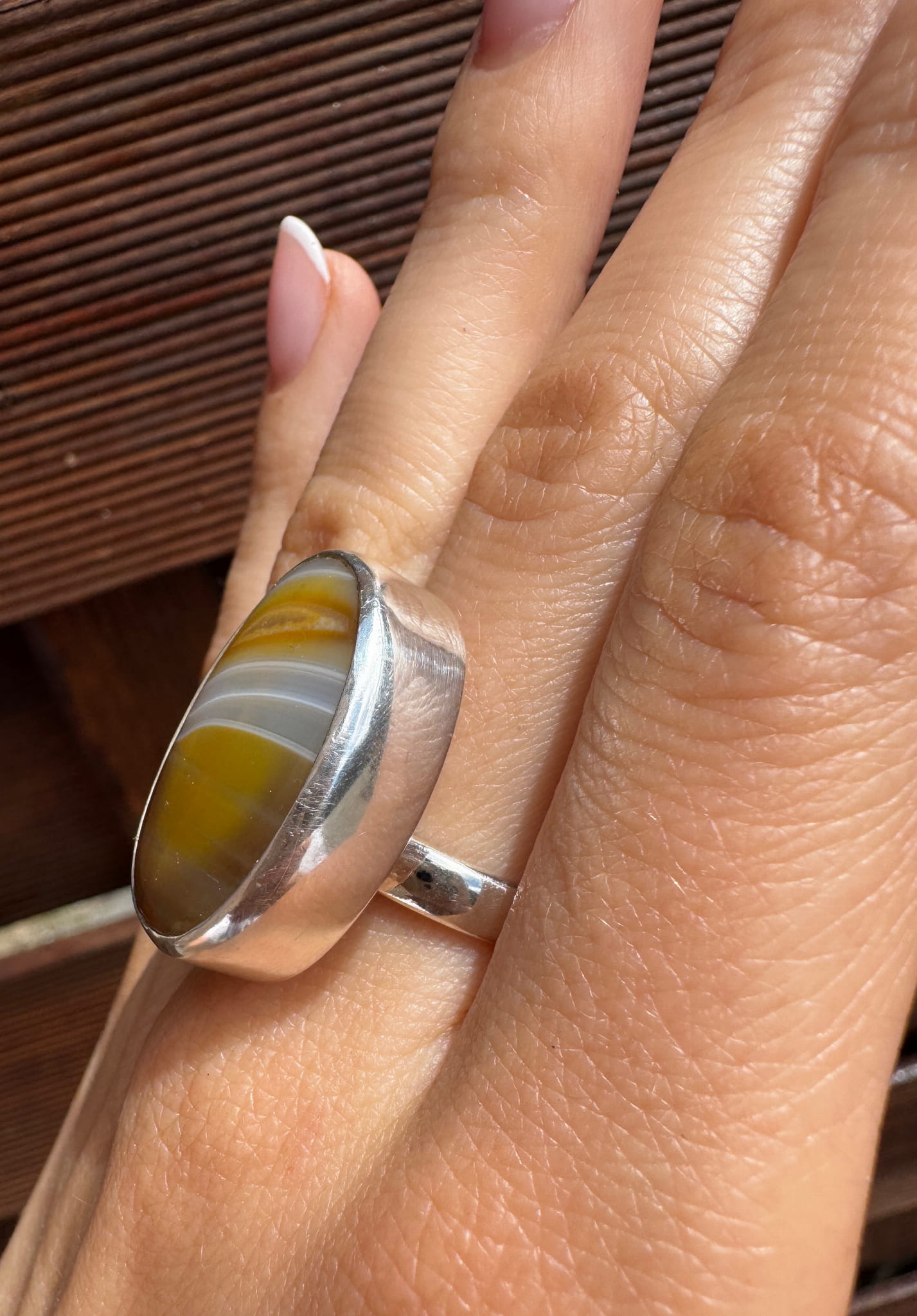 Ręcznie wykonany pierścionek z brązowego agatu i srebra pr.925