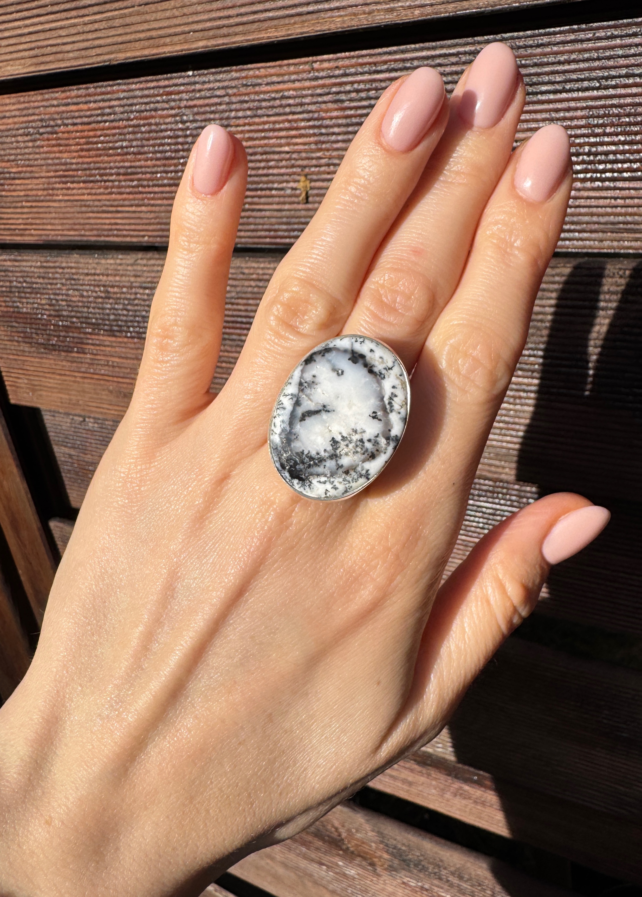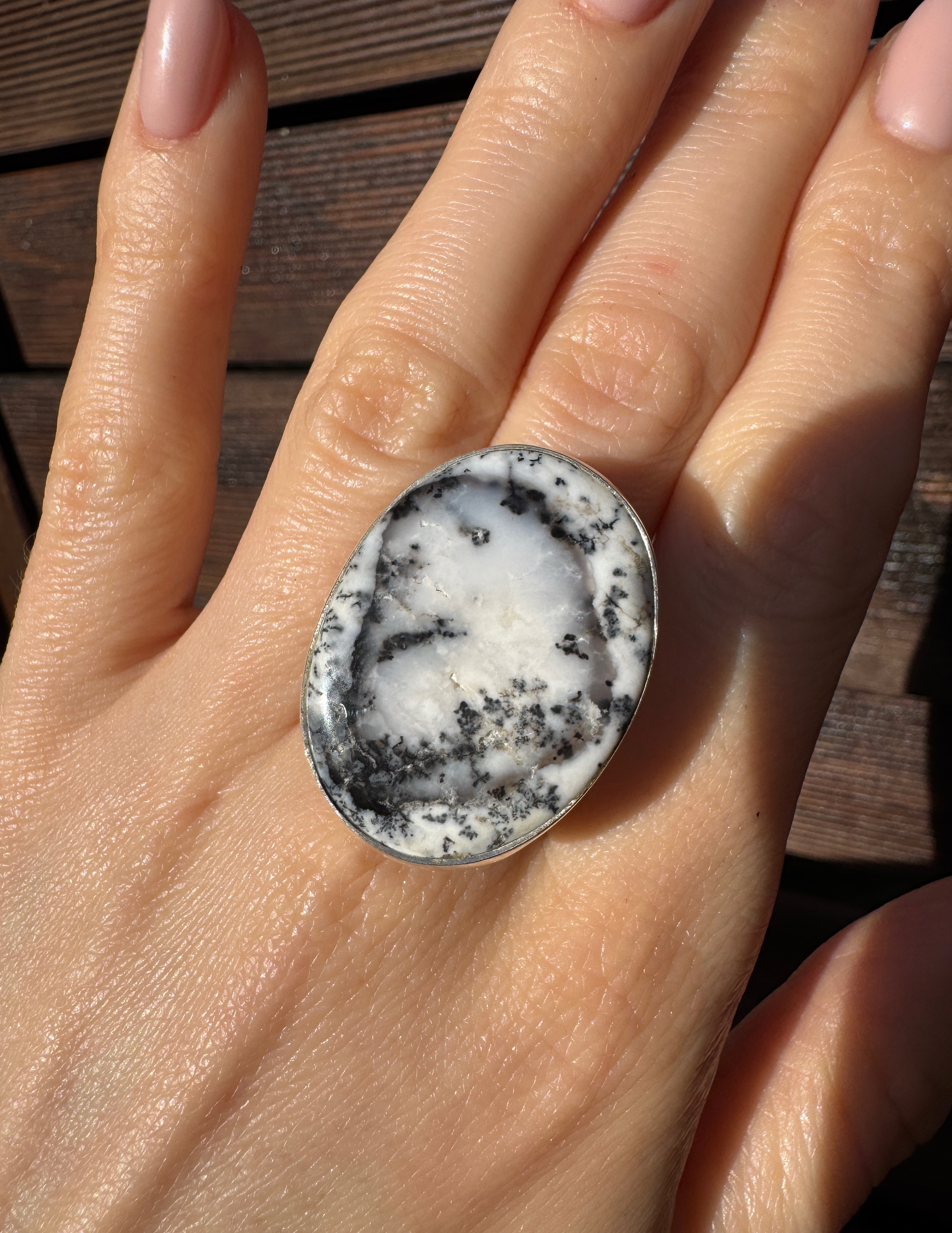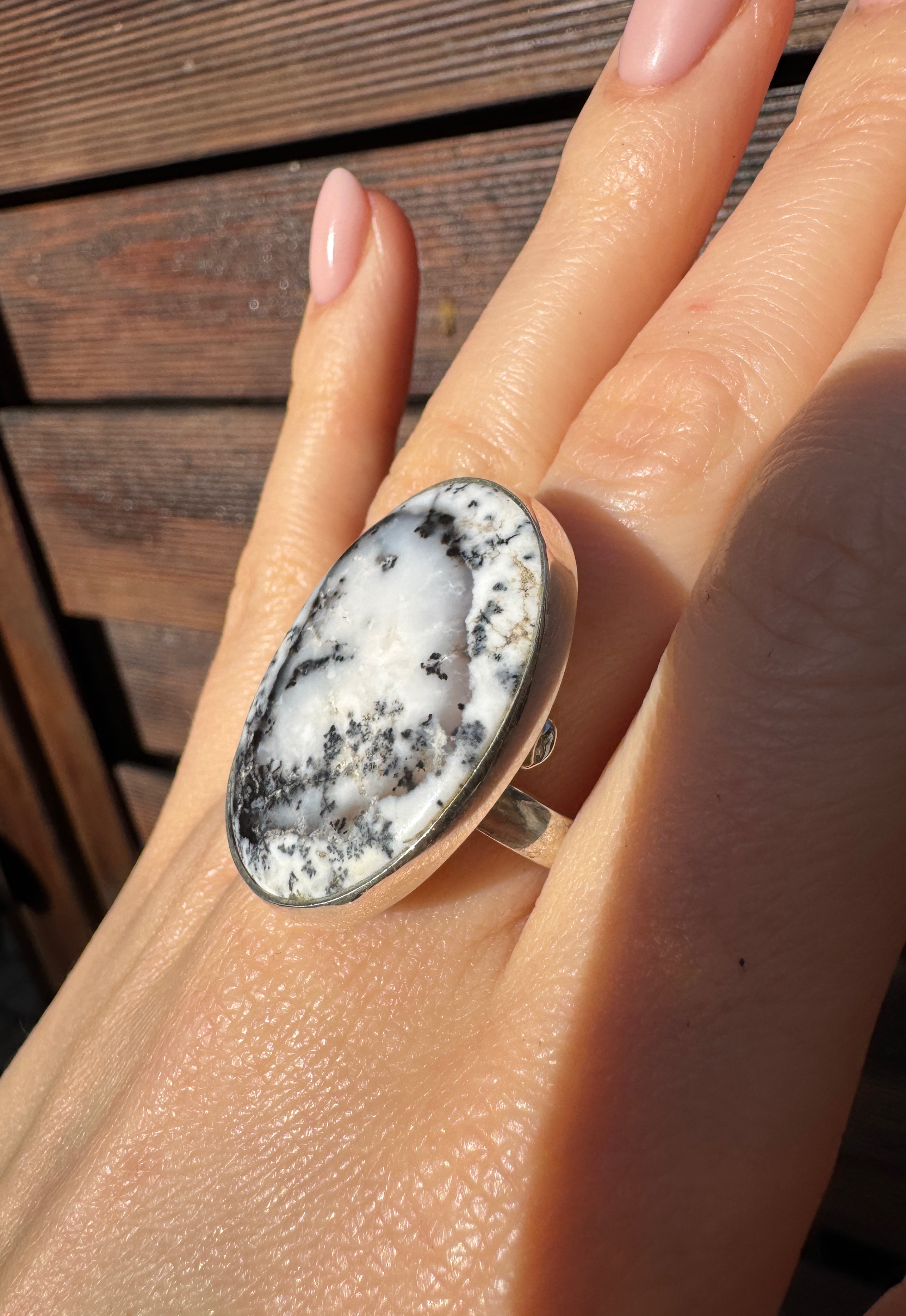 Ręcznie wykonany pierścionek z agatu dendrytowego i srebra pr.925
