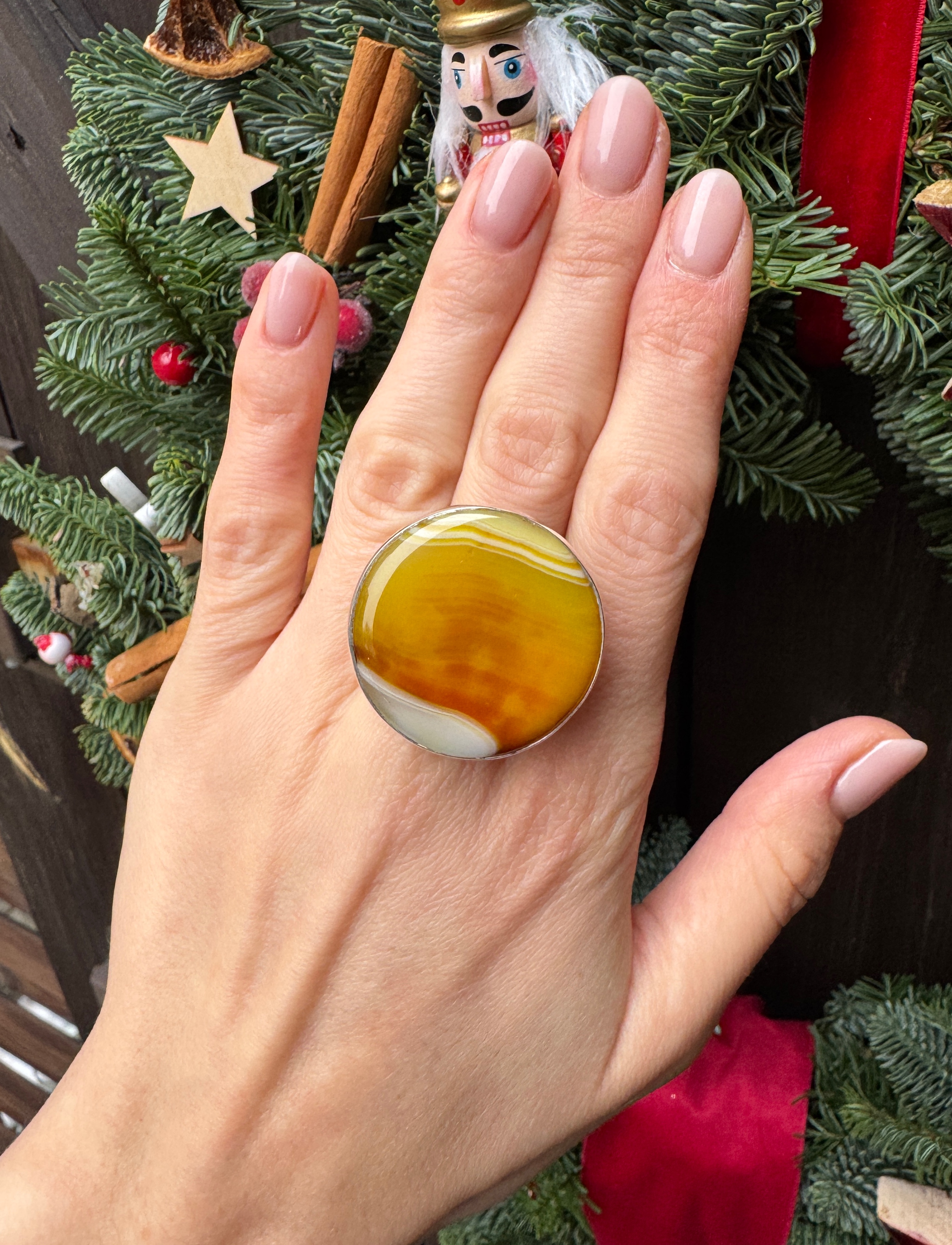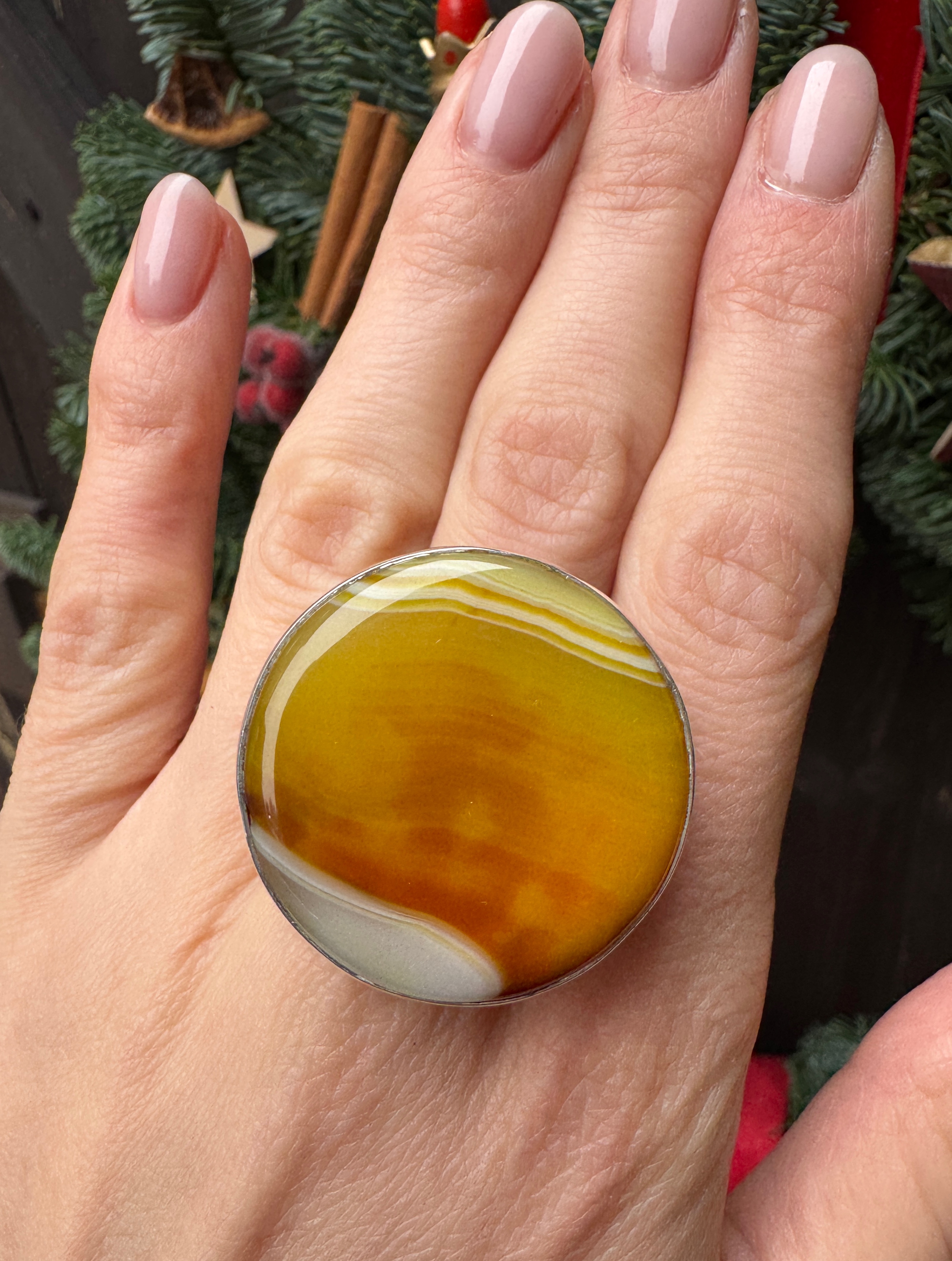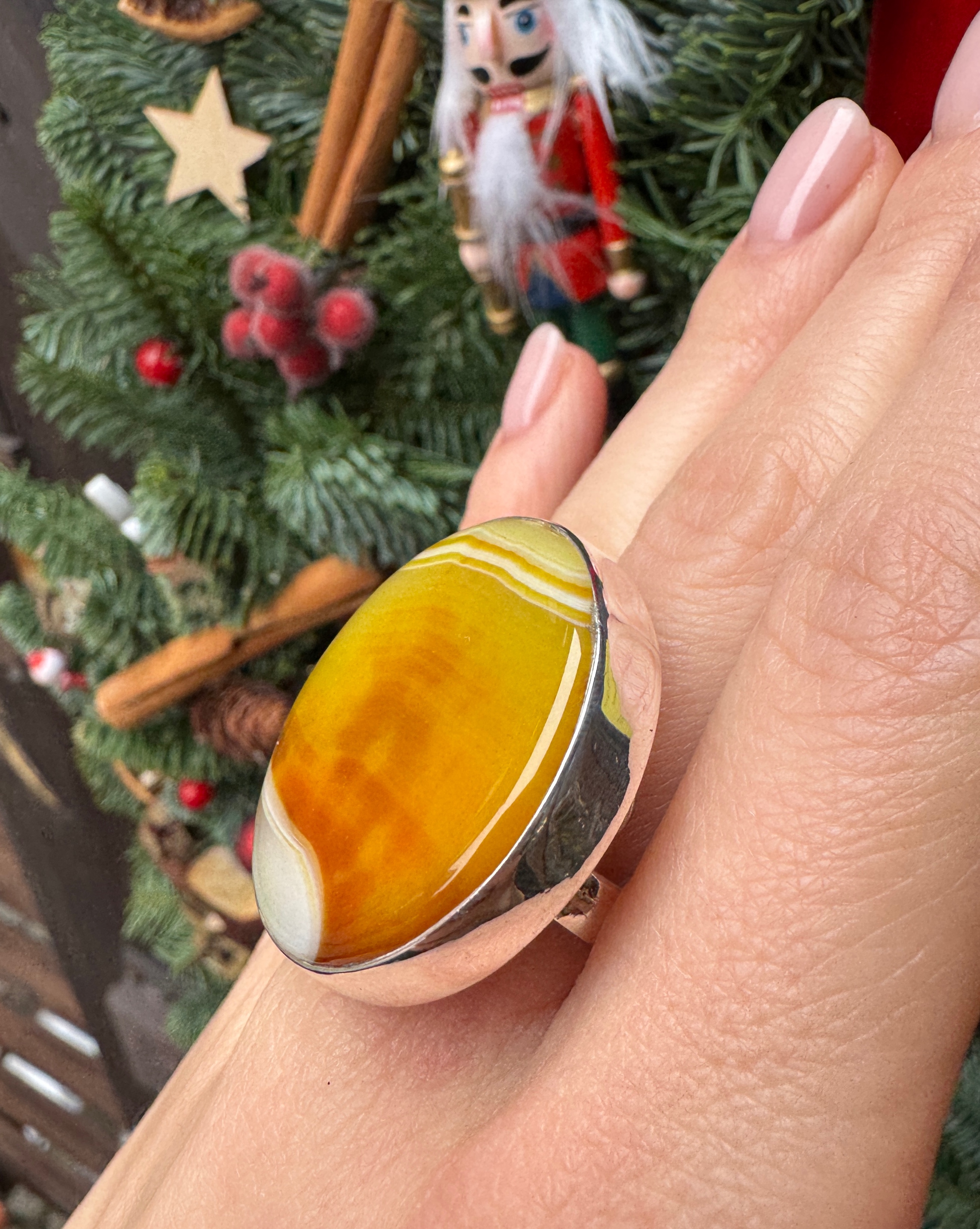 Ręcznie wykonany pierścionek z żółtego agatu i srebra pr.925