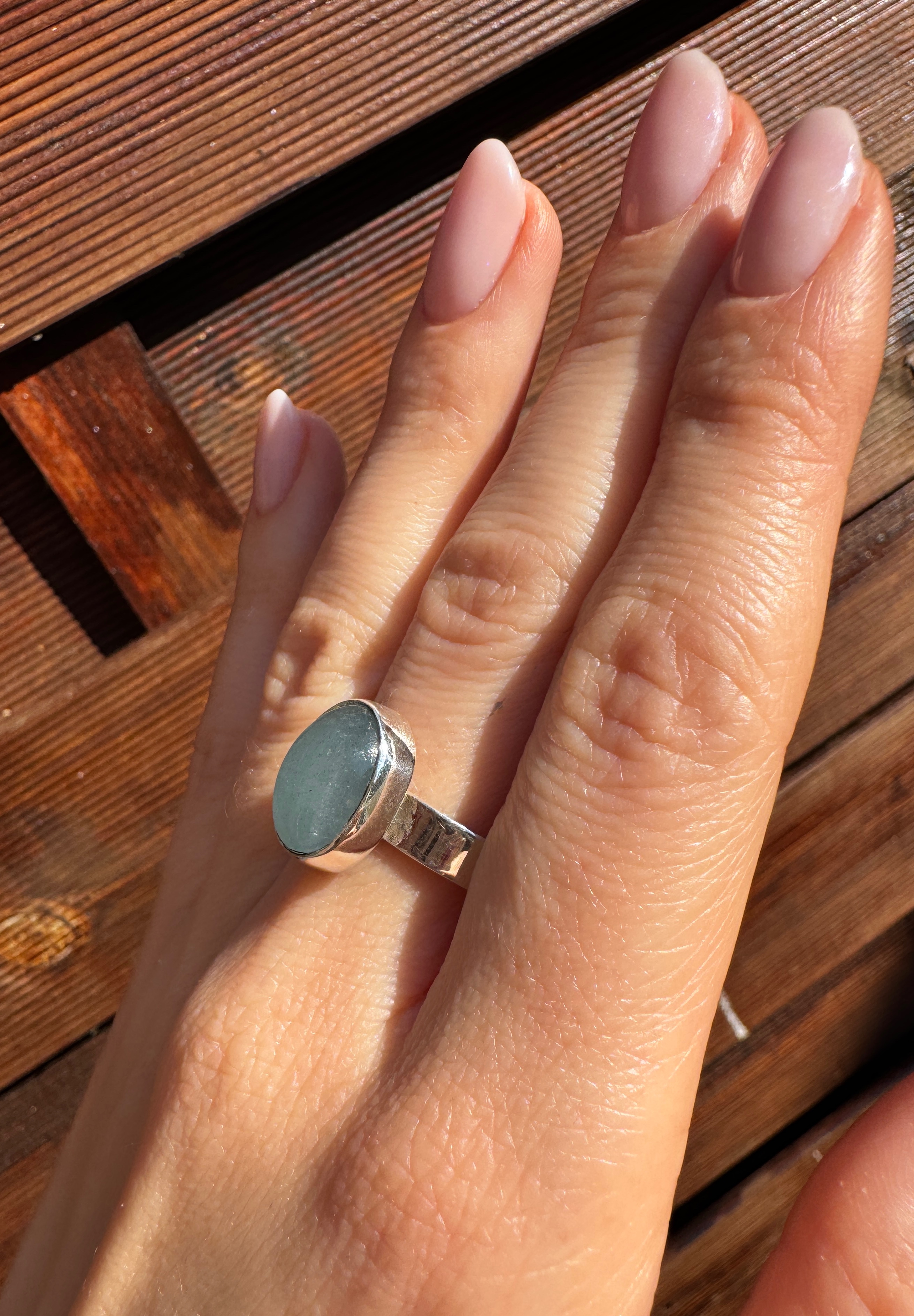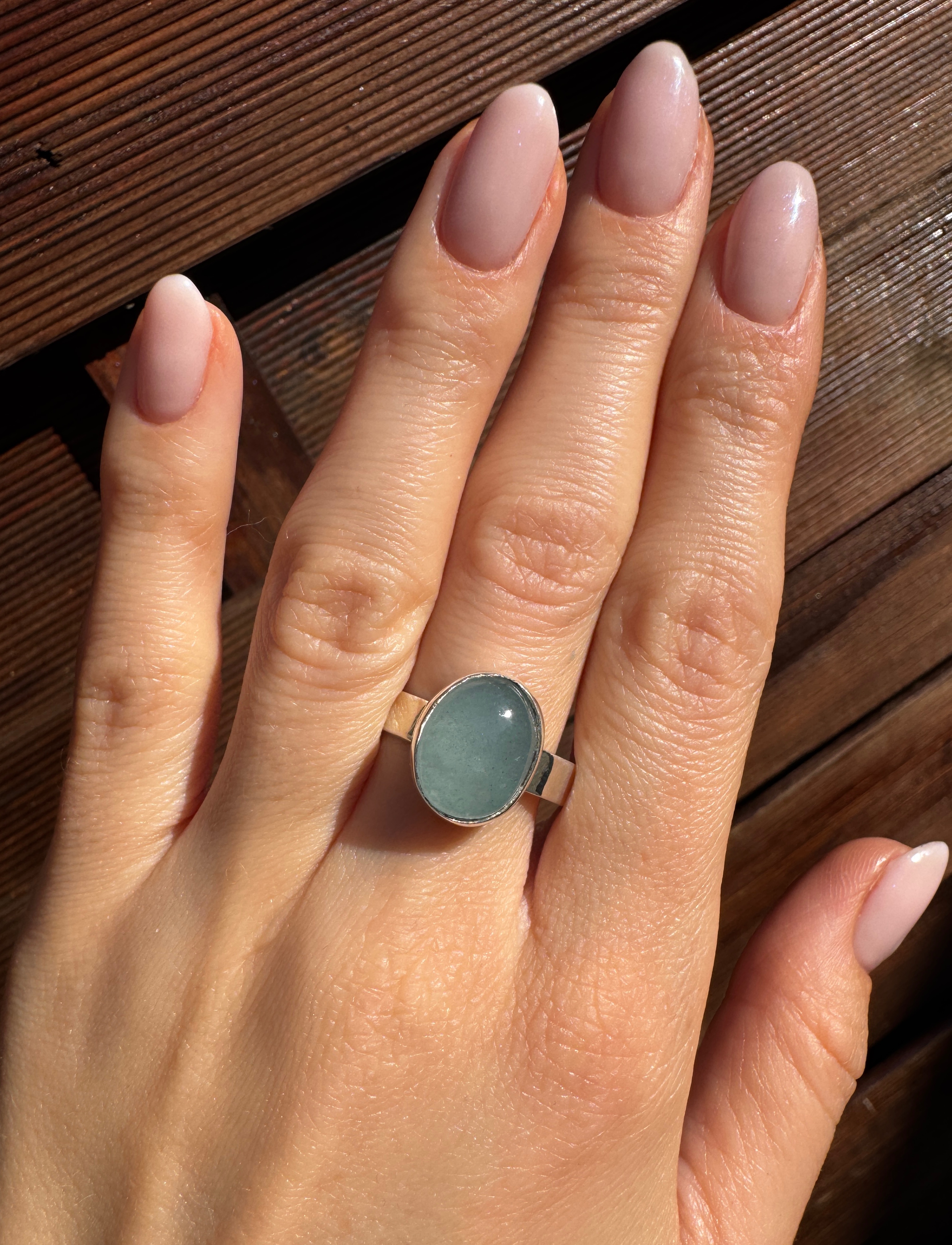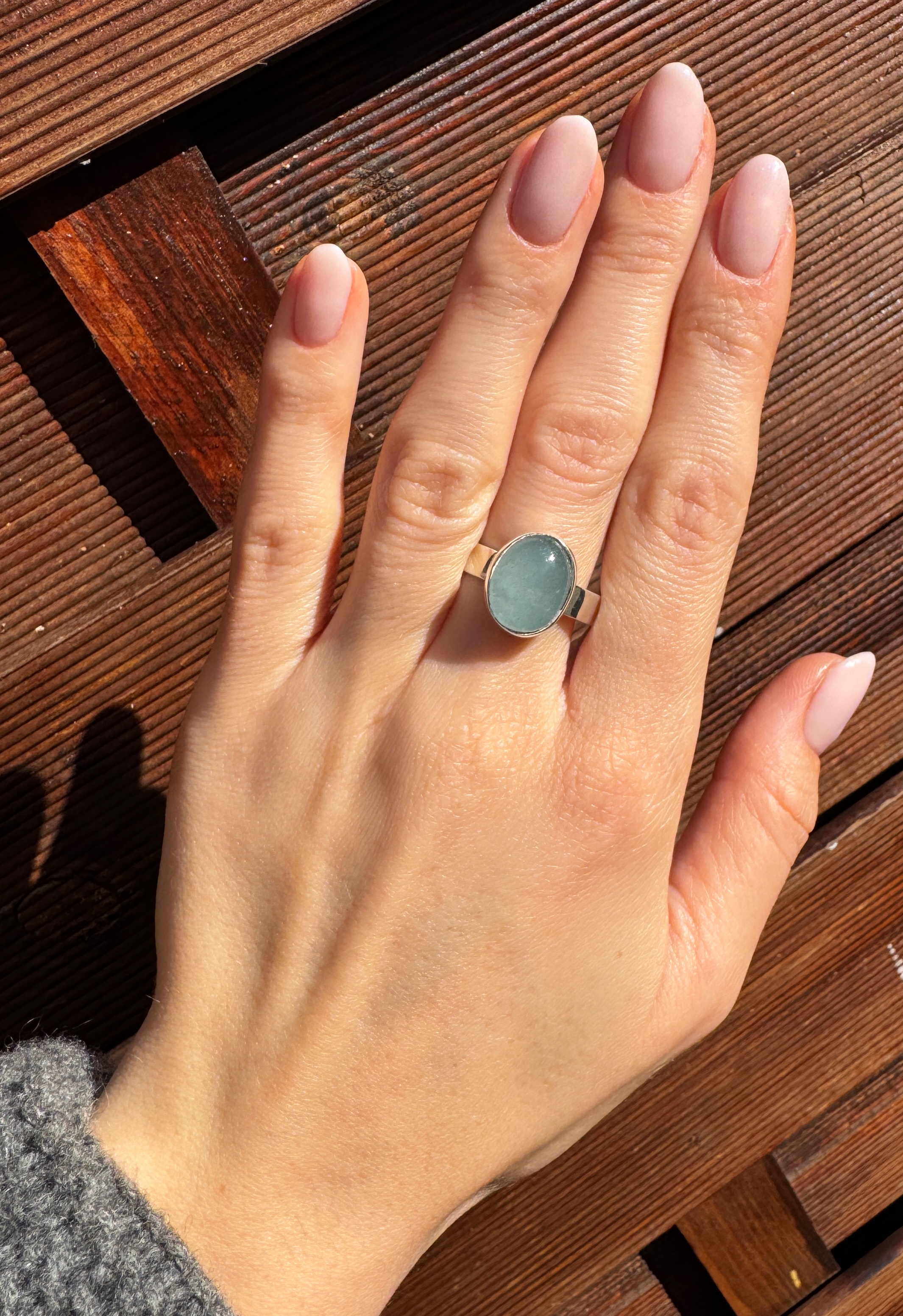 Ręcznie wykonany pierścionek z błękitnym, surowym akwamarynem i srebrem pr.925