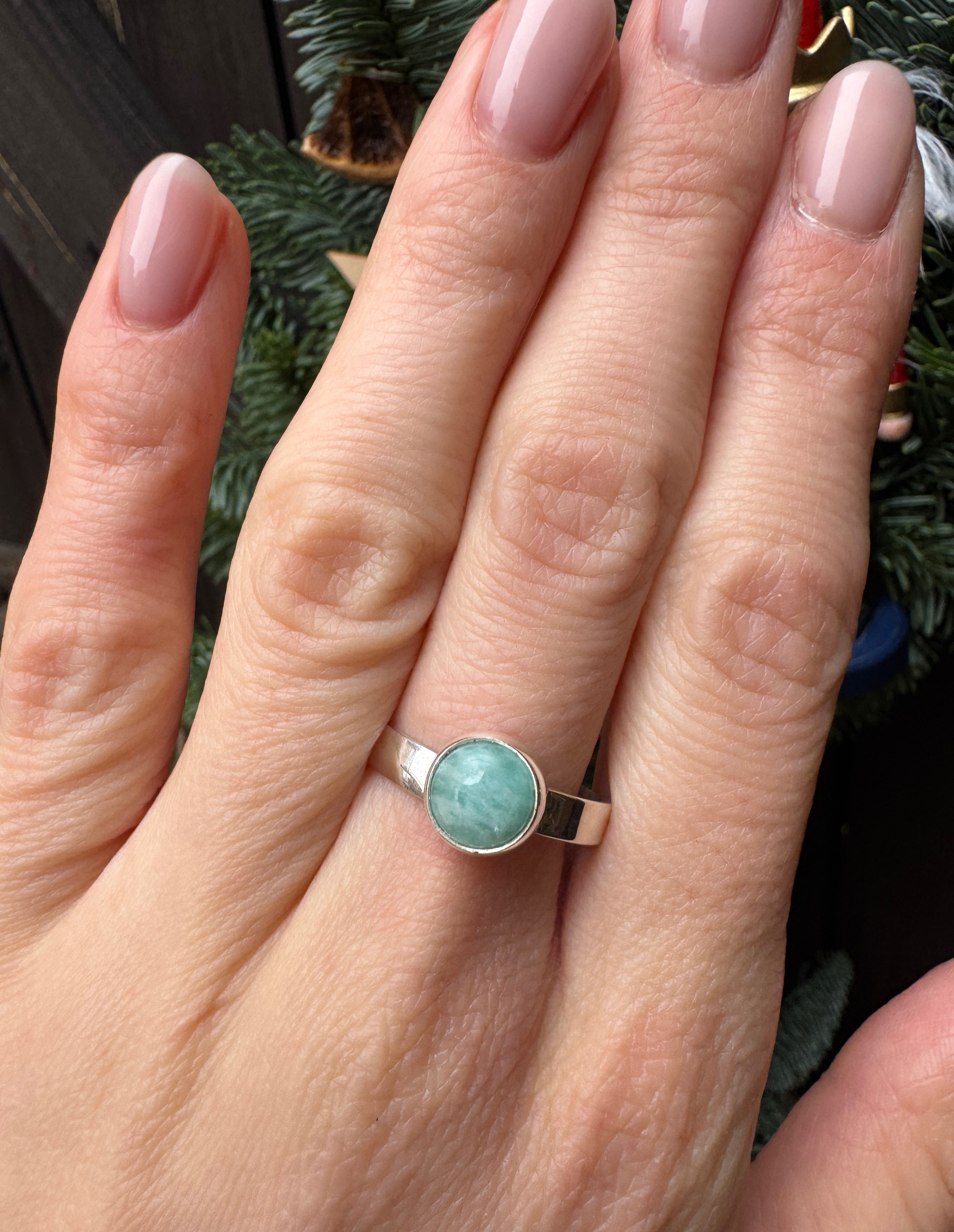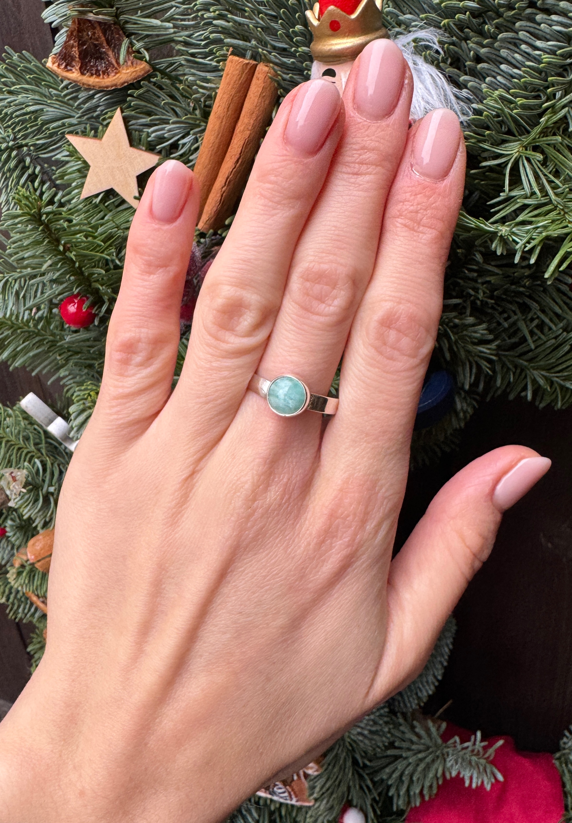 Ręcznie wykonany pierścionek z zielonym amazonitem w srebrze pr.925