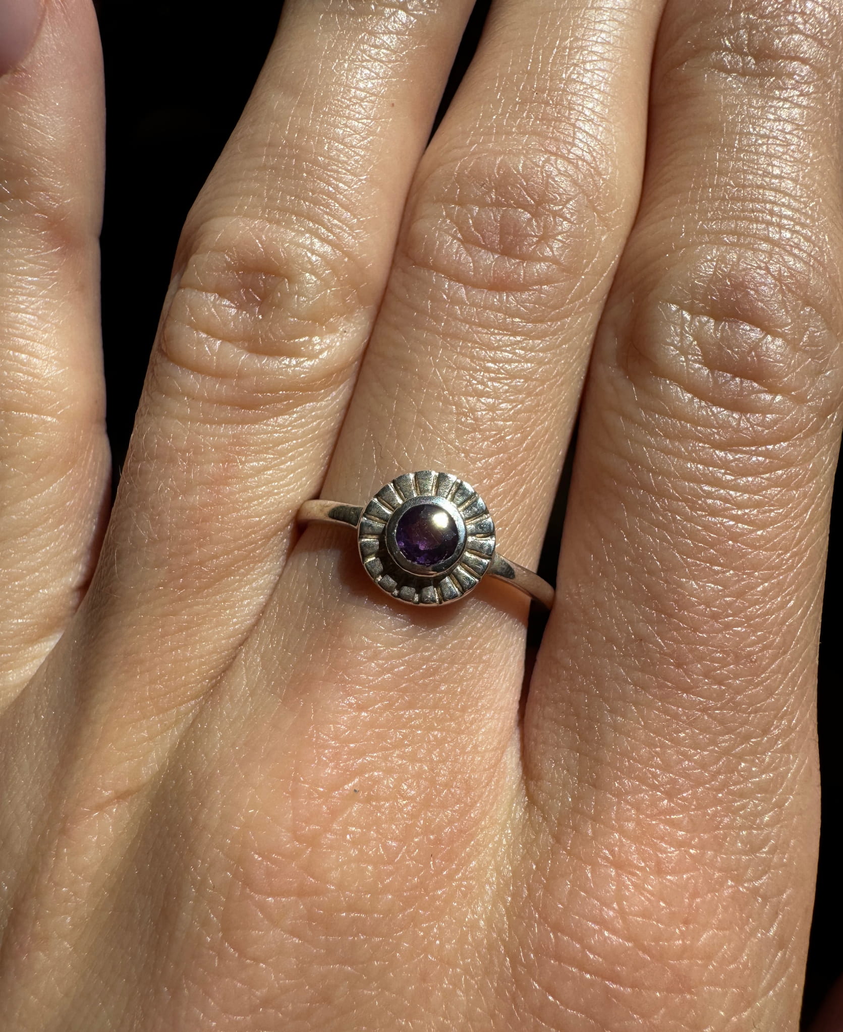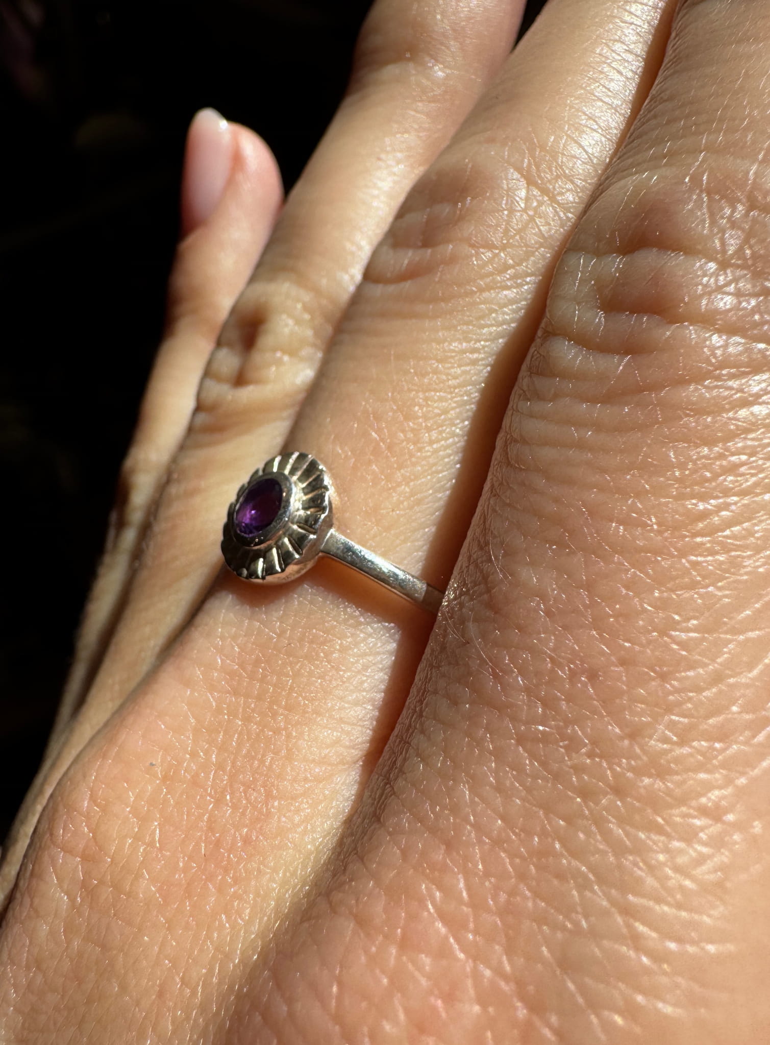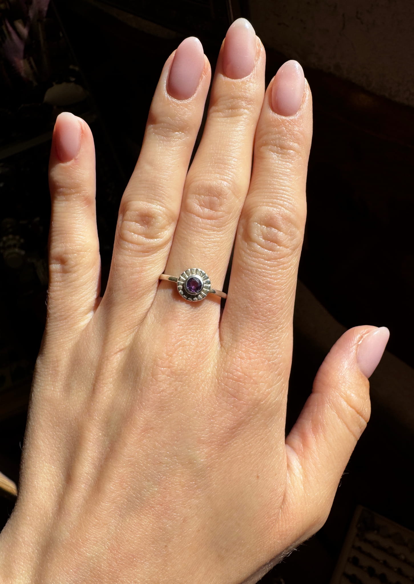 Ręcznie wykonany pierścionek z ametystu i srebra pr.925
