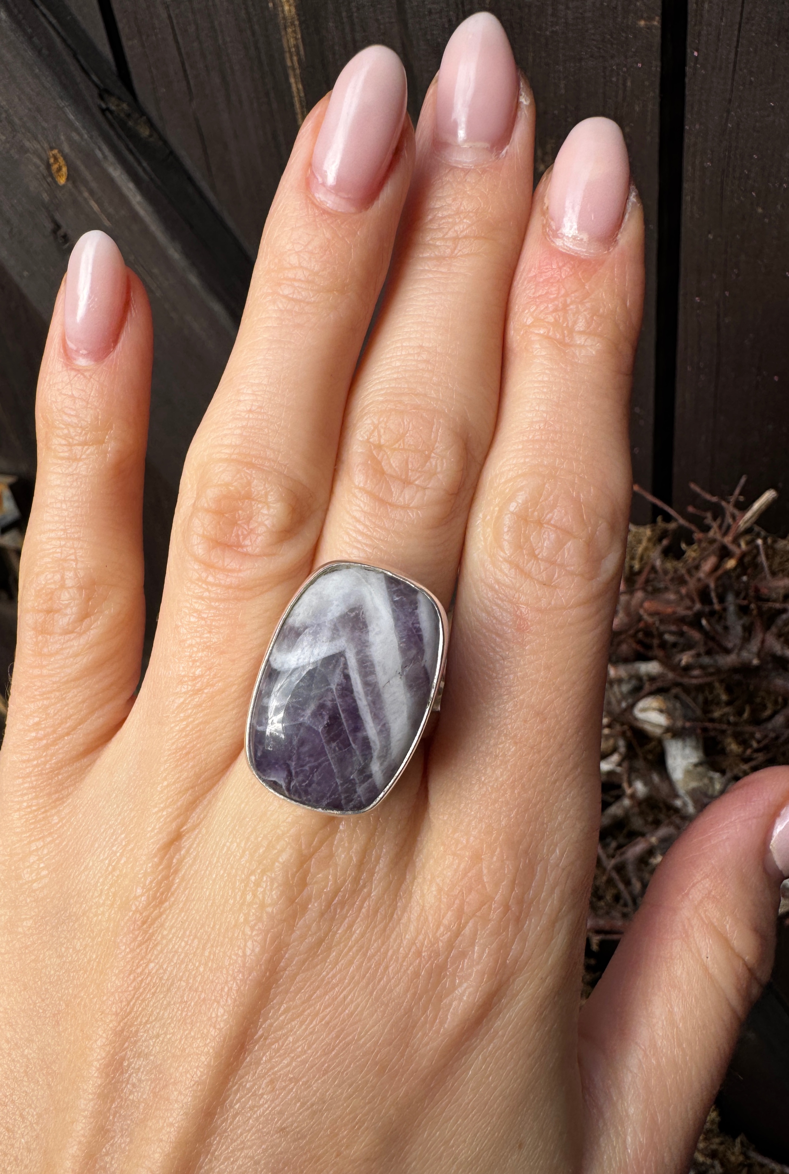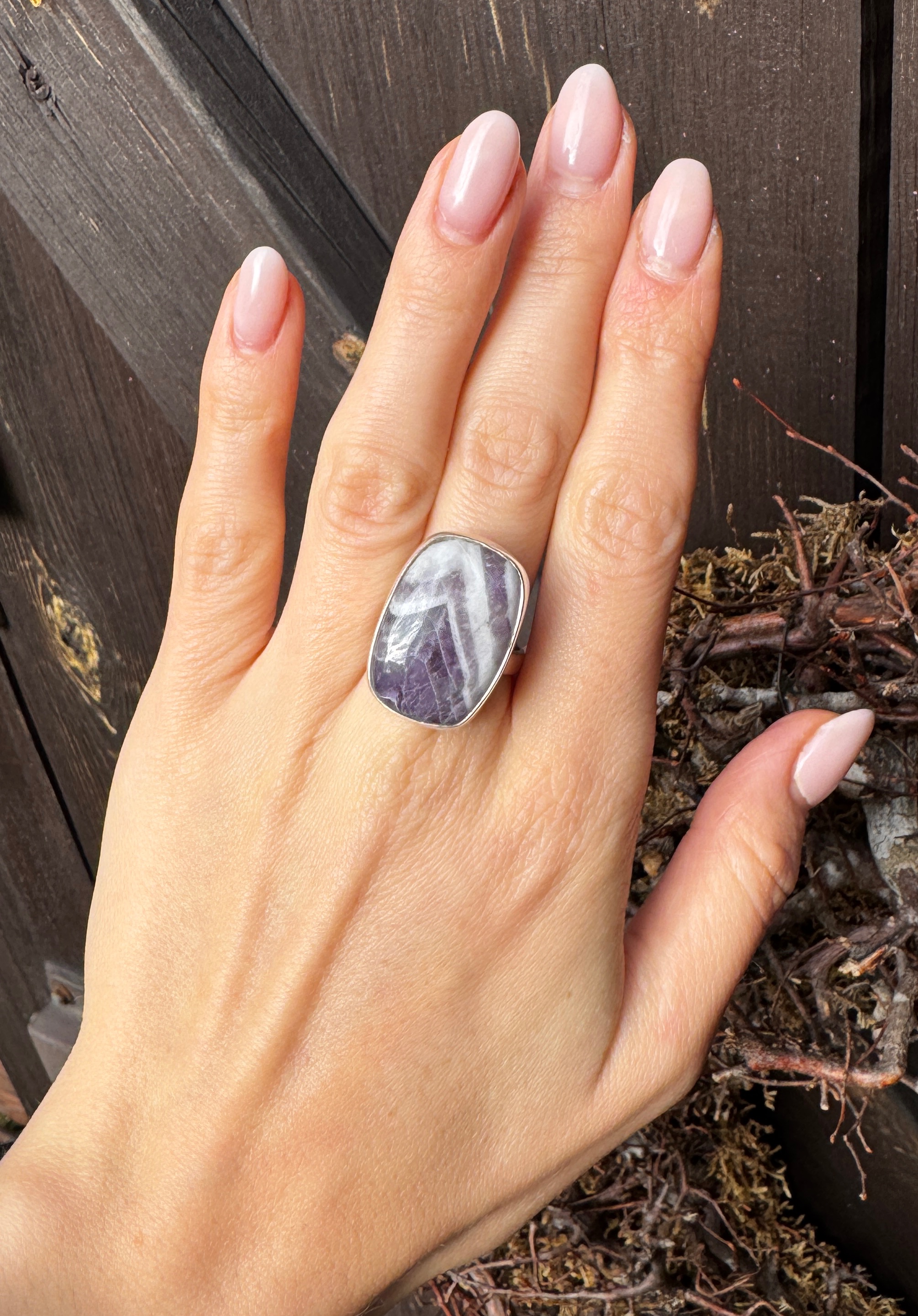 Ręcznie wykonany pierścionek z ametystu i srebra pr.925