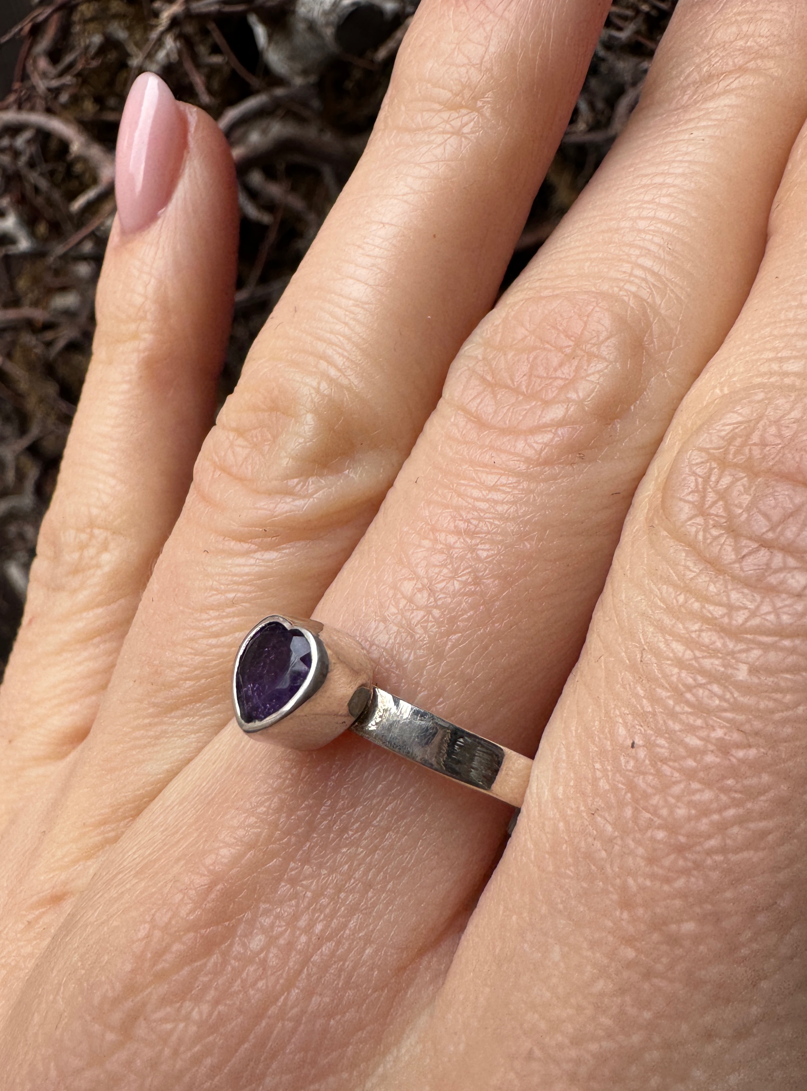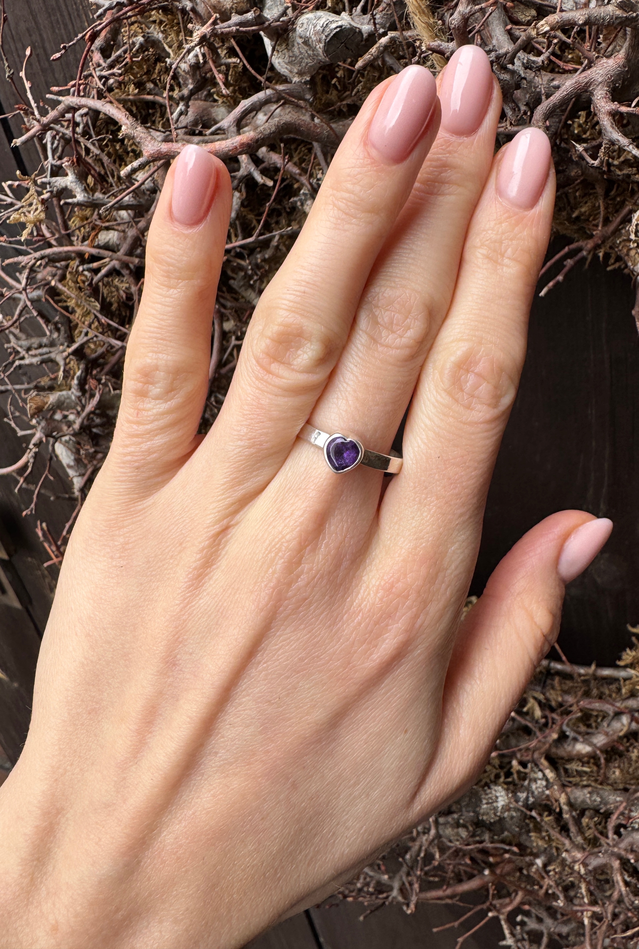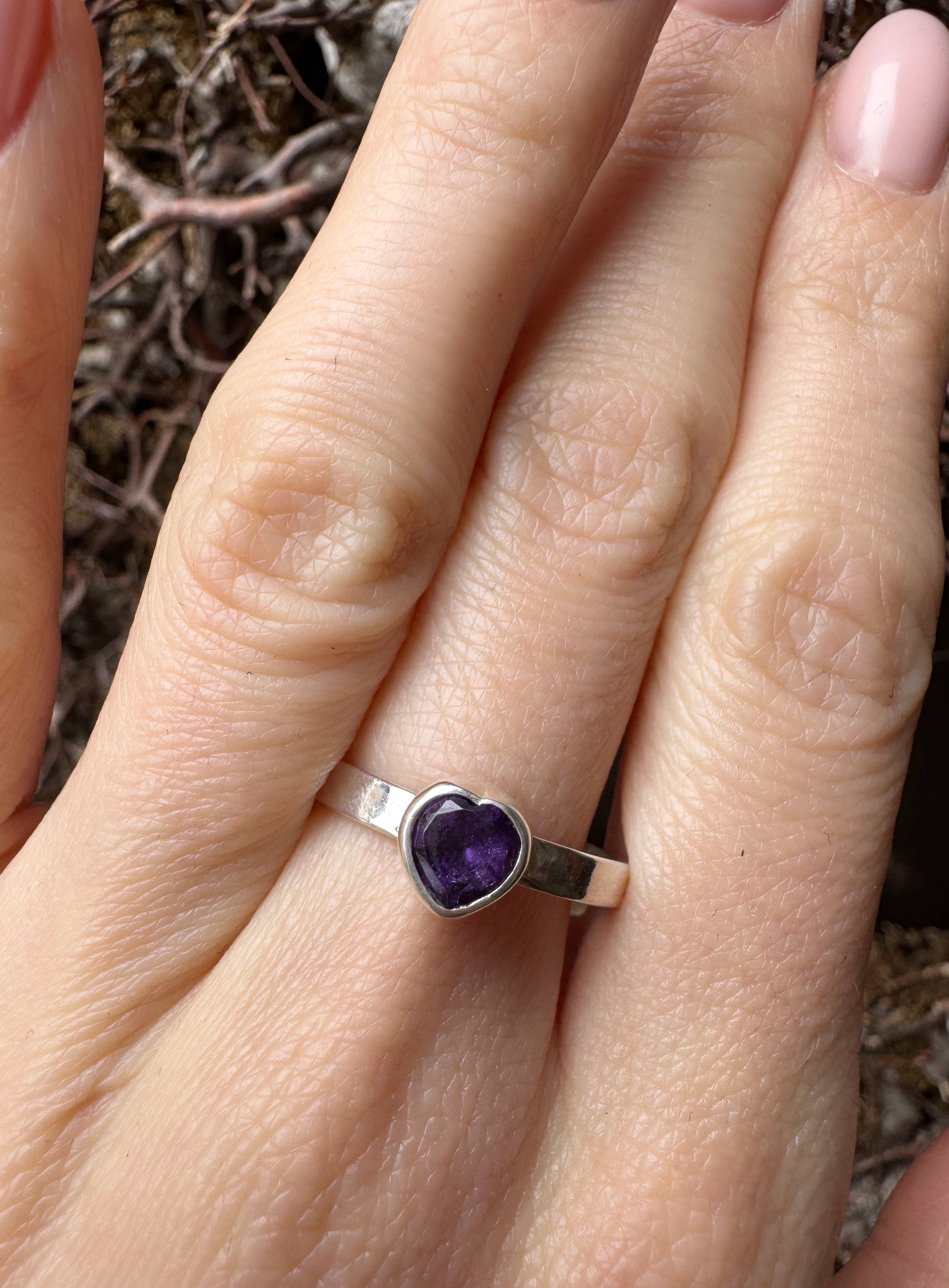 Pierścionek ametyst fasetowane serce