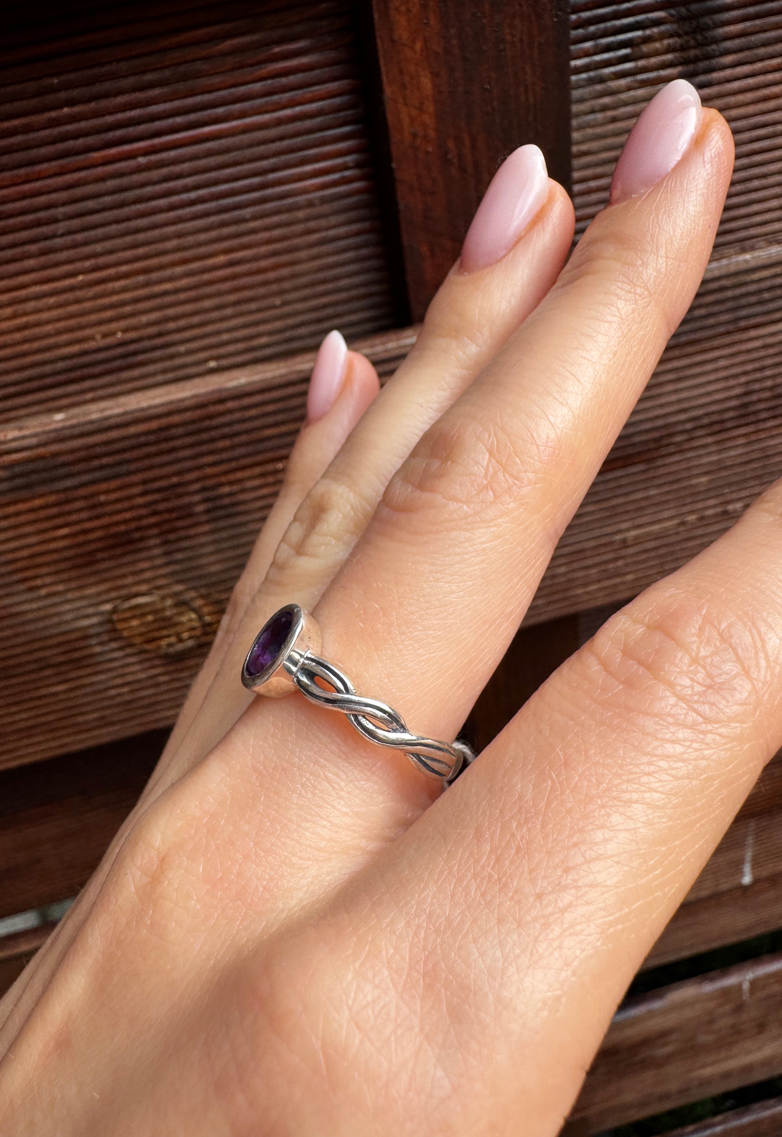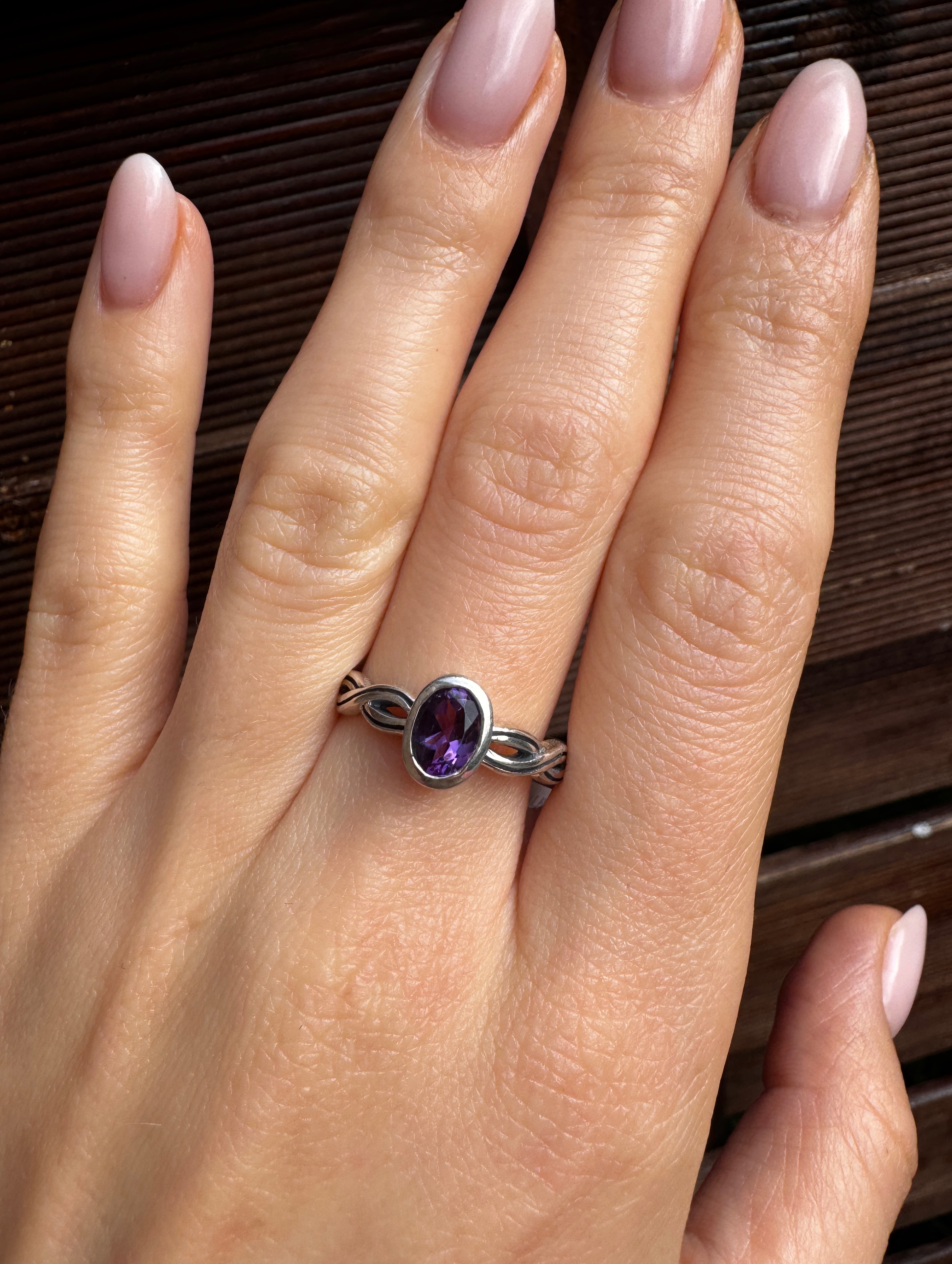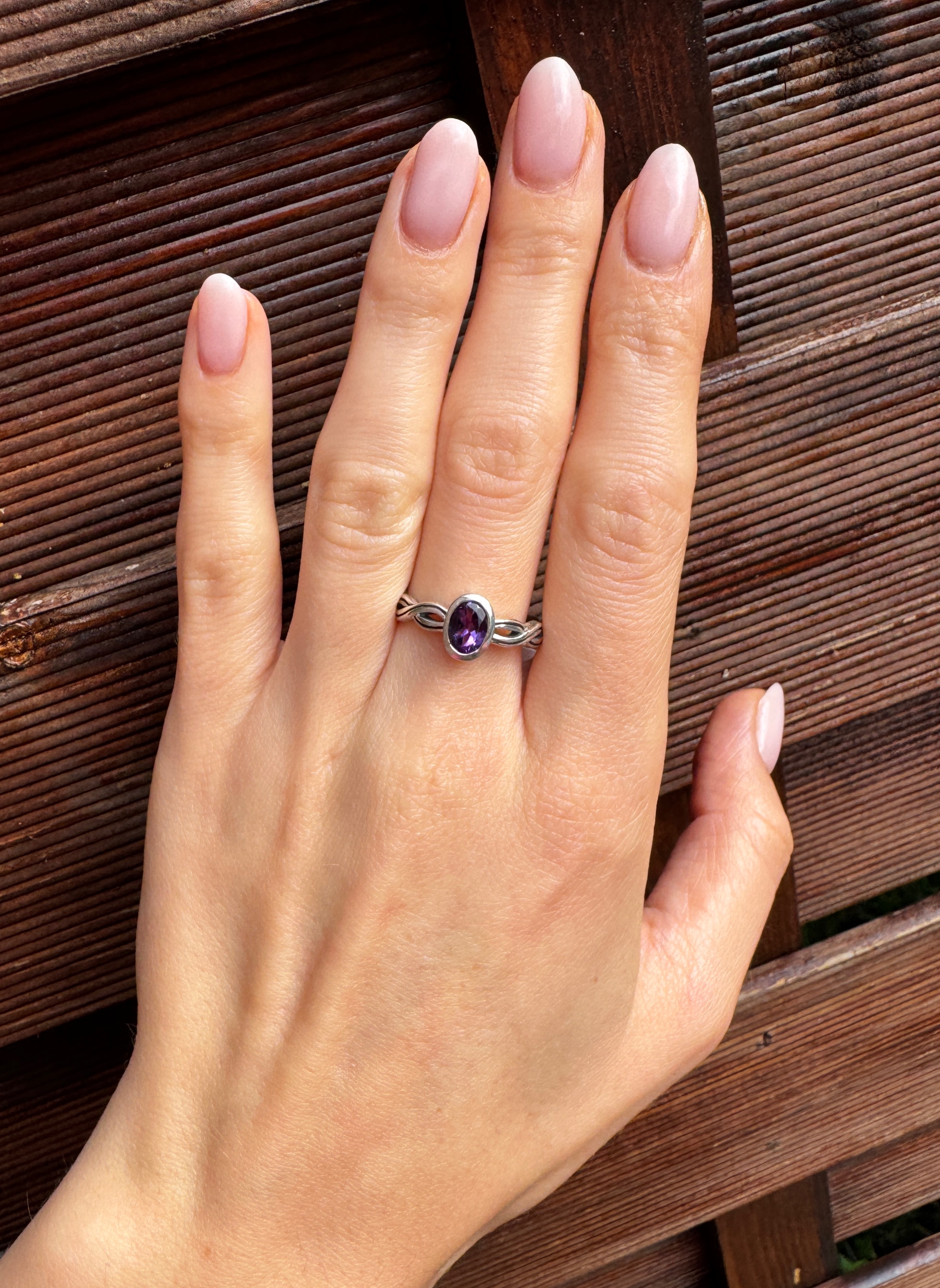 Ręcznie wykonany pierścionek z ametystu i srebra pr.925
