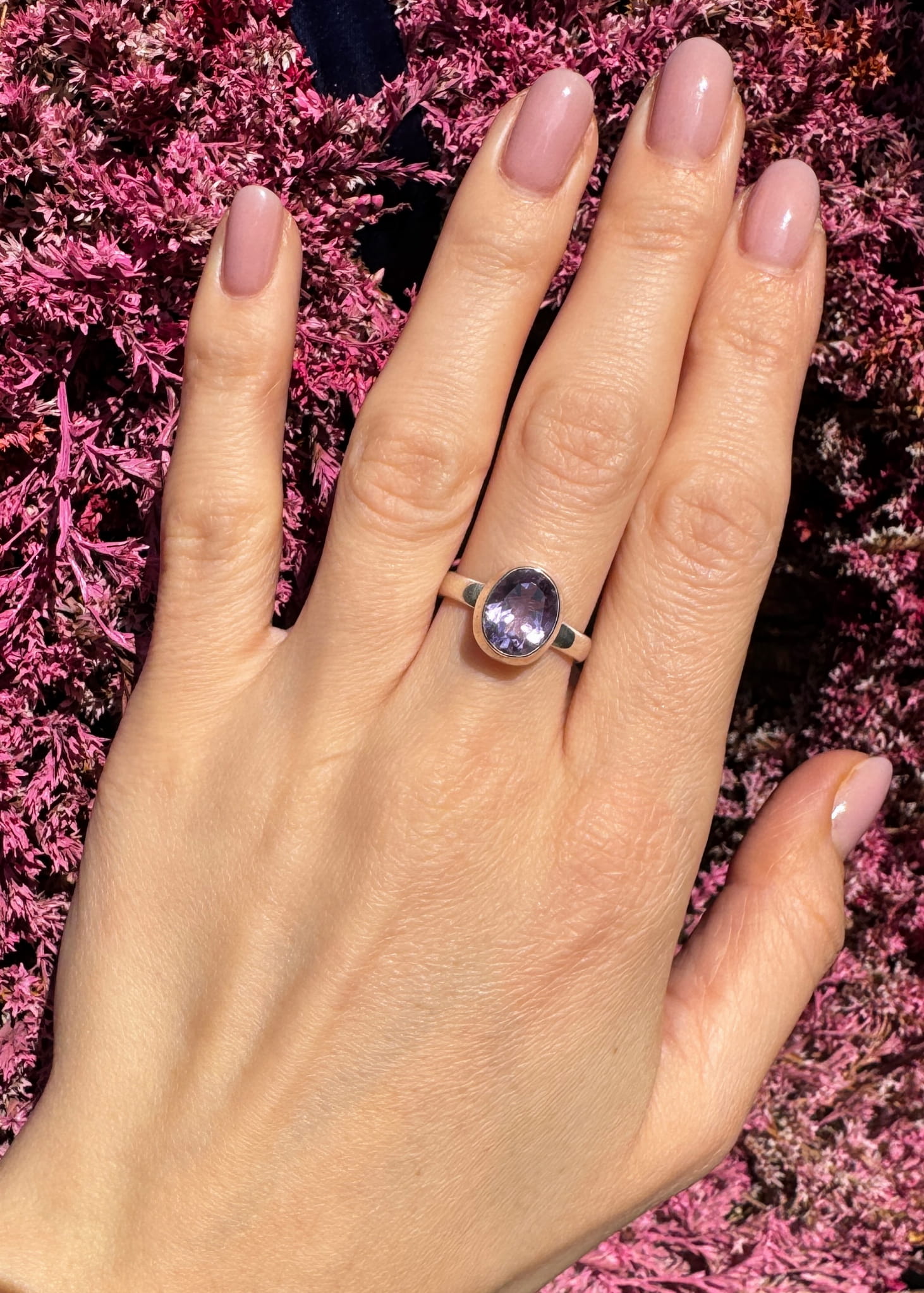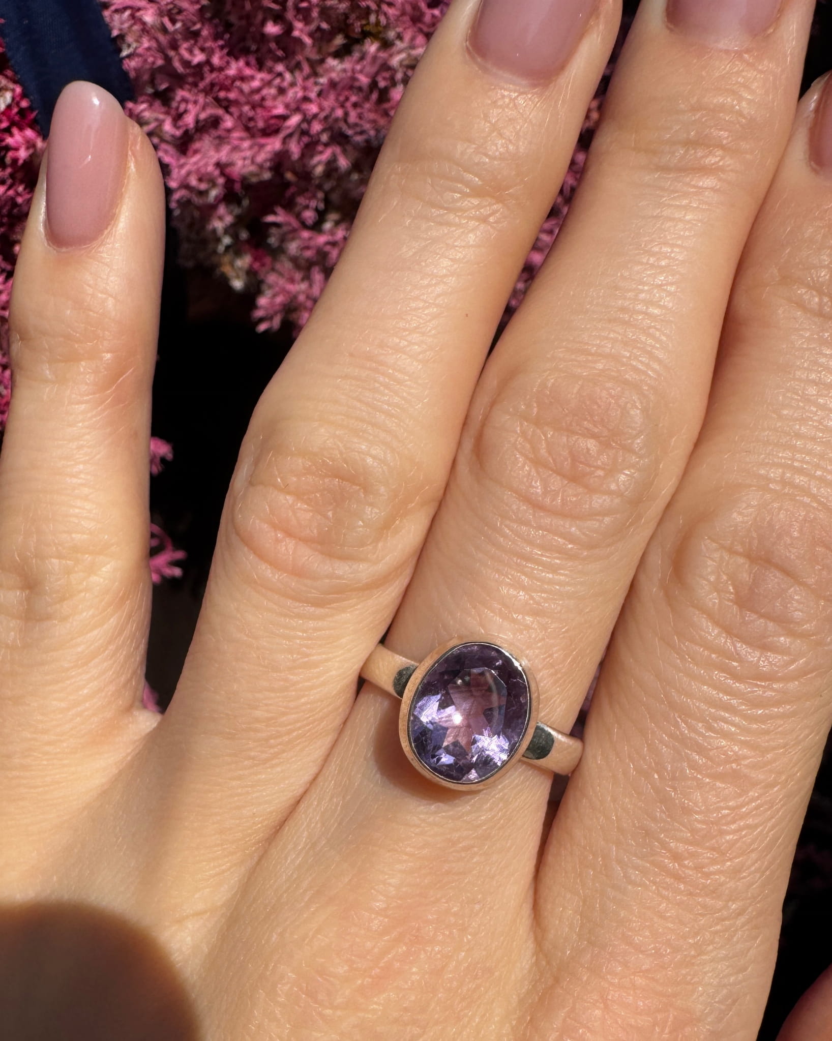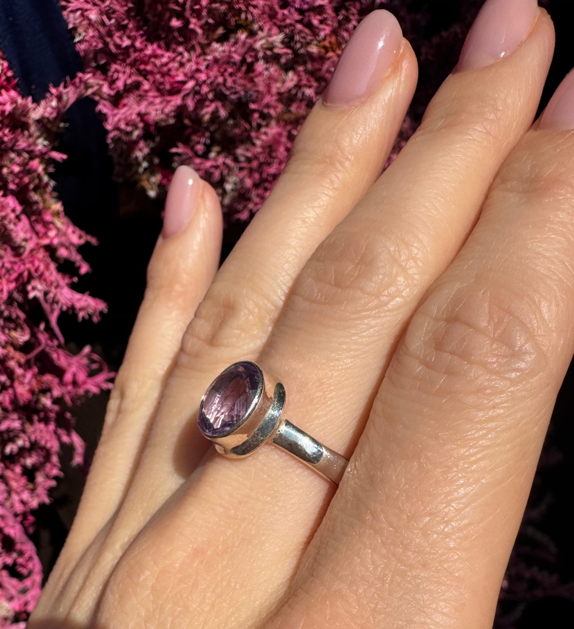 Ręcznie wykonany pierścionek z ametystu i srebra pr.925