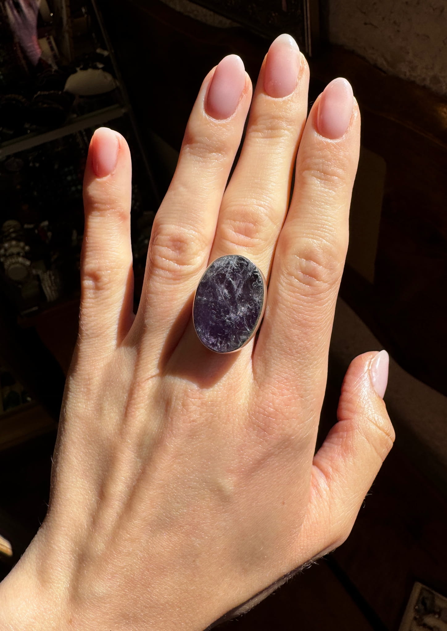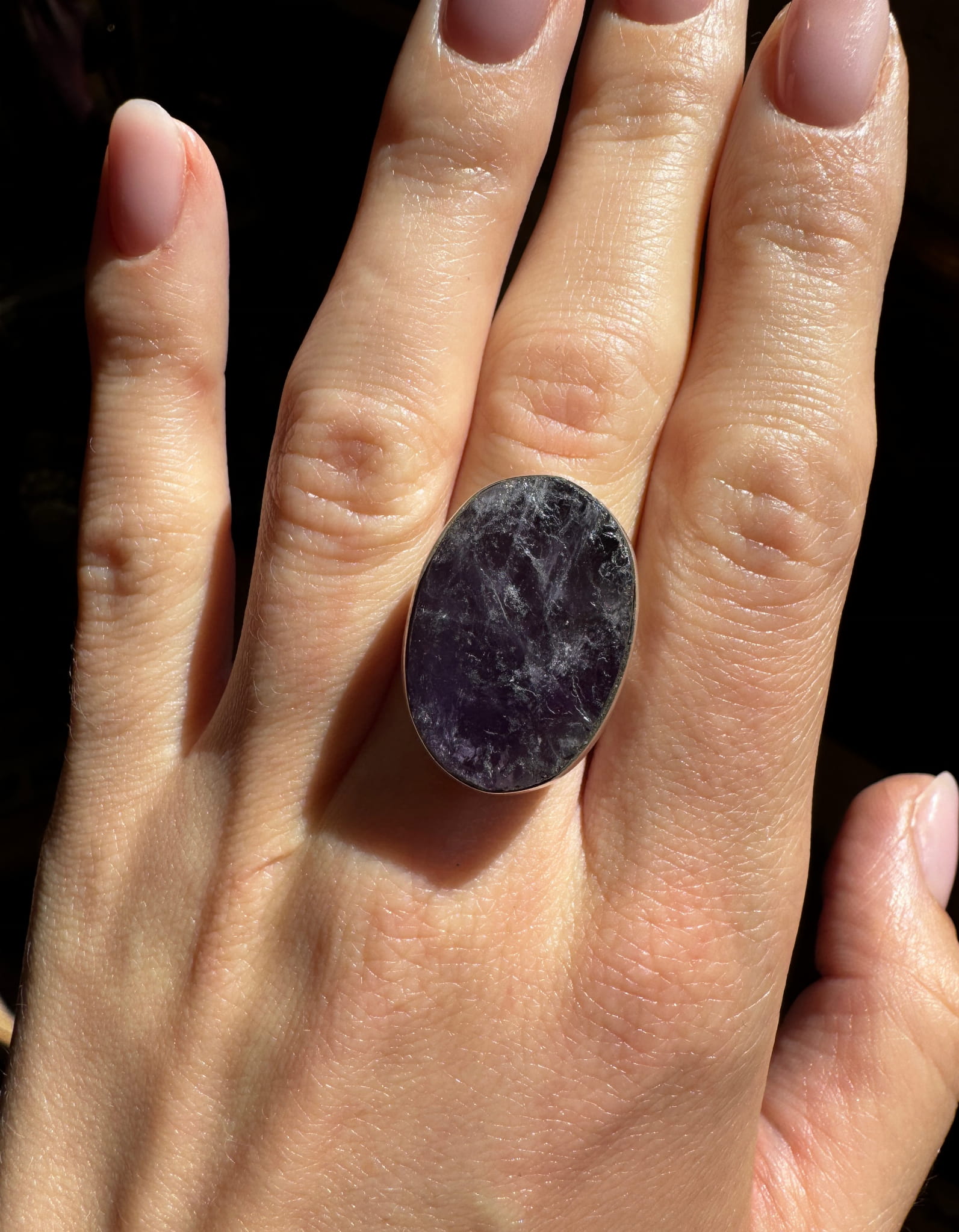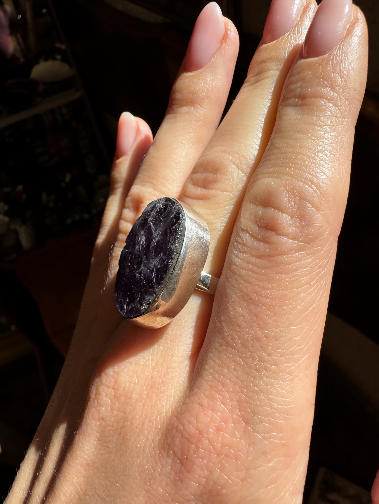 Pierścionek ametyst owal surowy