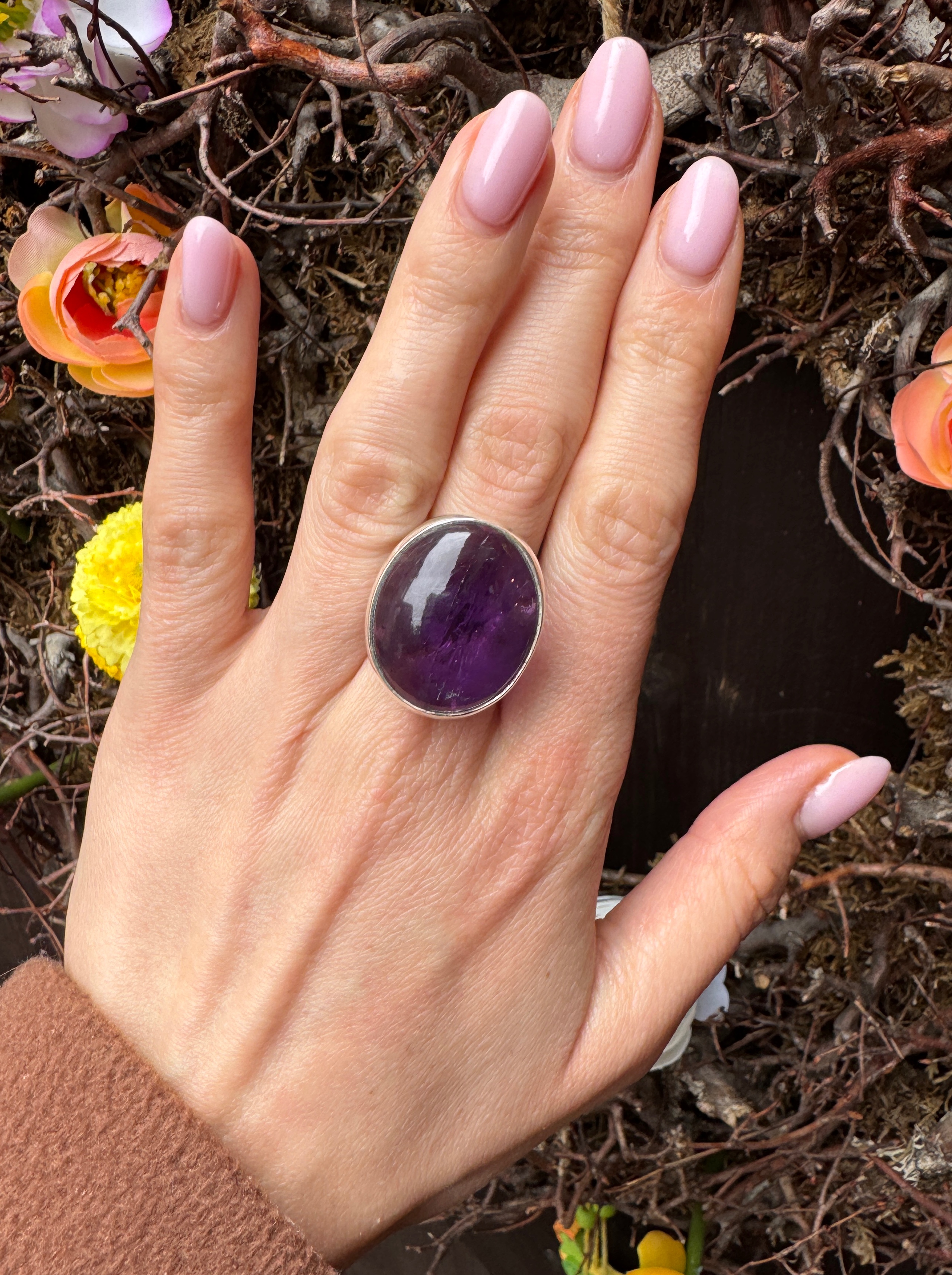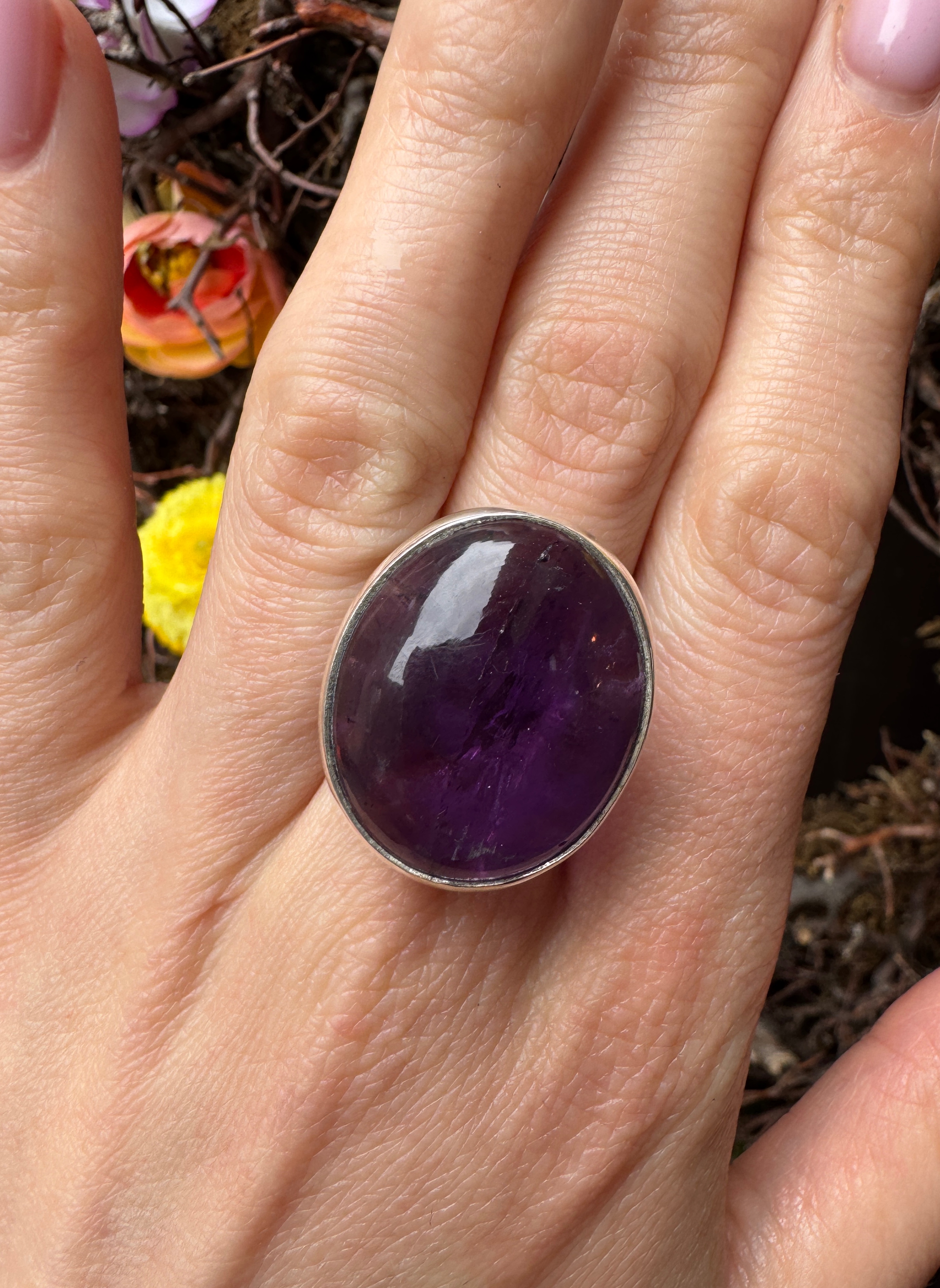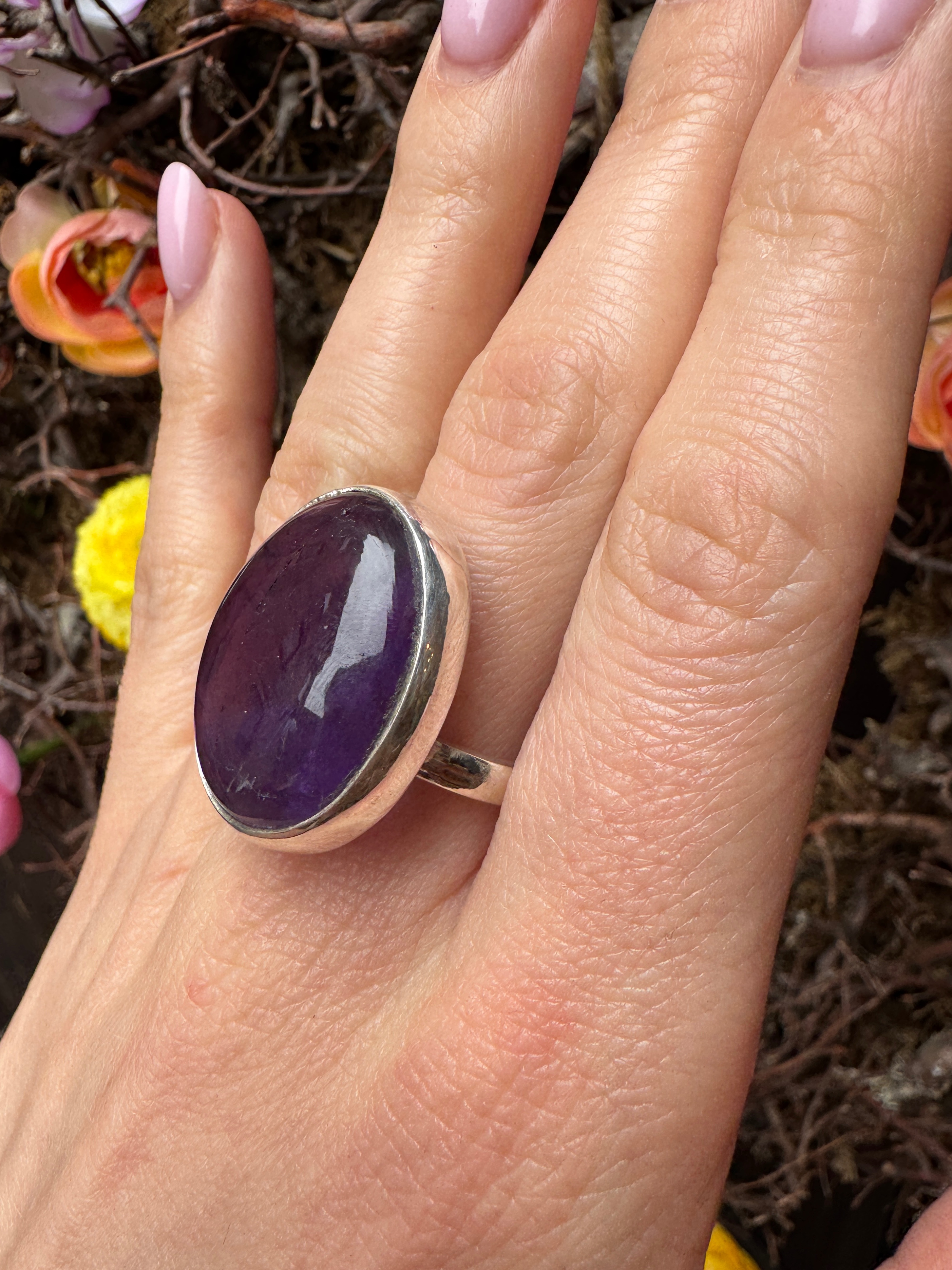 Ręcznie wykonany pierścionek z ametystu i srebra pr.925