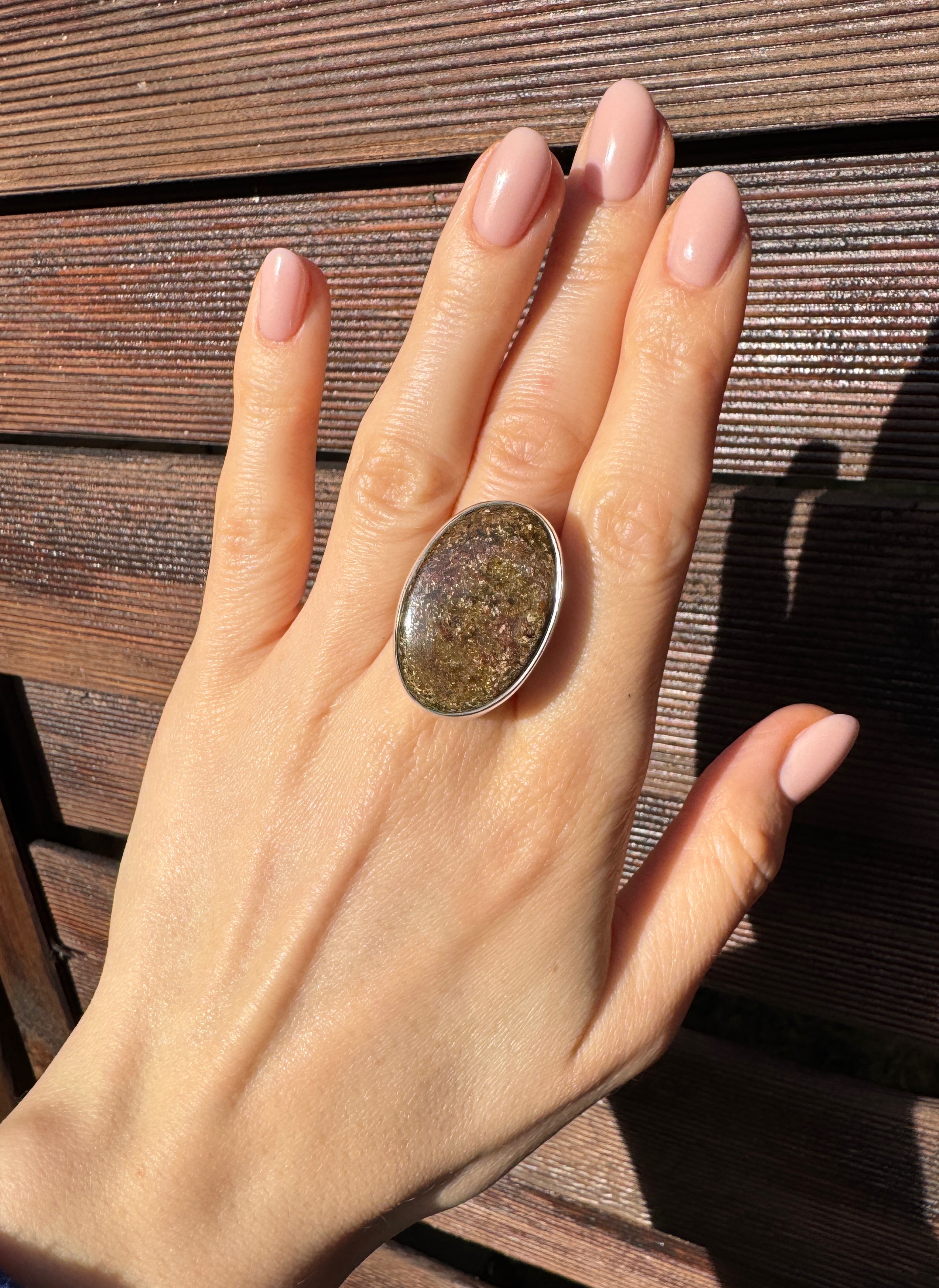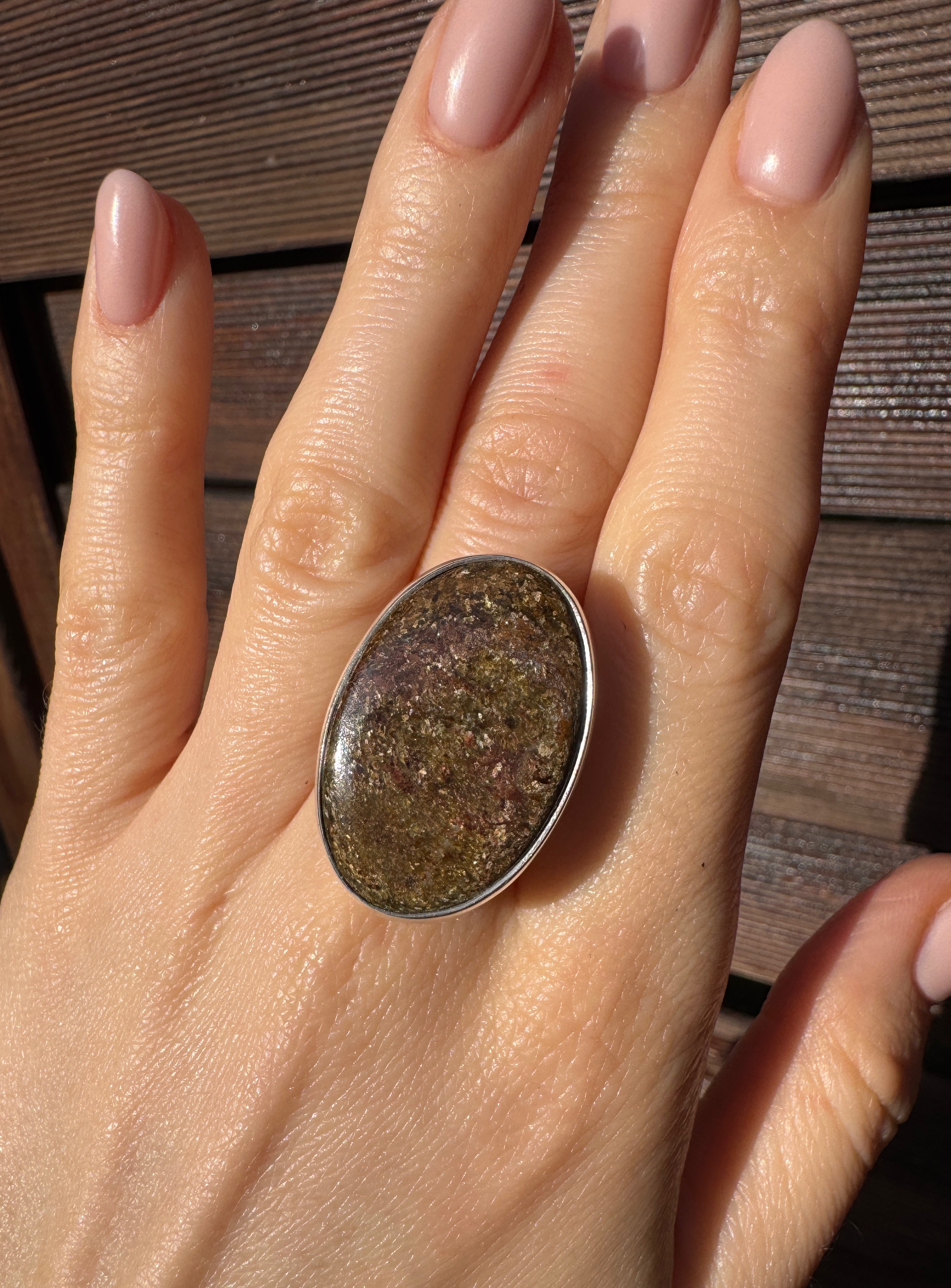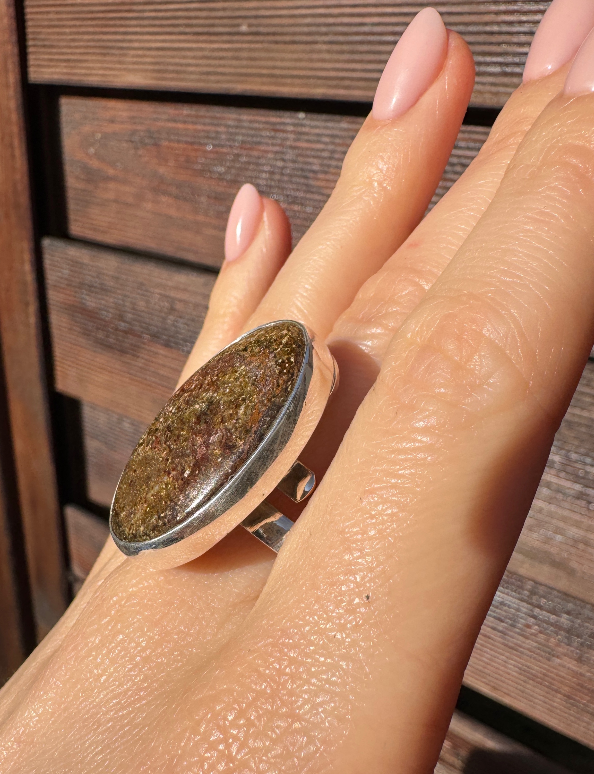 Ręcznie wykonany pierścionek z owalnego bronzytu i srebra pr.925
