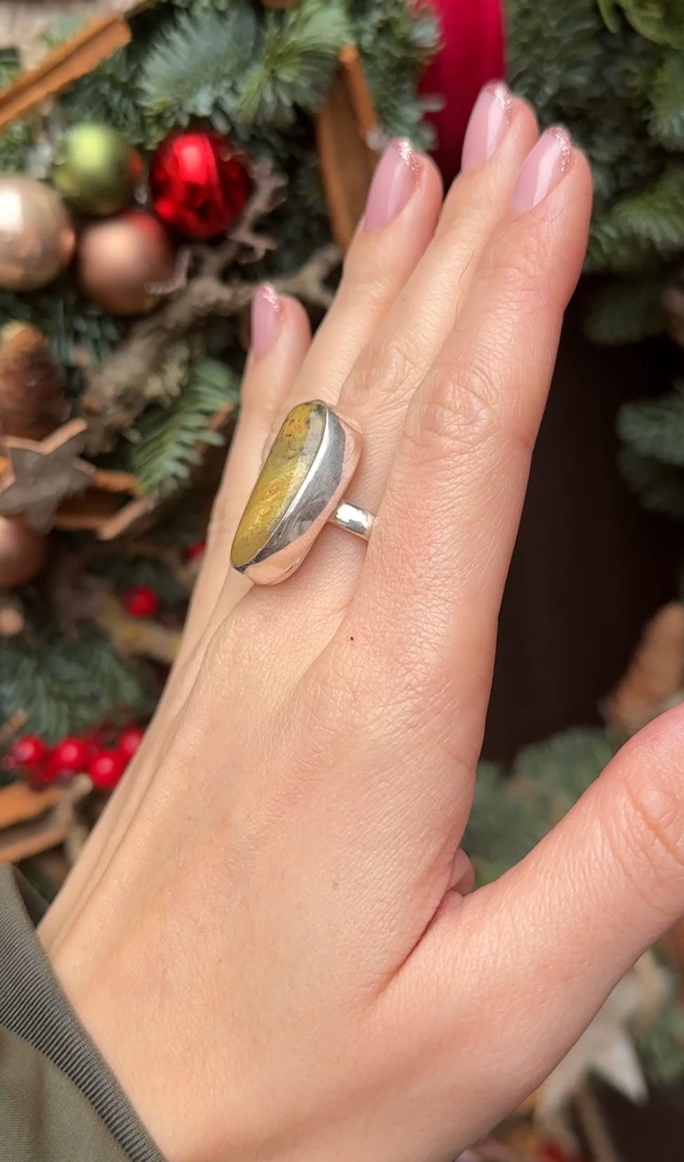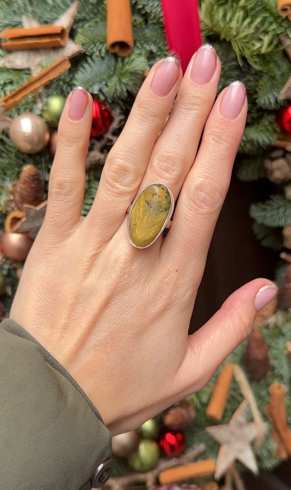 Piękny, niepowtarzalny, ręcznie wykonany pierścionek z naturalnego bursztynu i srebra pr.925