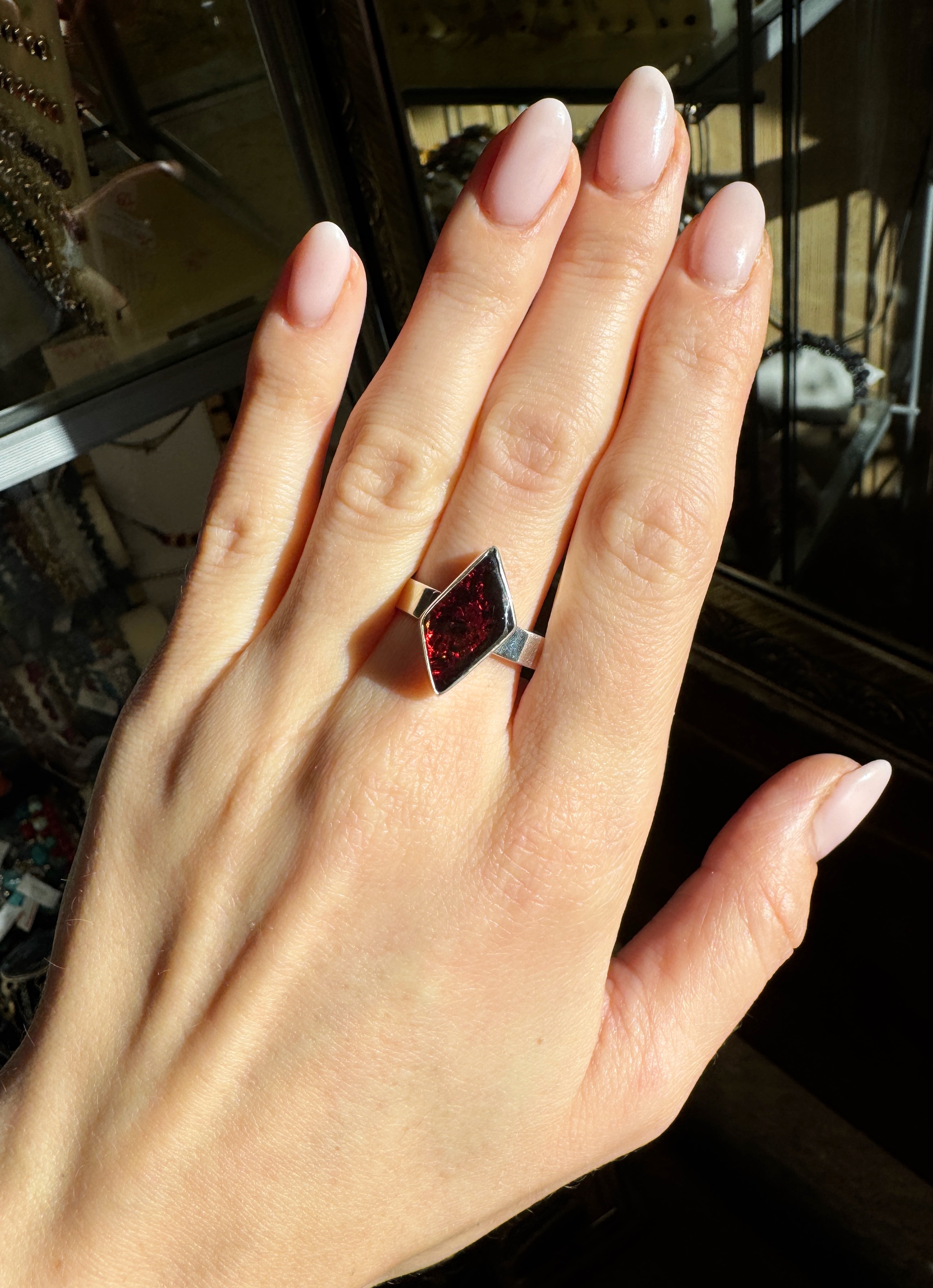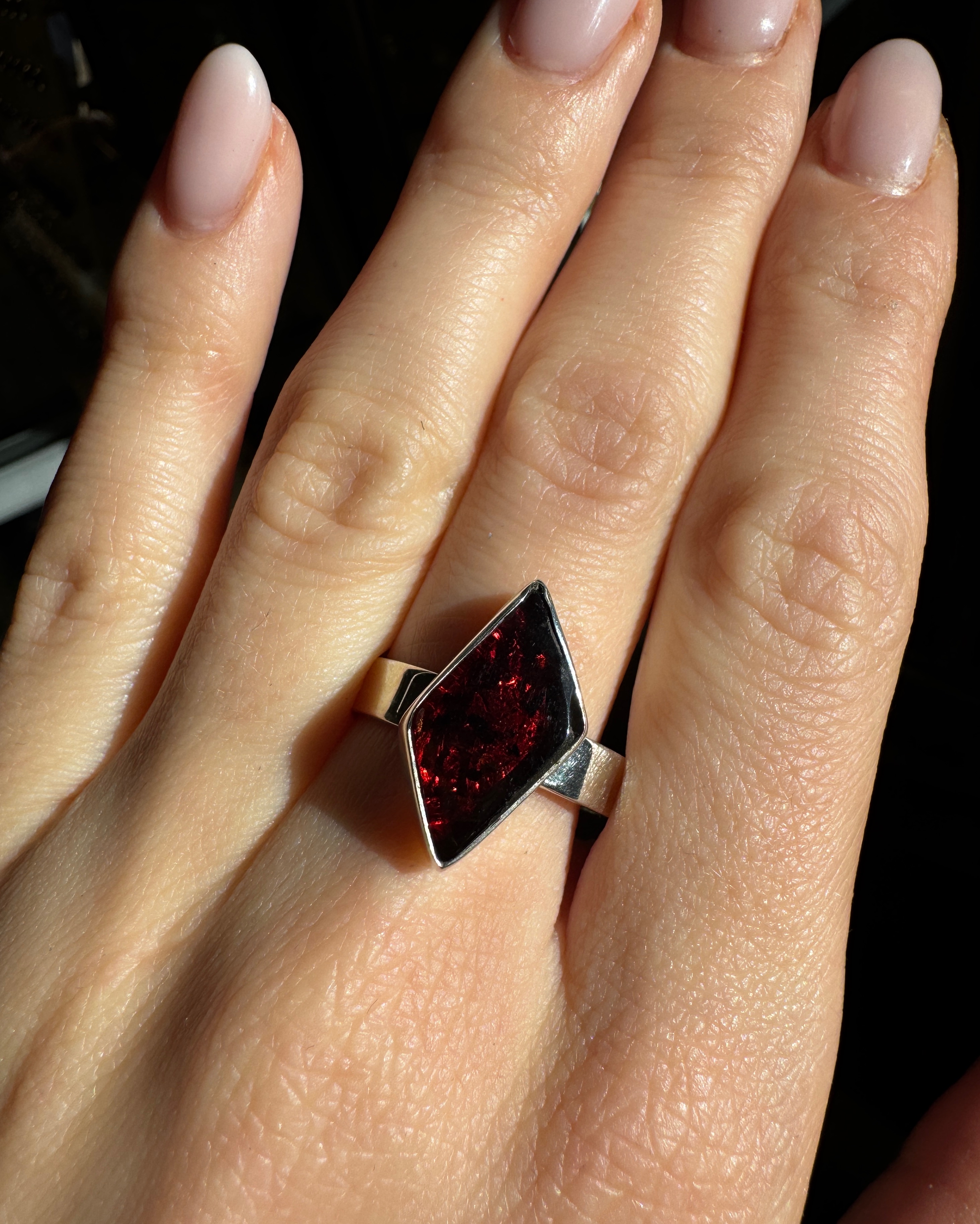 Piękny,  niepowtarzalny, ręcznie wykonany pierścionek z naturalnego bursztynu i srebra pr.925