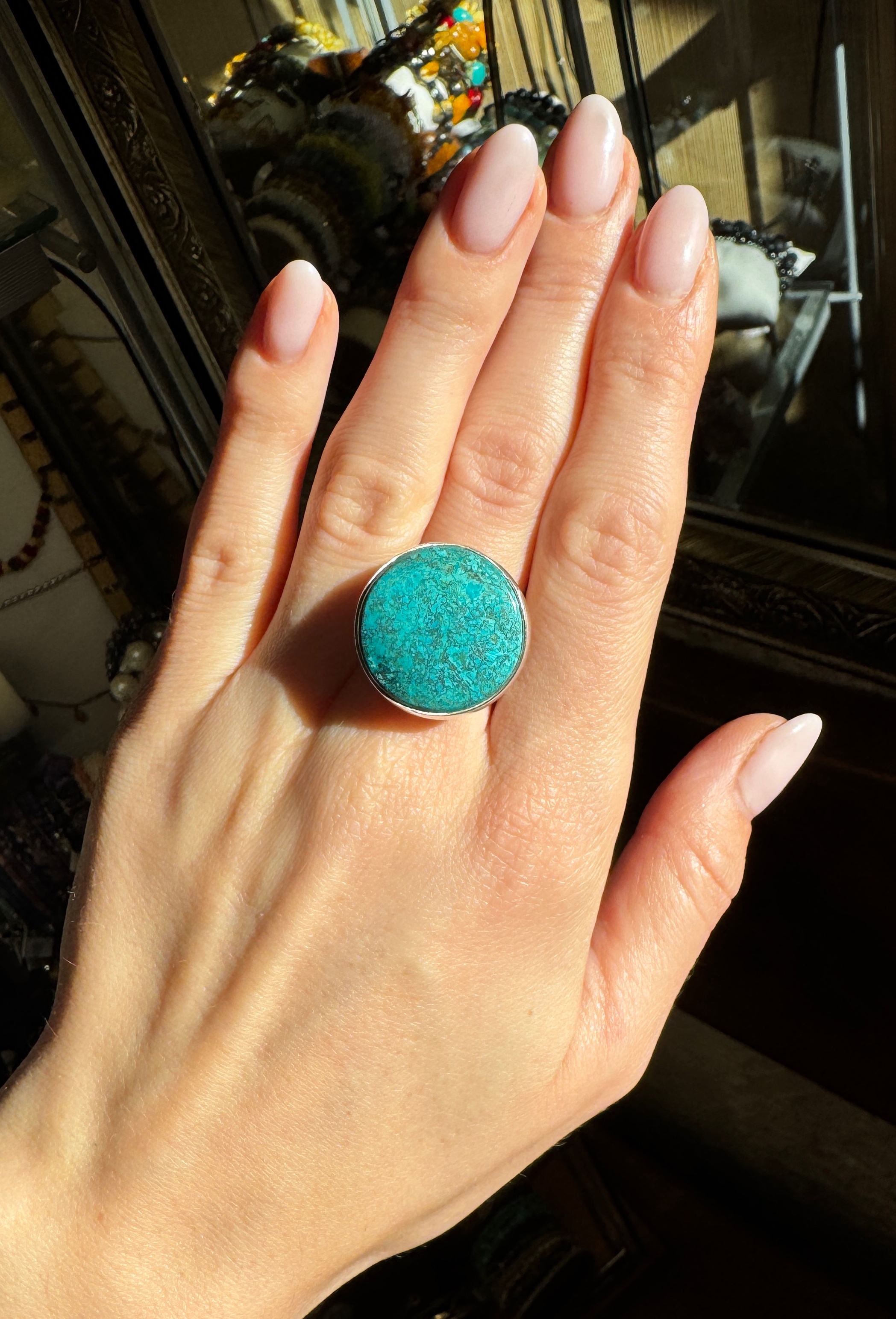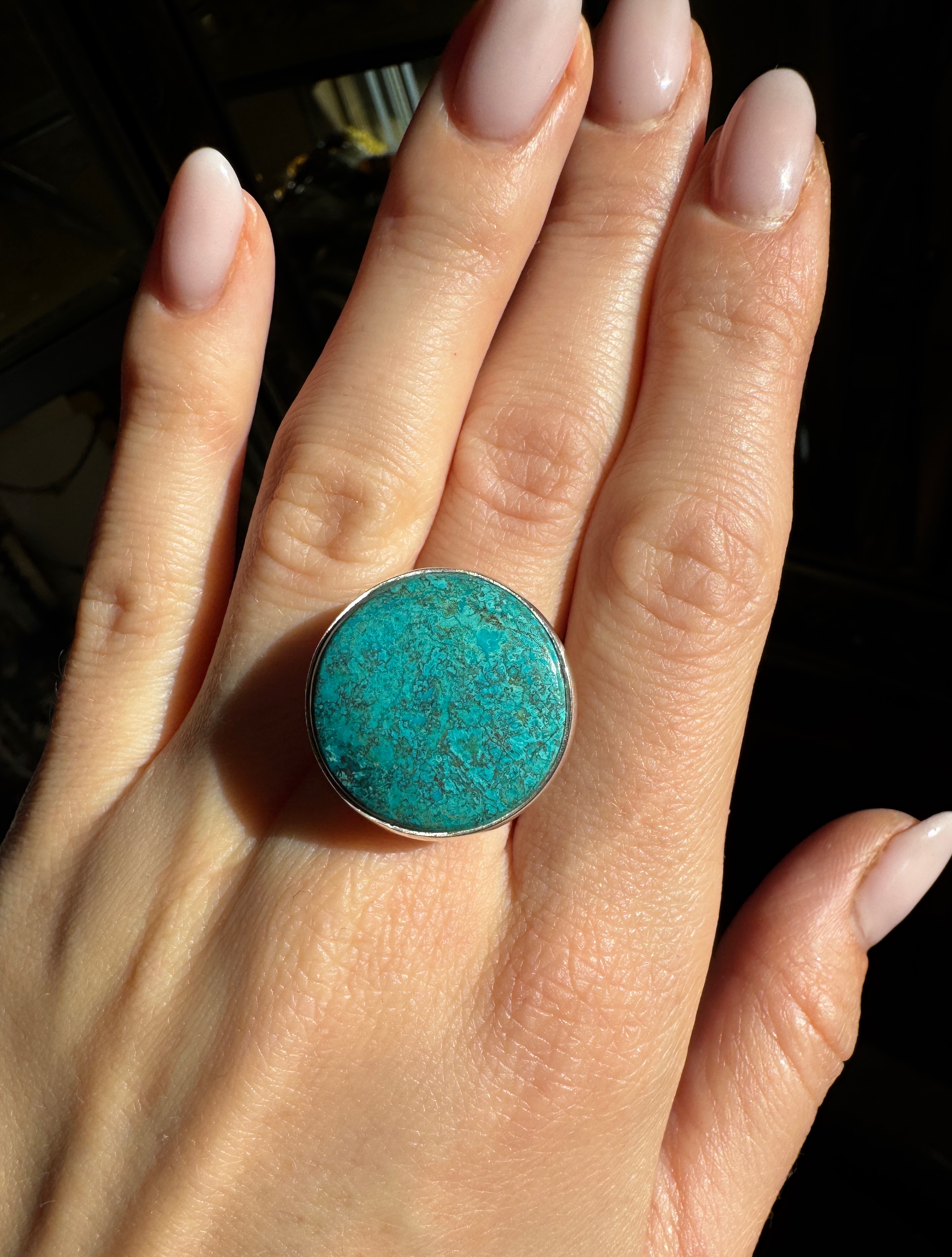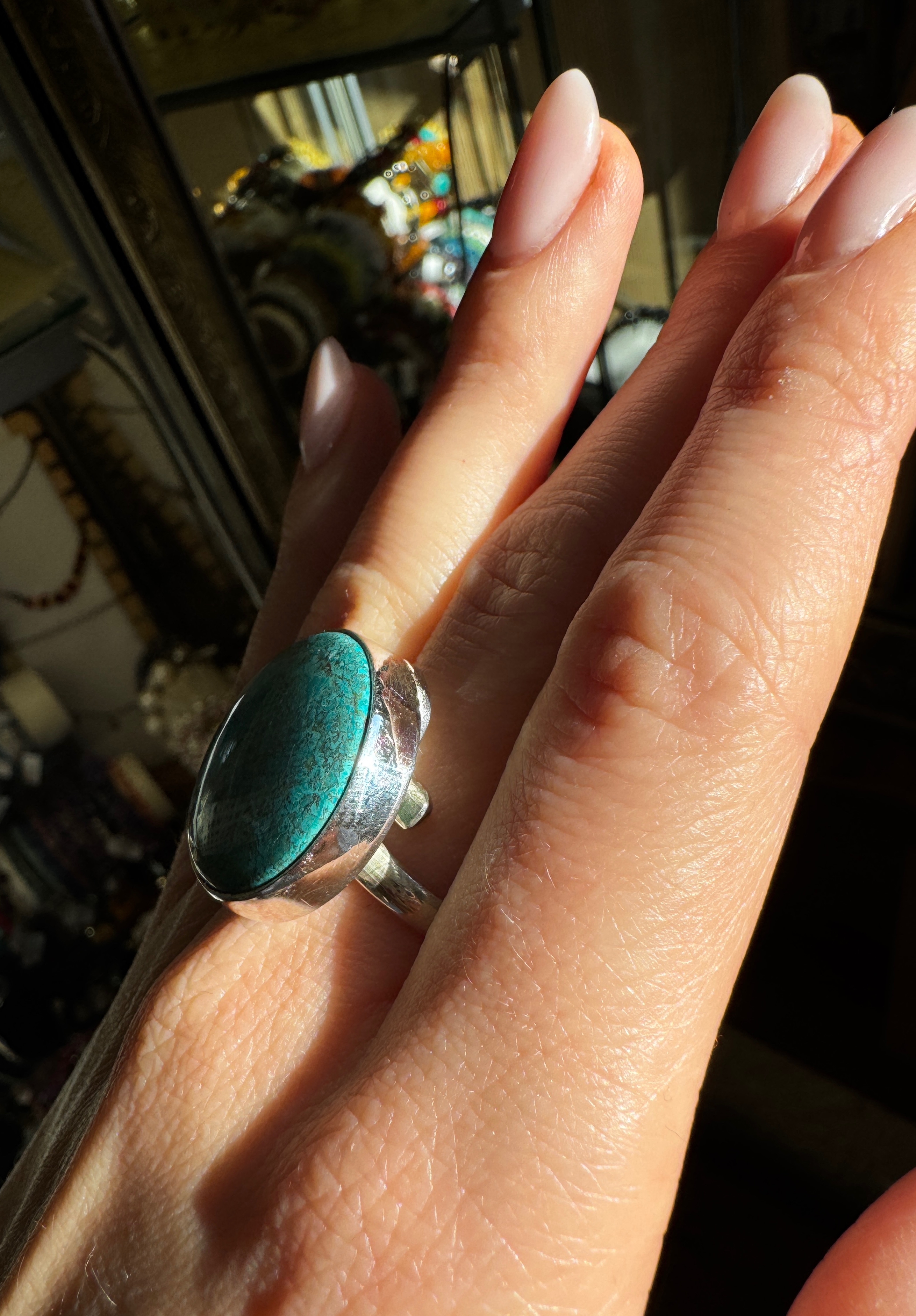 Ręcznie wykonany pierścionek z pięknej chryzokoli i srebra pr.925