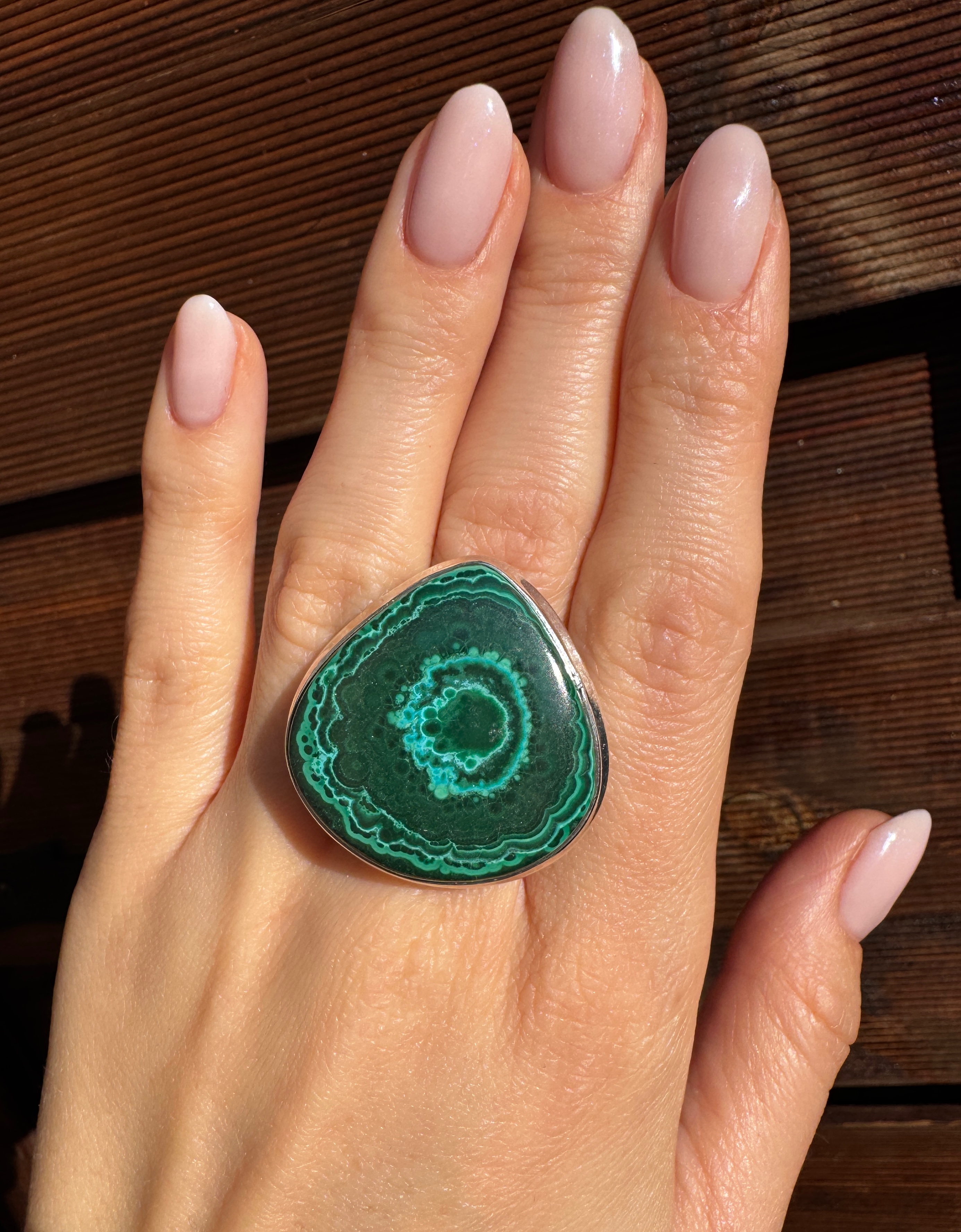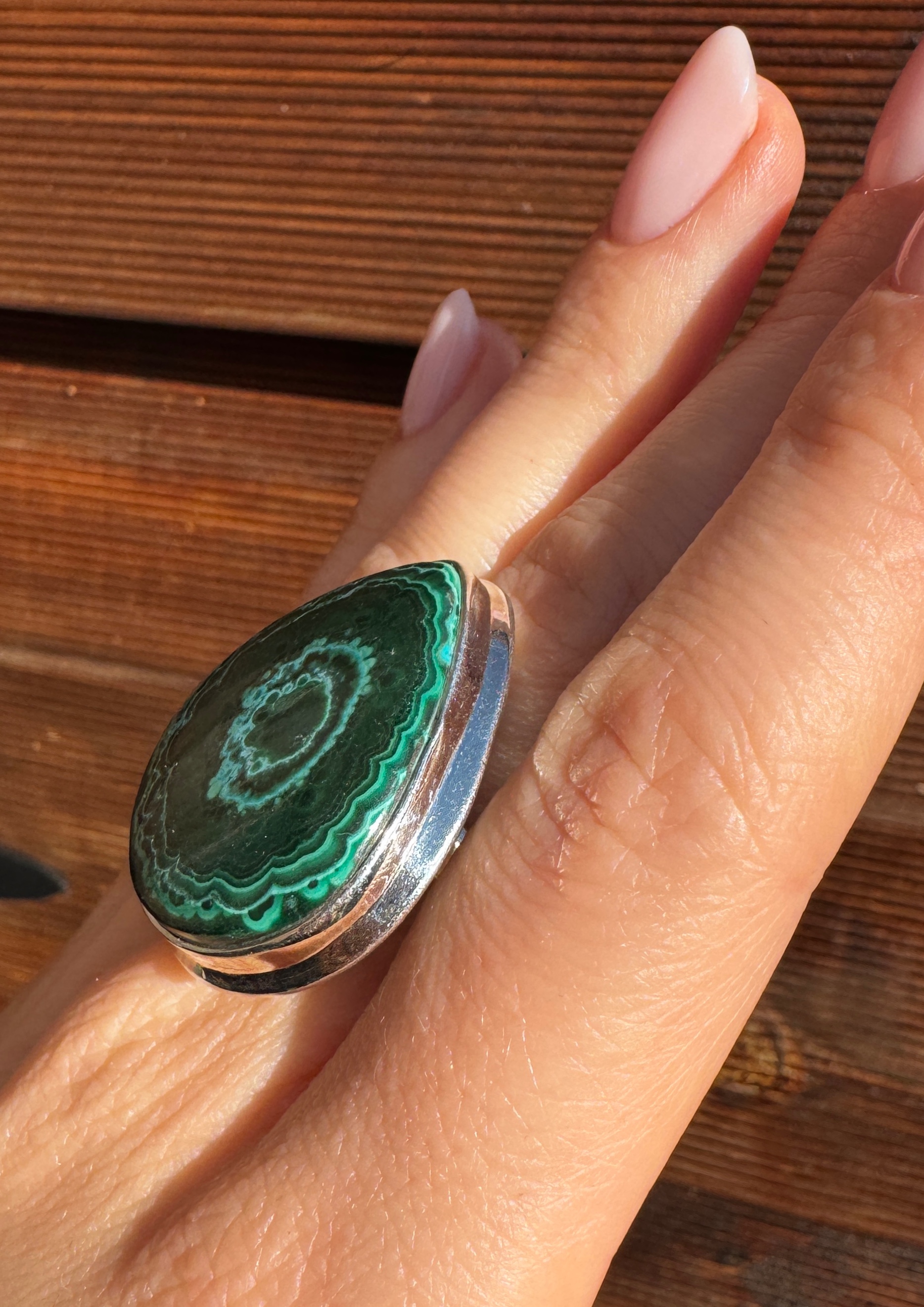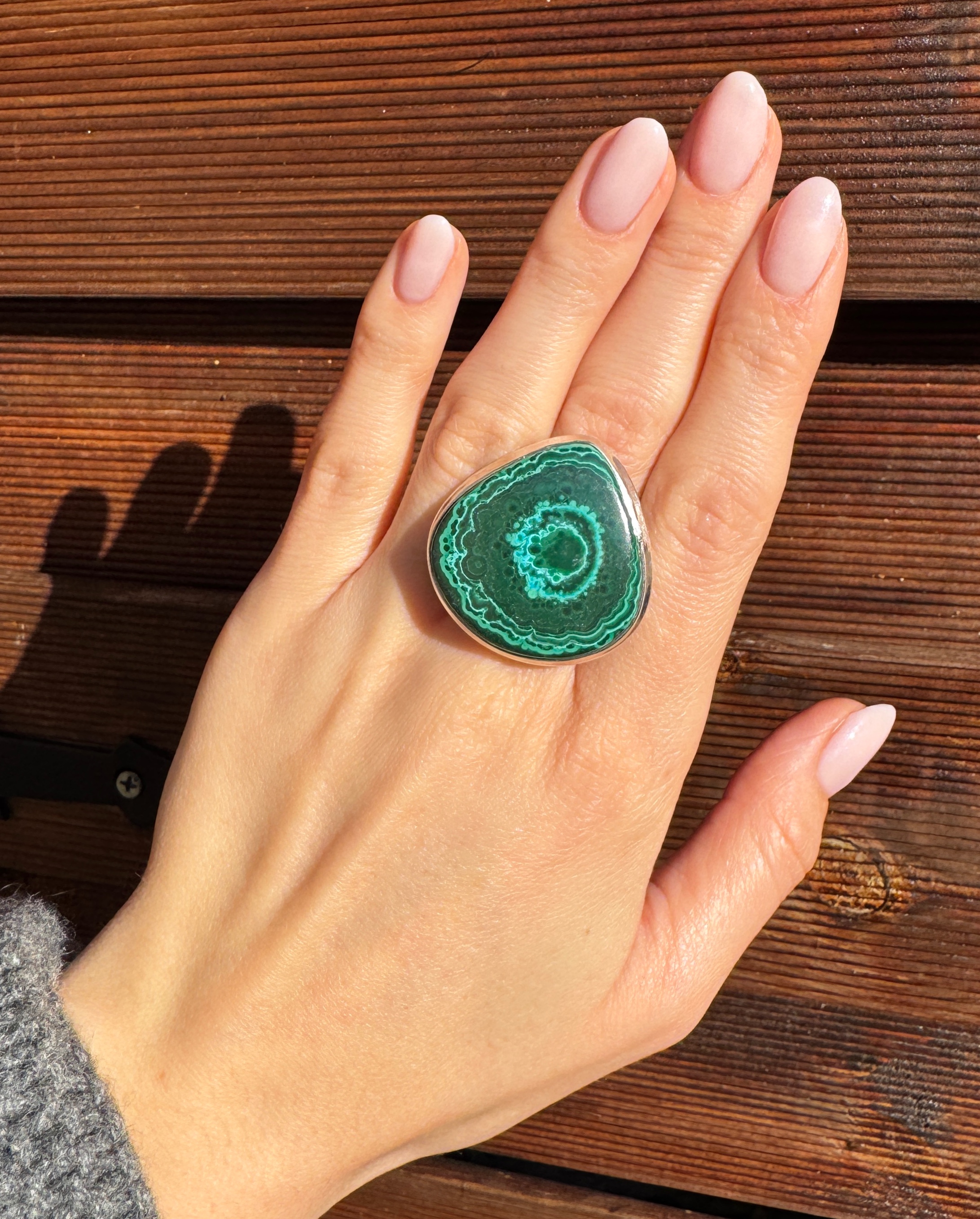 Ręcznie wykonany pierścionek z pięknej chryzokoli z malachitem i srebra pr.925