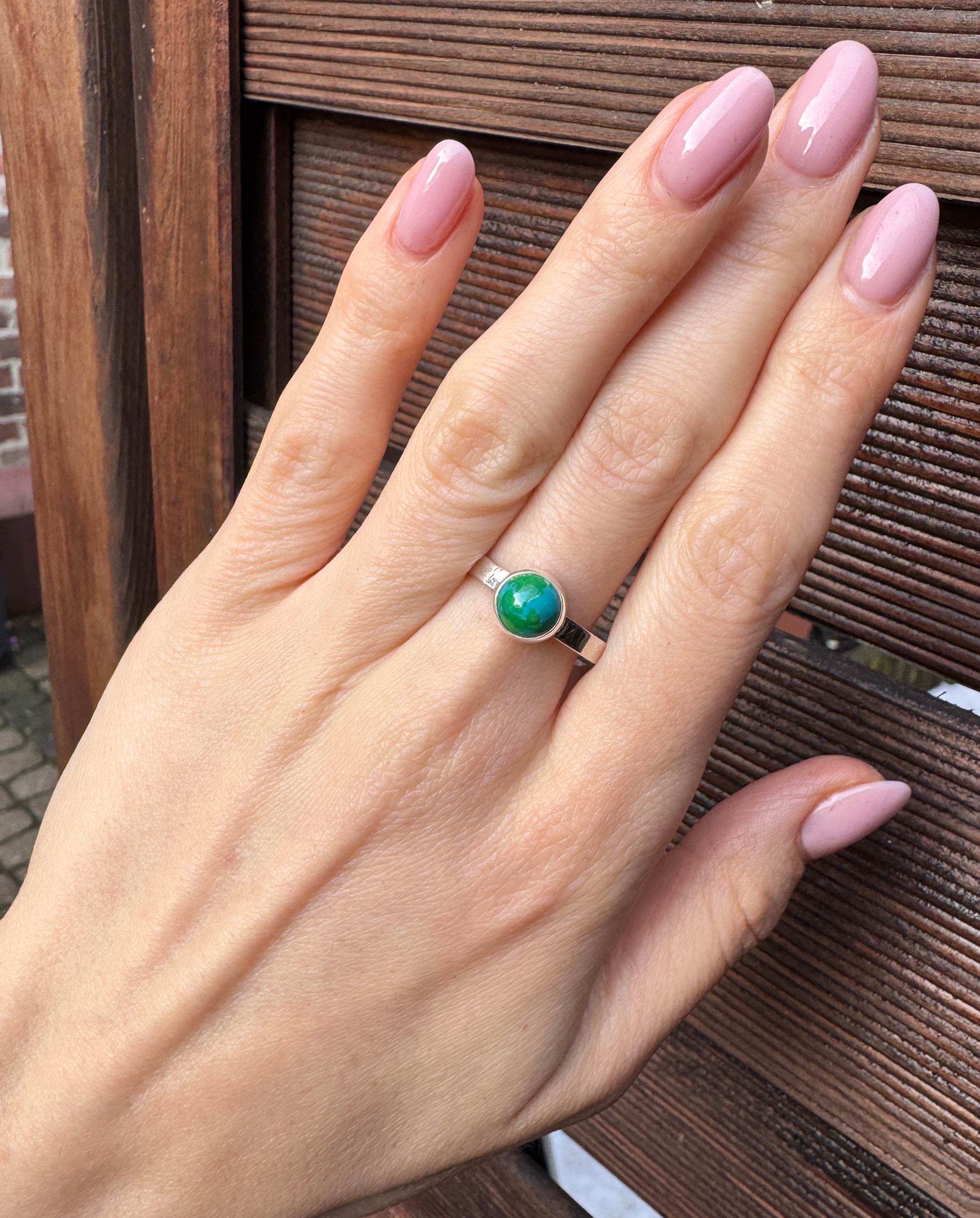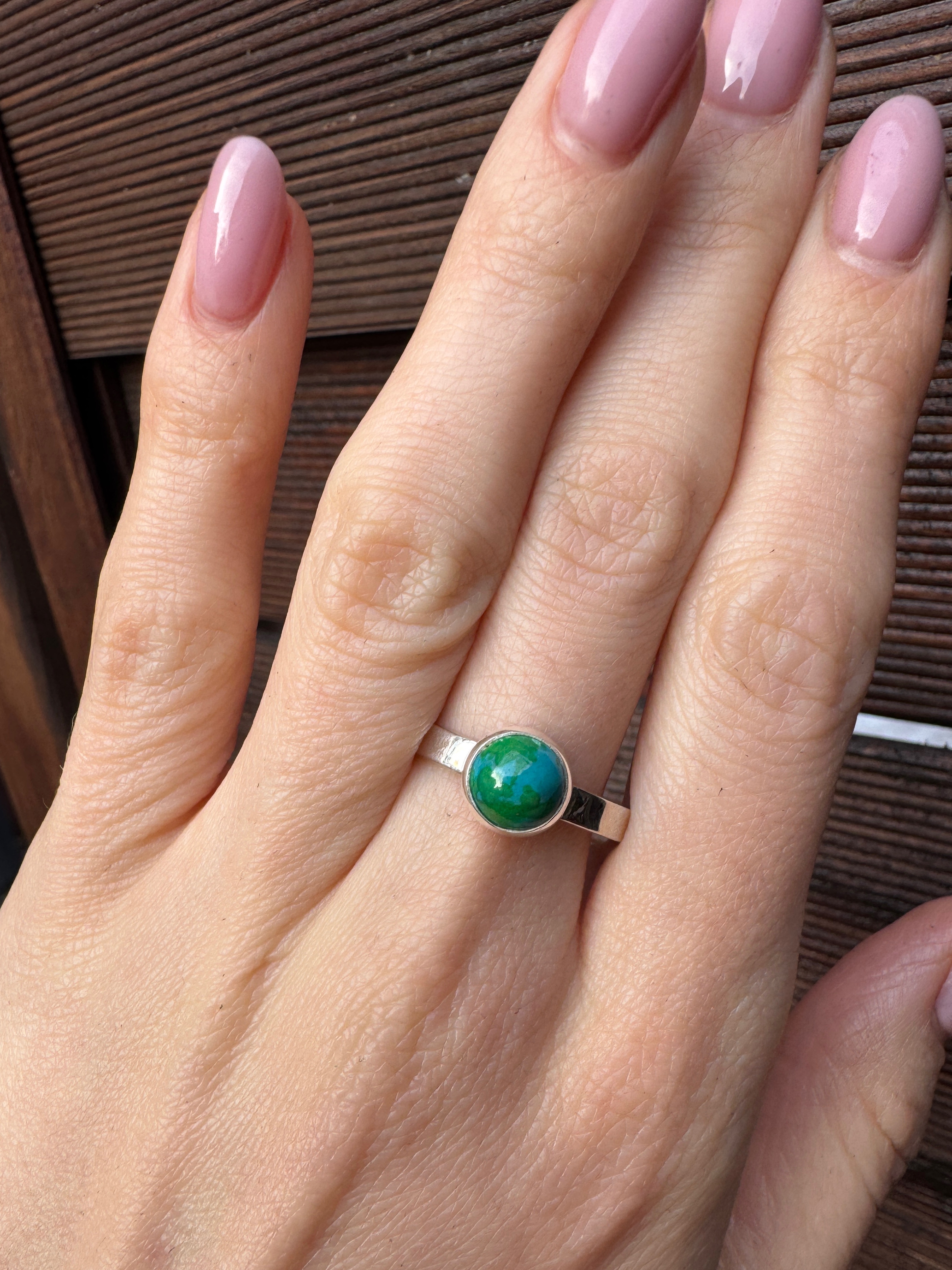 Ręcznie wykonany pierścionek z chryzokoli i srebra pr.925
