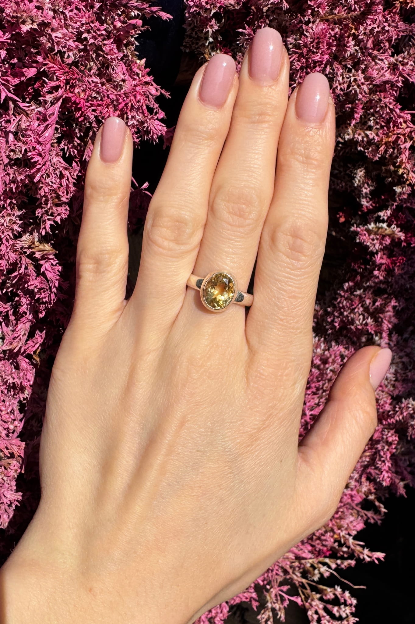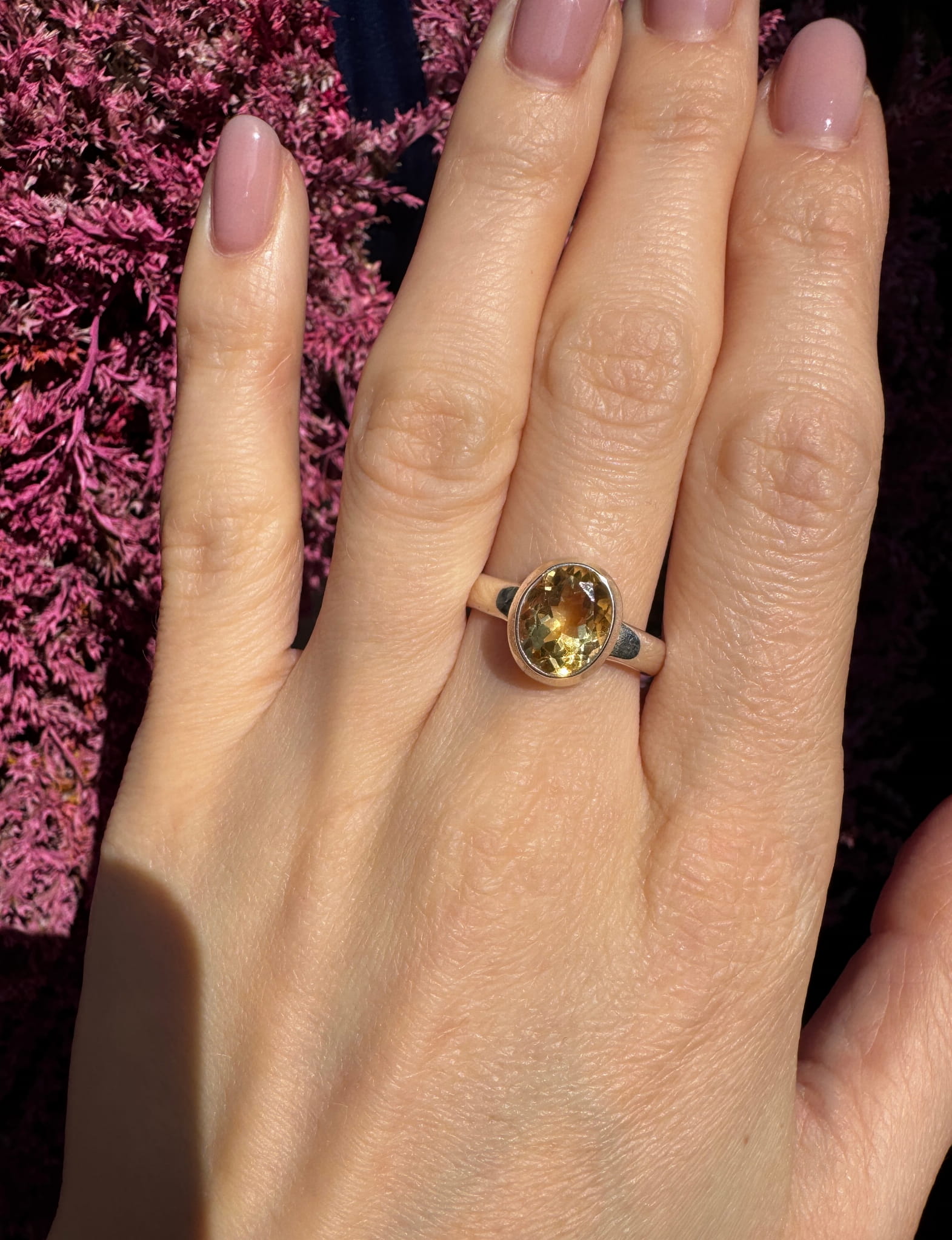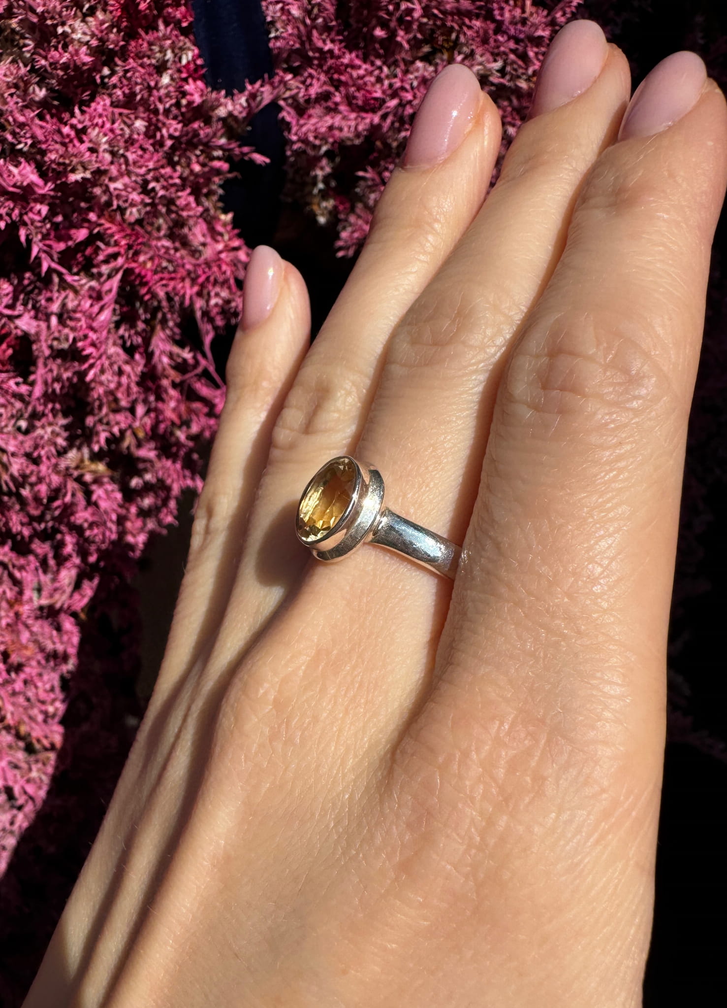 Ręcznie wykonany pierścionek z fasetowanego cytrynu i srebra pr.925