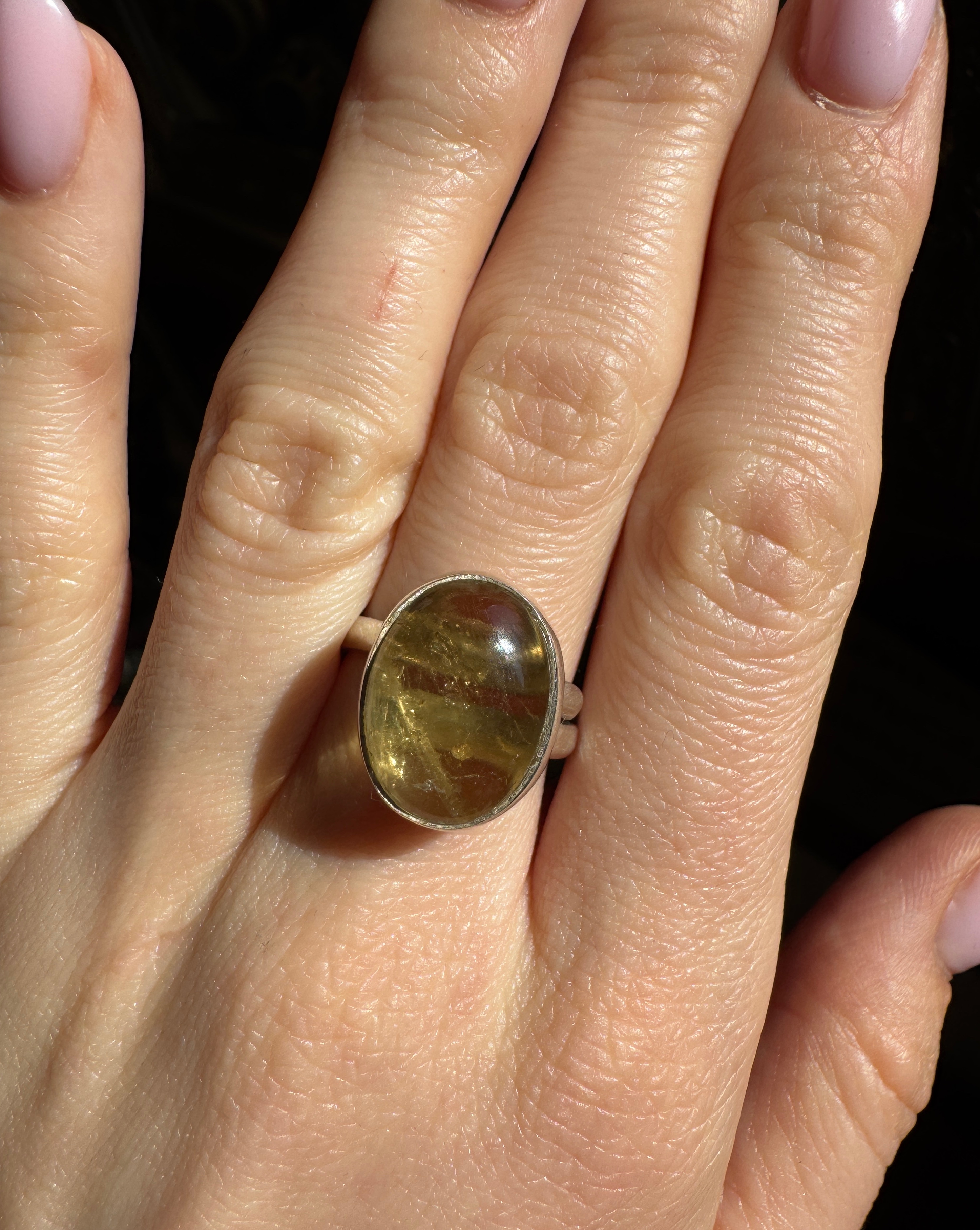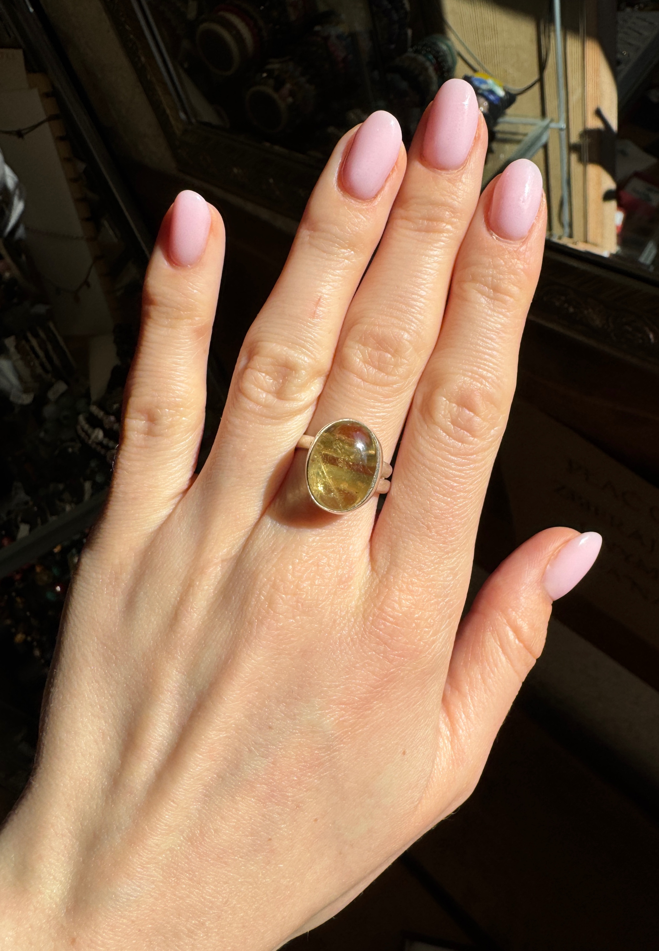 Ręcznie wykonany pierścionek z owalnego cytrynu i srebra pr.925