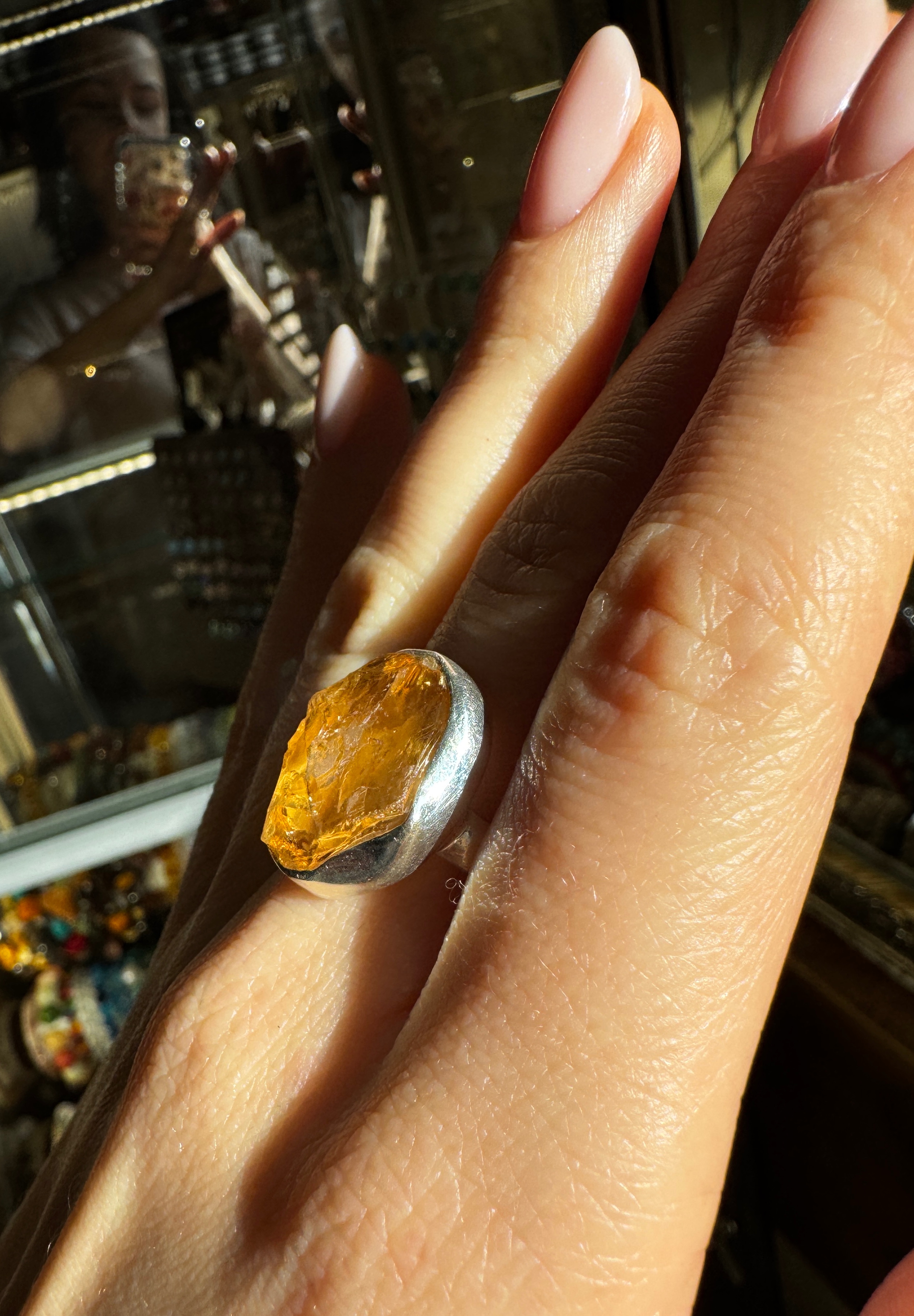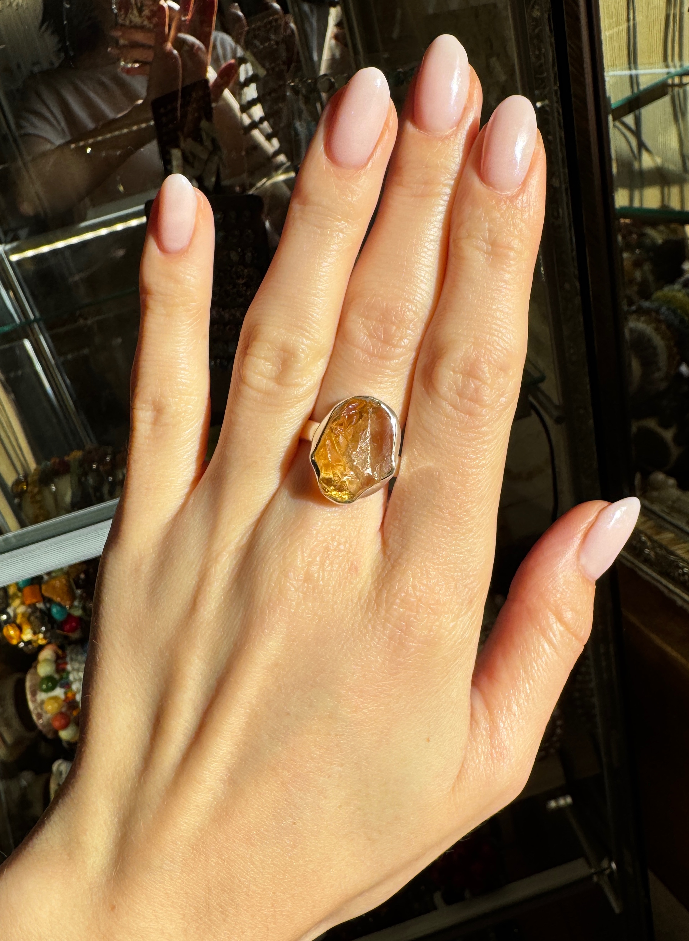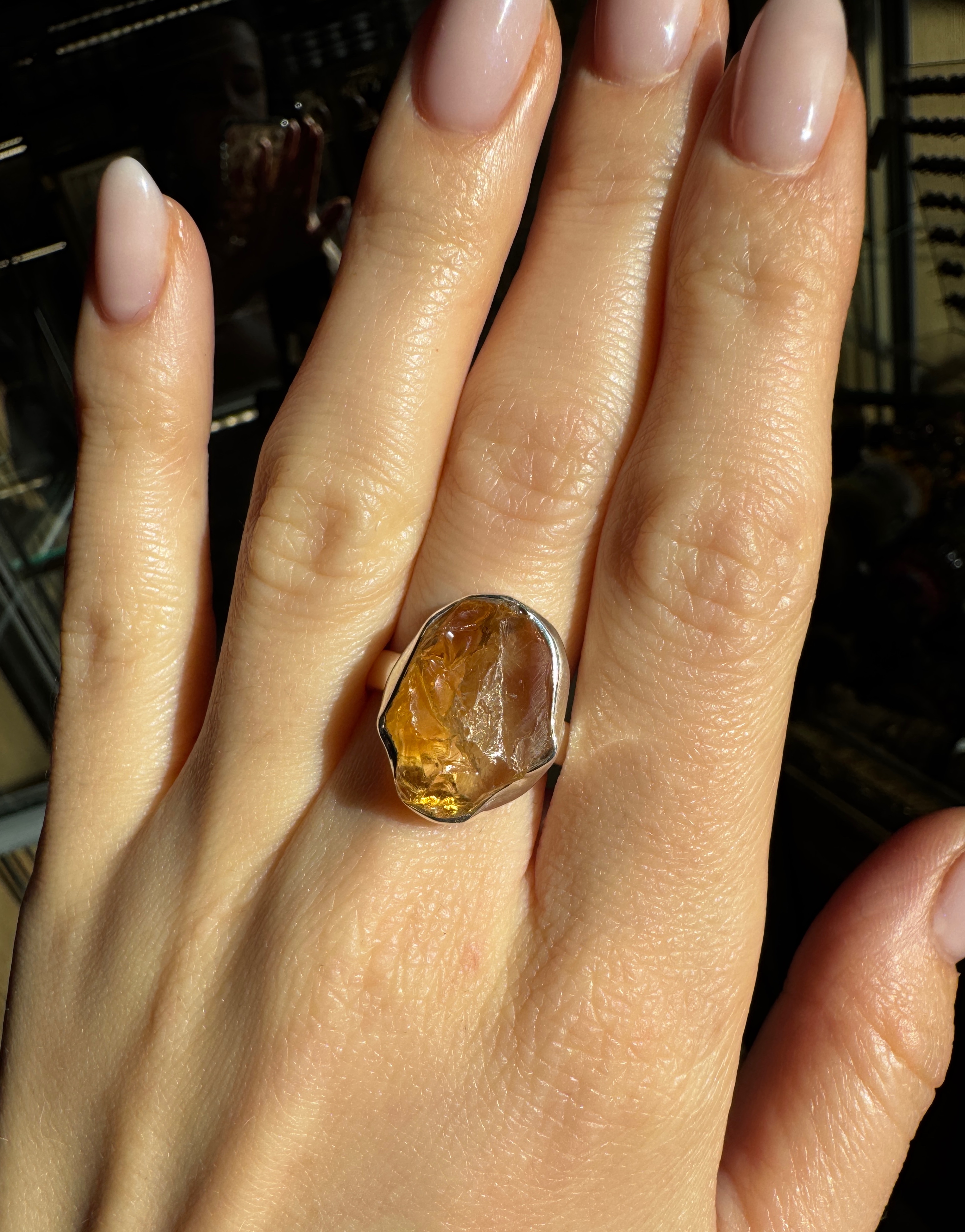 Ręcznie wykonany pierścionek z surowego, nieoszlifowanego cytrynu i srebra pr.925