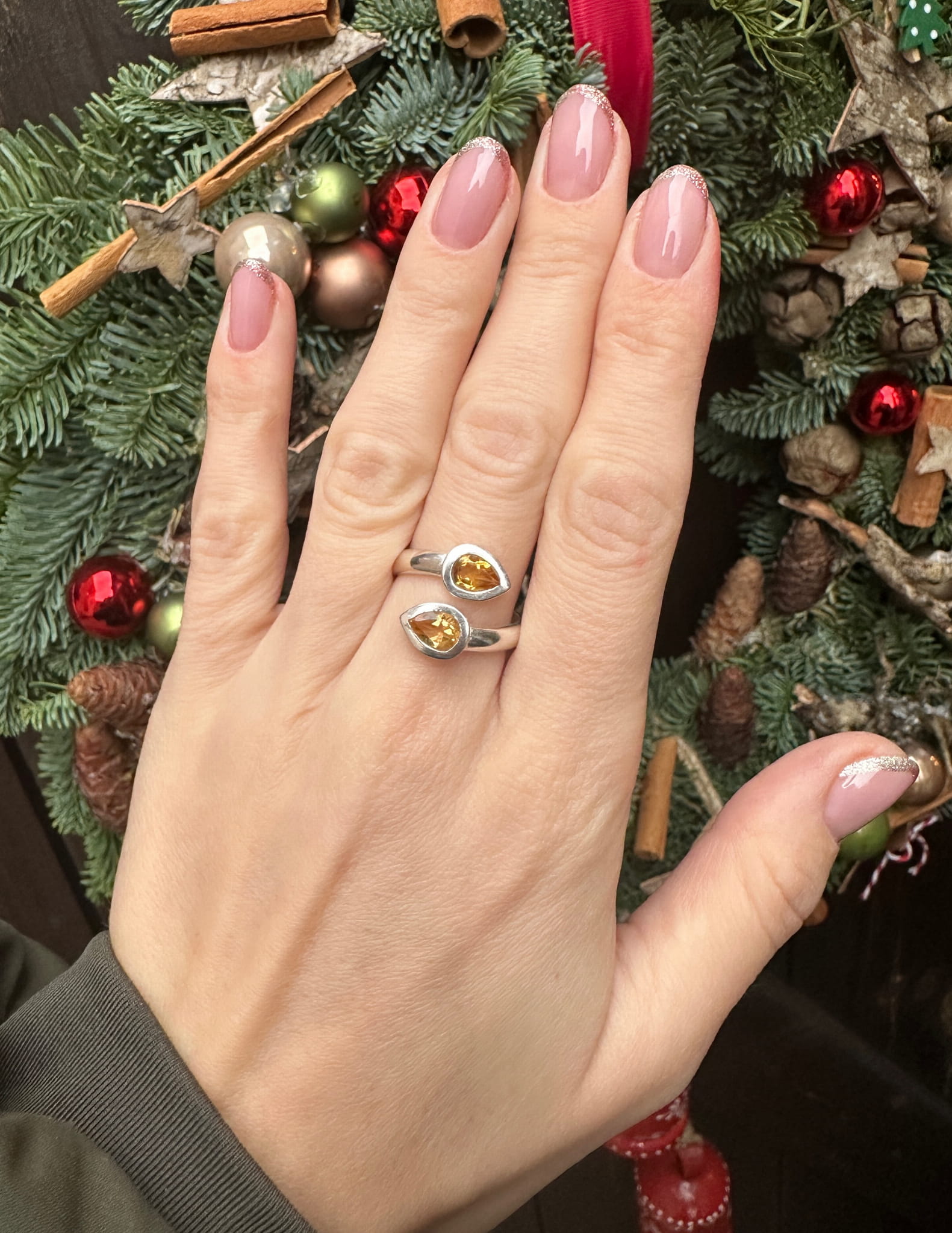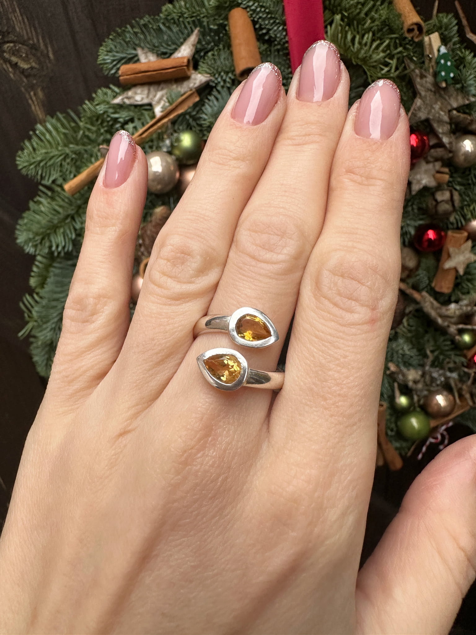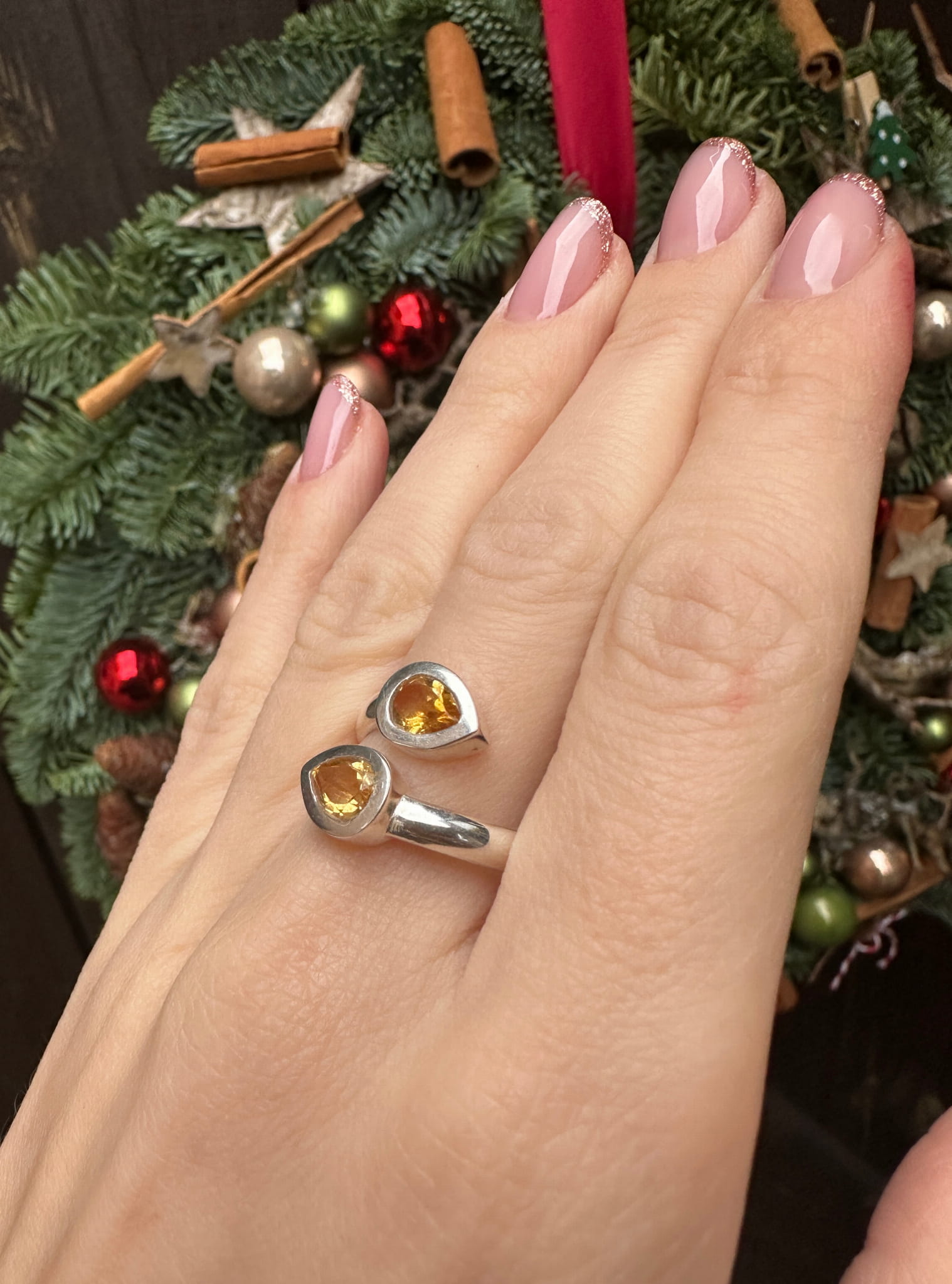Ręcznie wykonany pierścionek z cytrynów fasetowanych i srebra pr.925