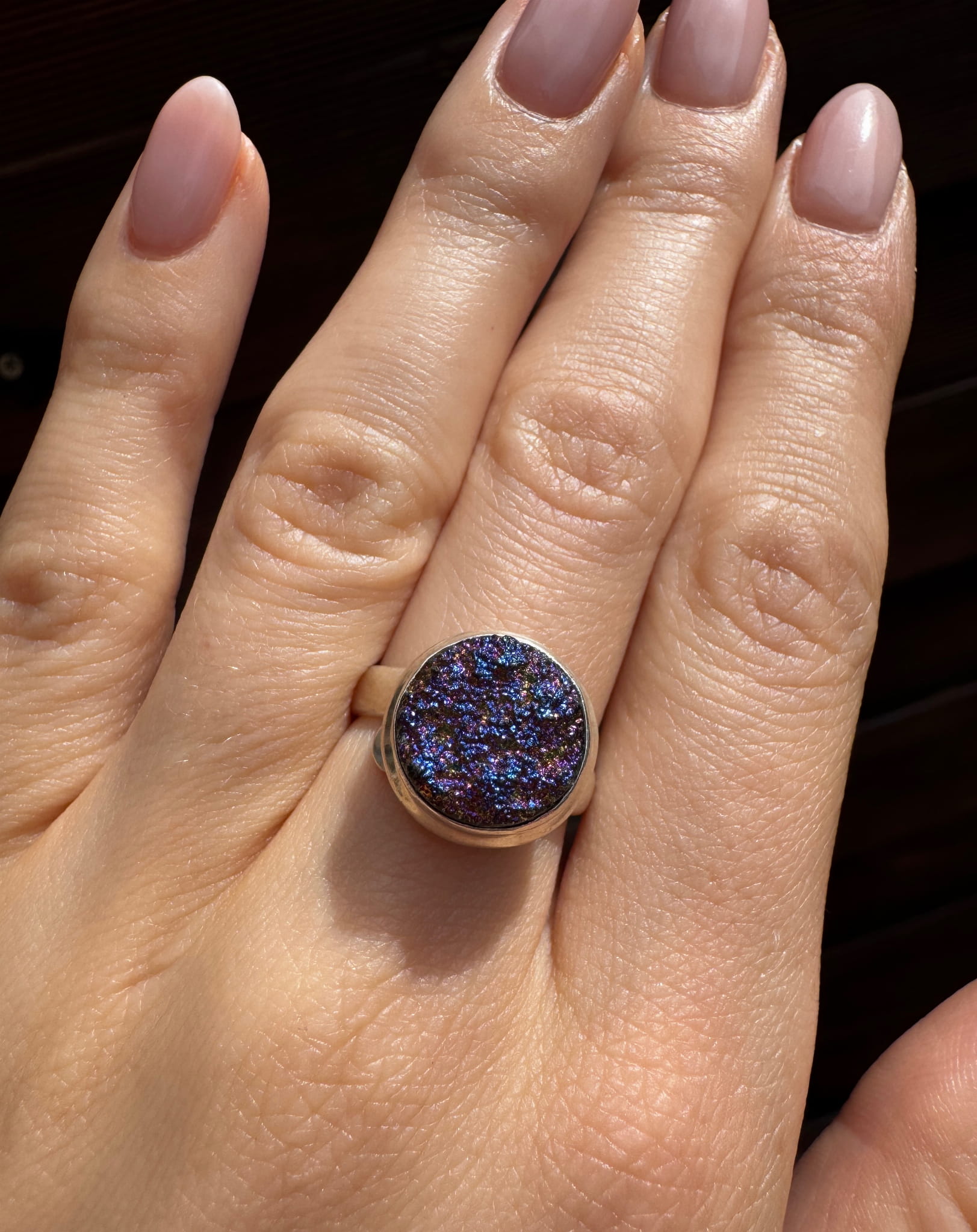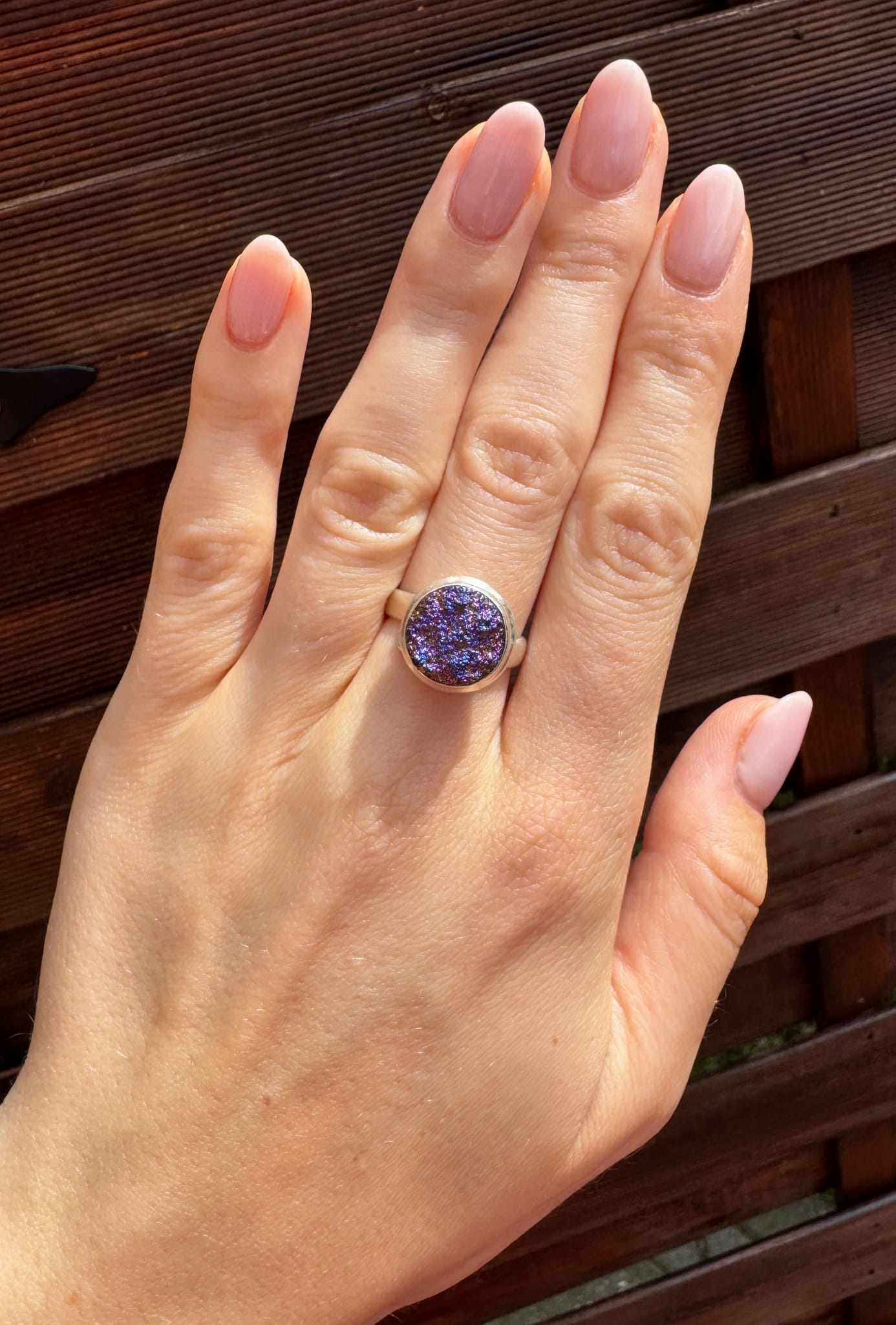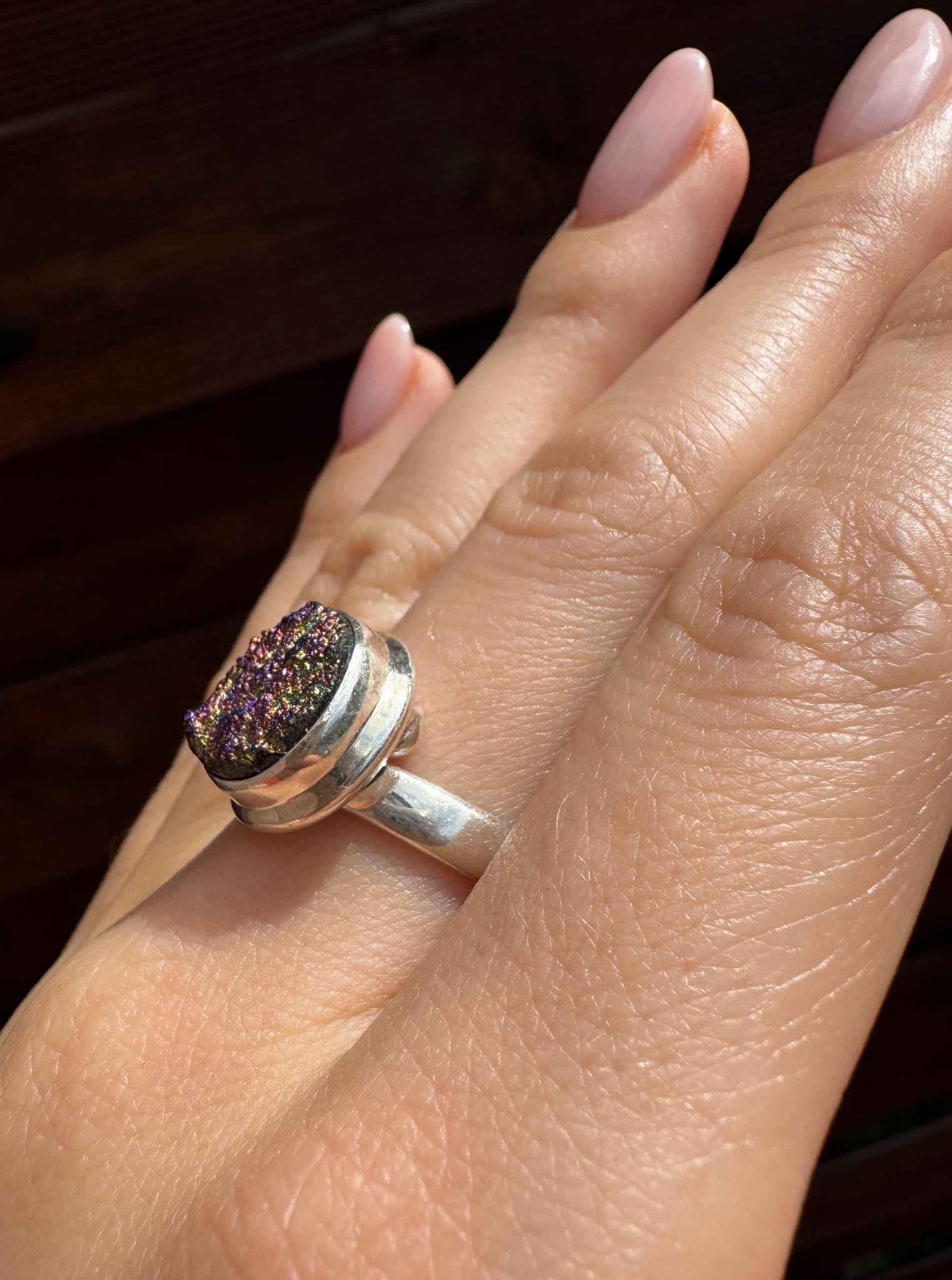 Piękny ręcznie wykonany pierścionek z druzy agatowej i srebra pr.925.