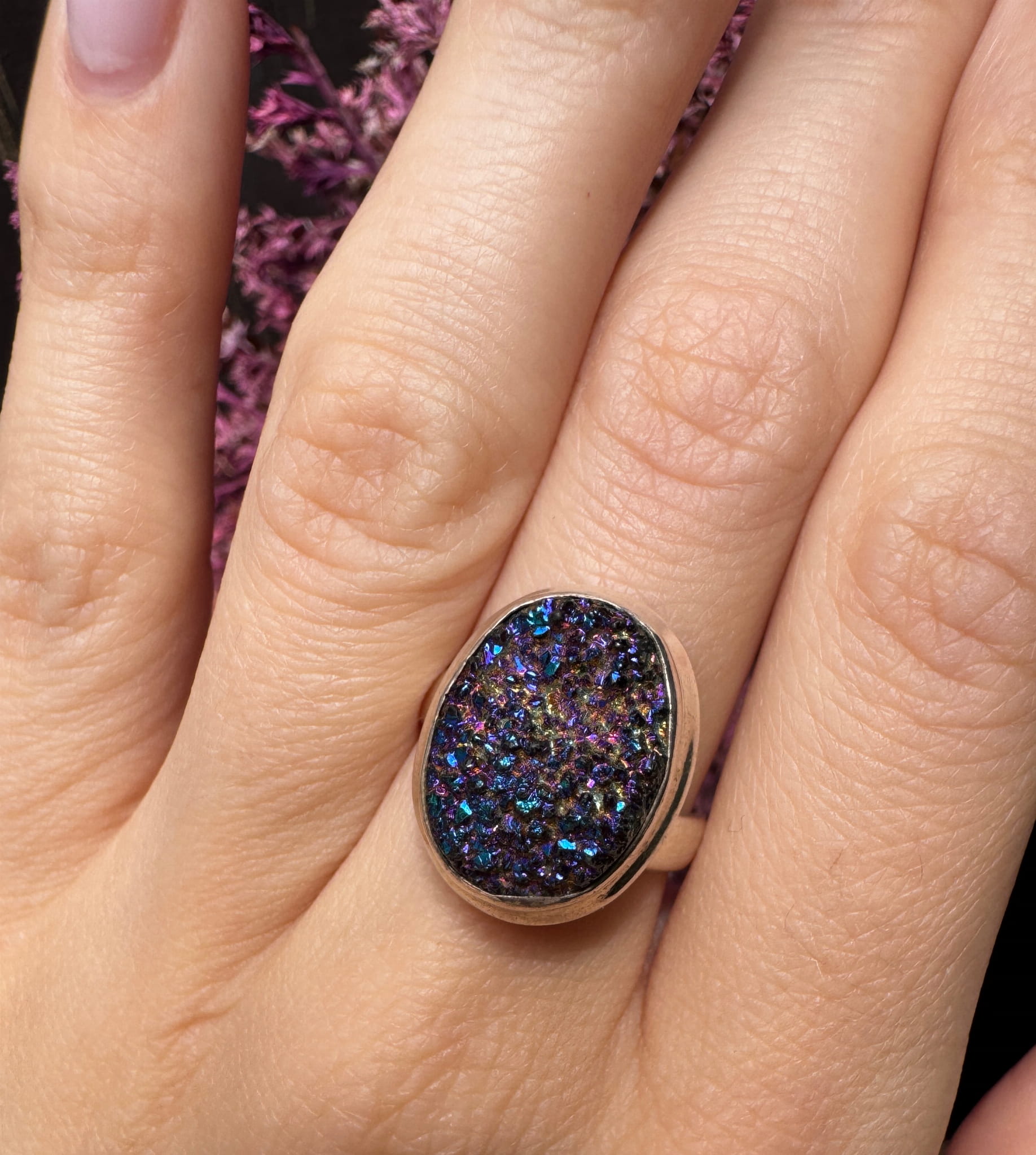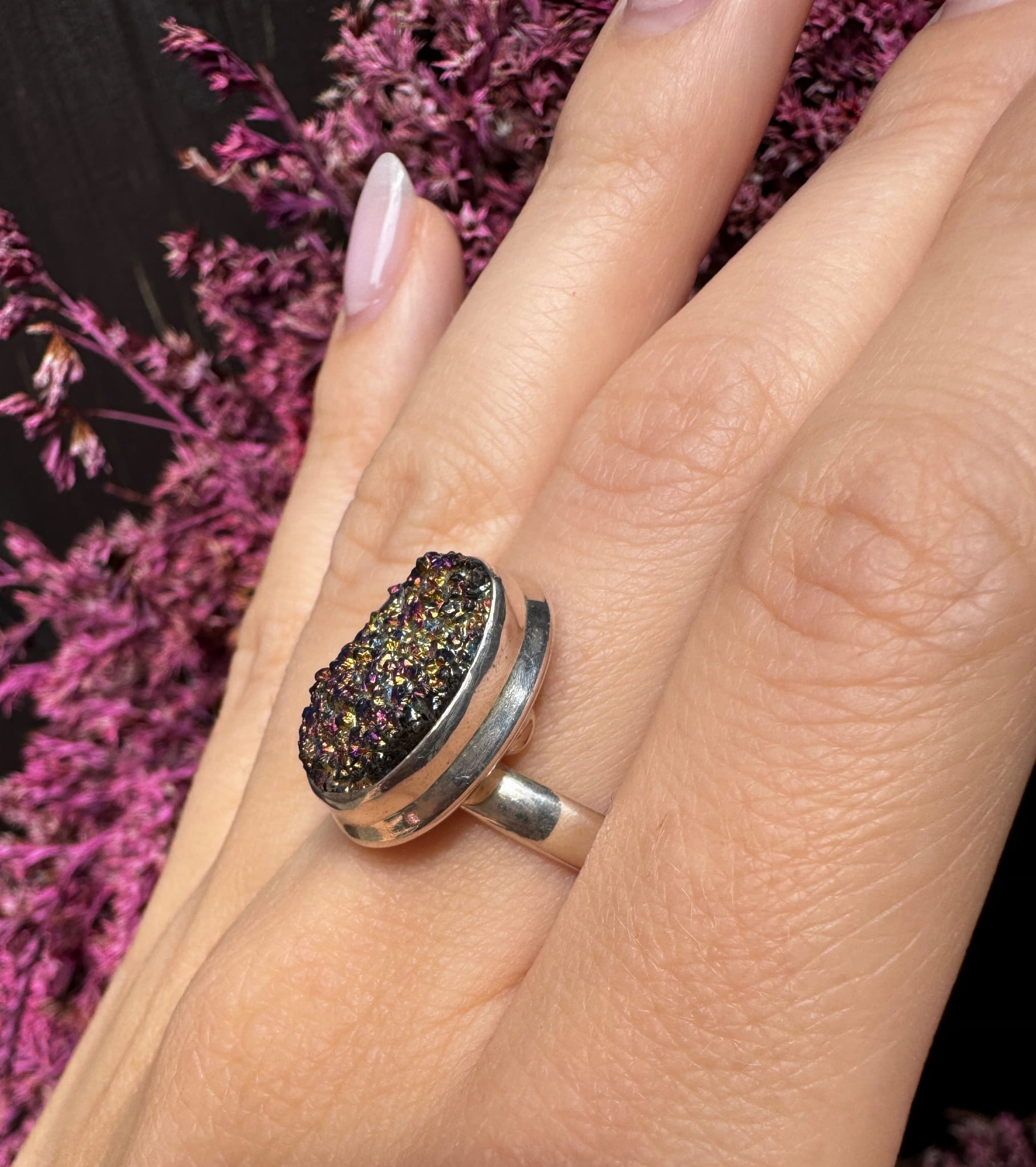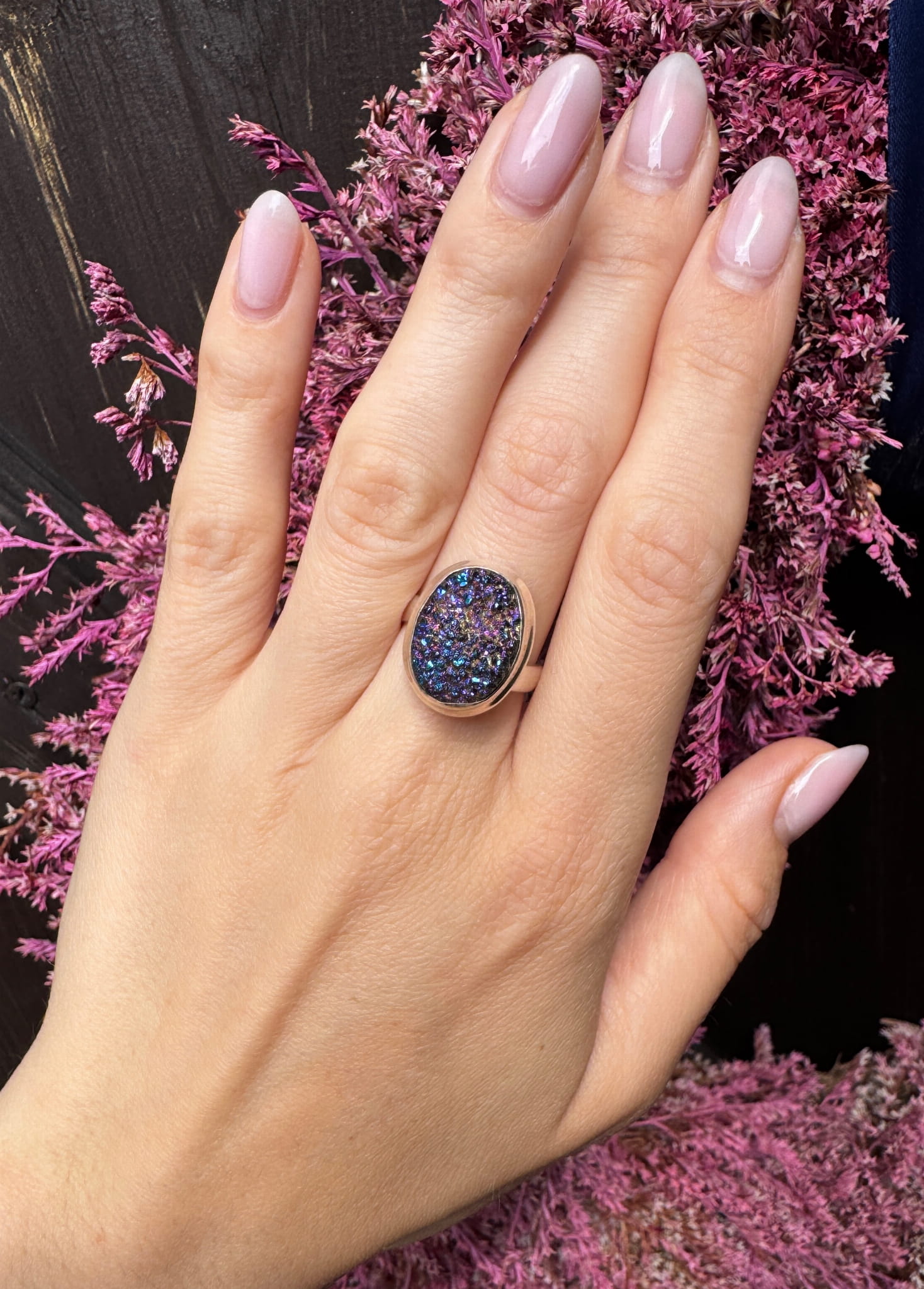 Piękny ręcznie wykonany pierścionek z druzy agatowej i srebra pr.925.