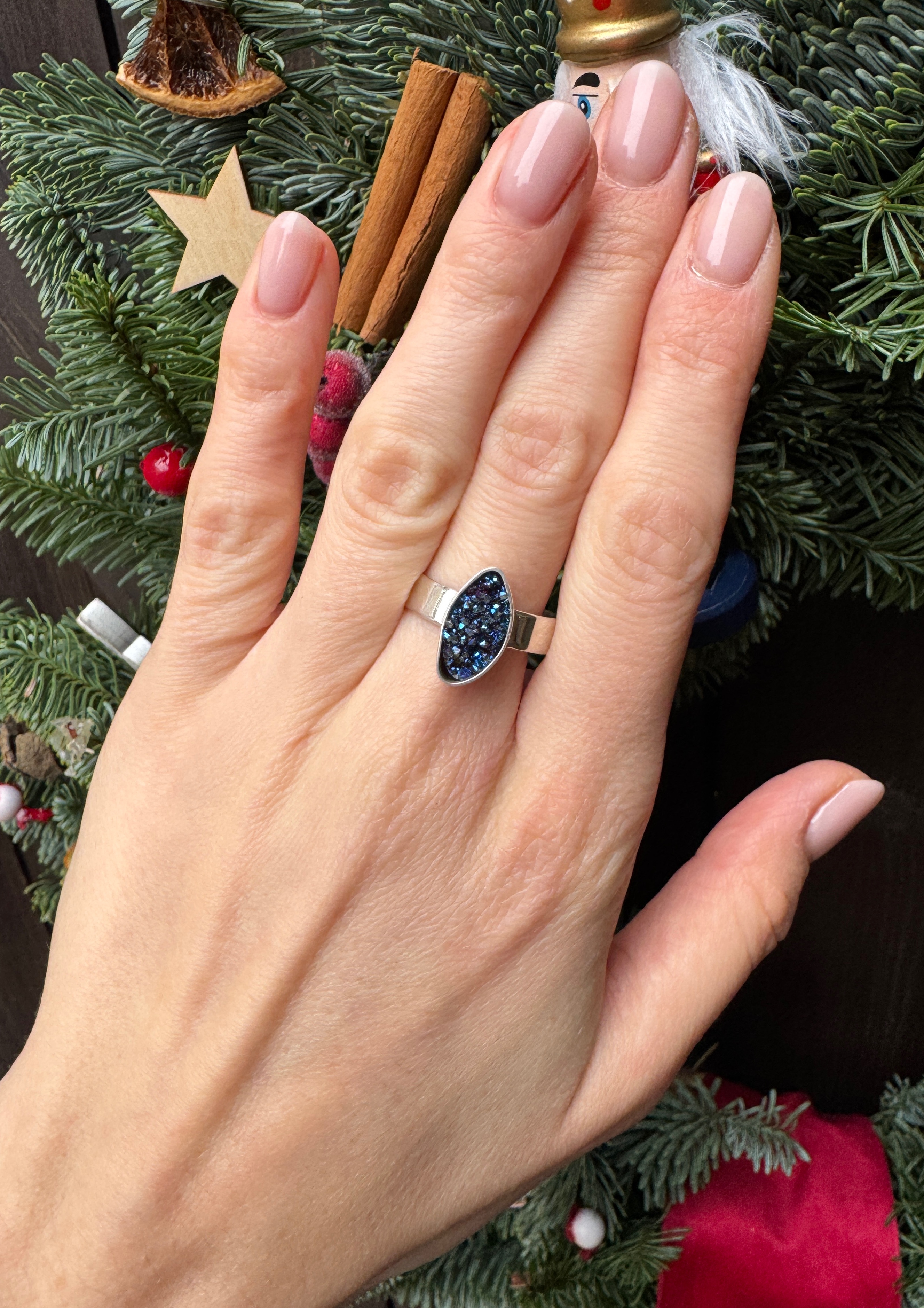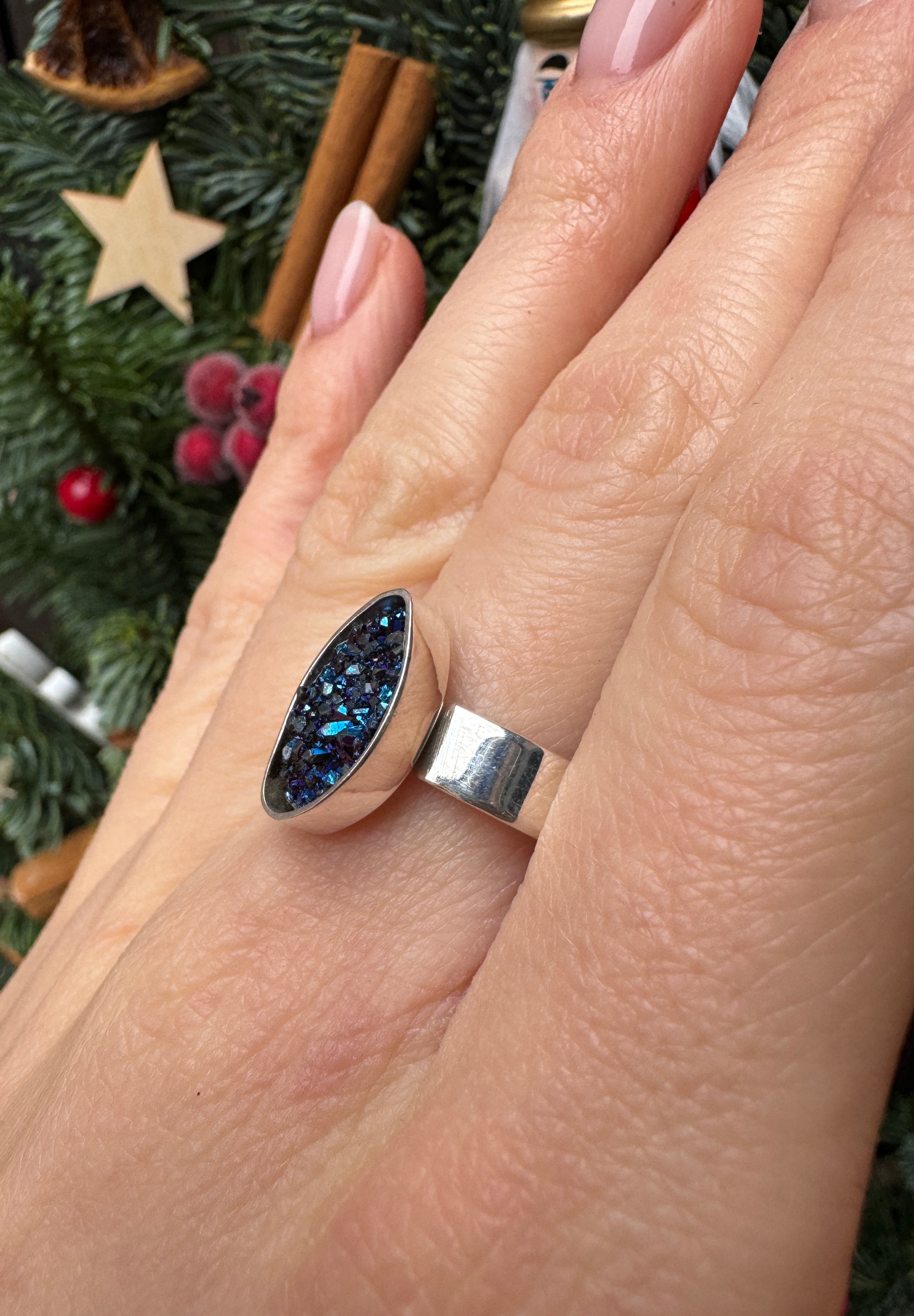 Piękny ręcznie wykonany pierścionek z druzy agatowej i srebra pr.925.
