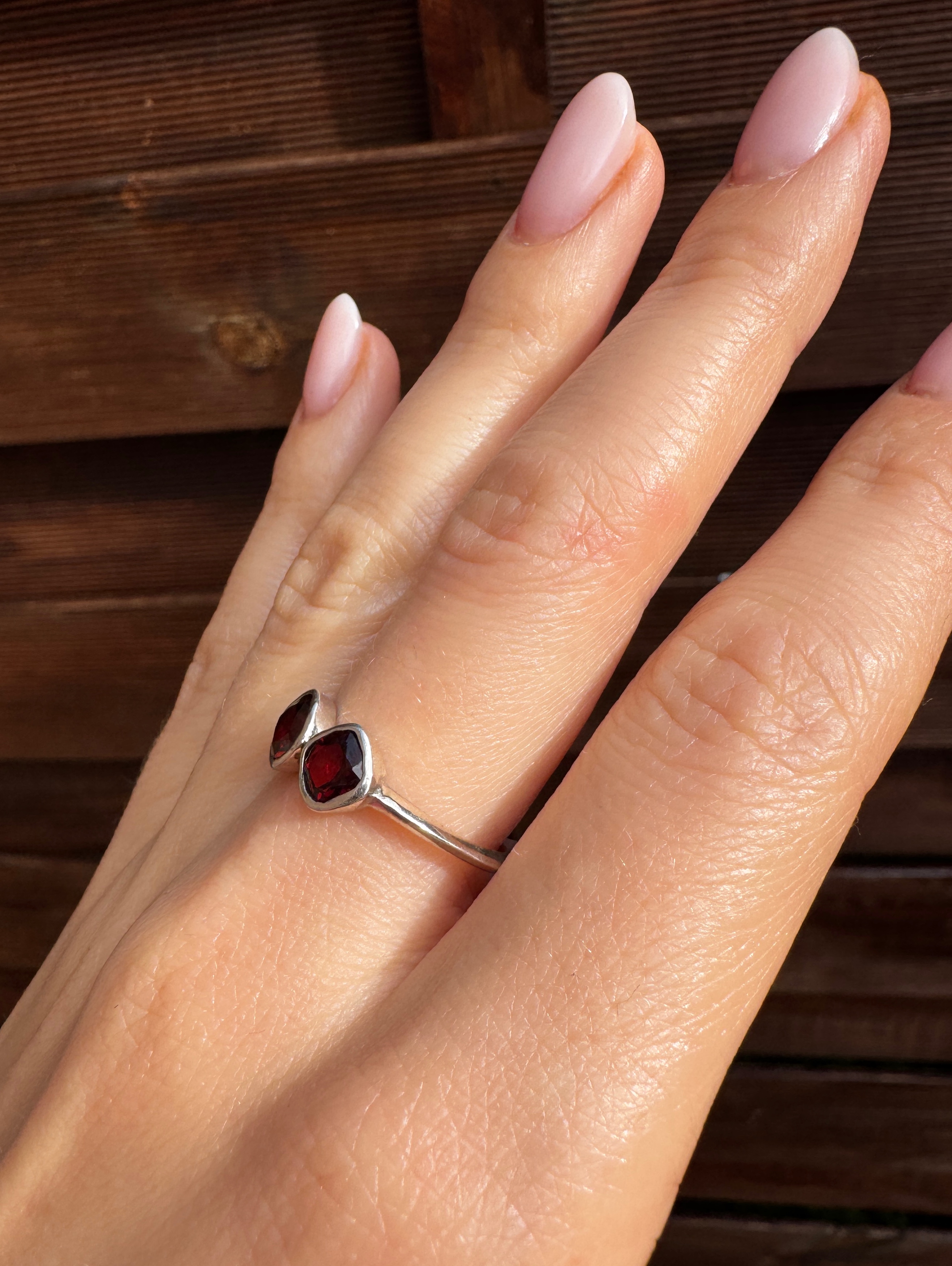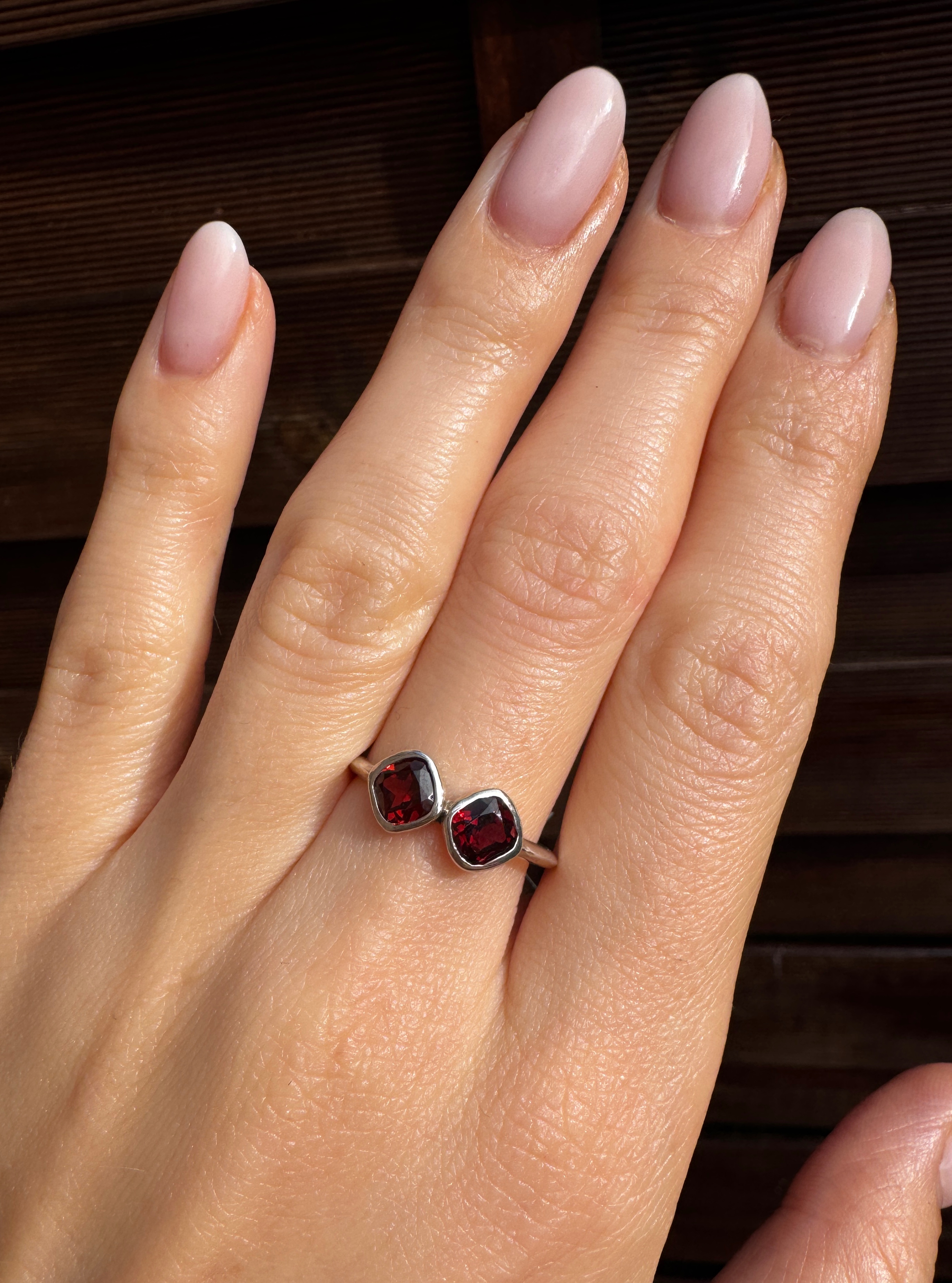 Ręcznie wykonany pierścionek z granatów i srebra pr.925