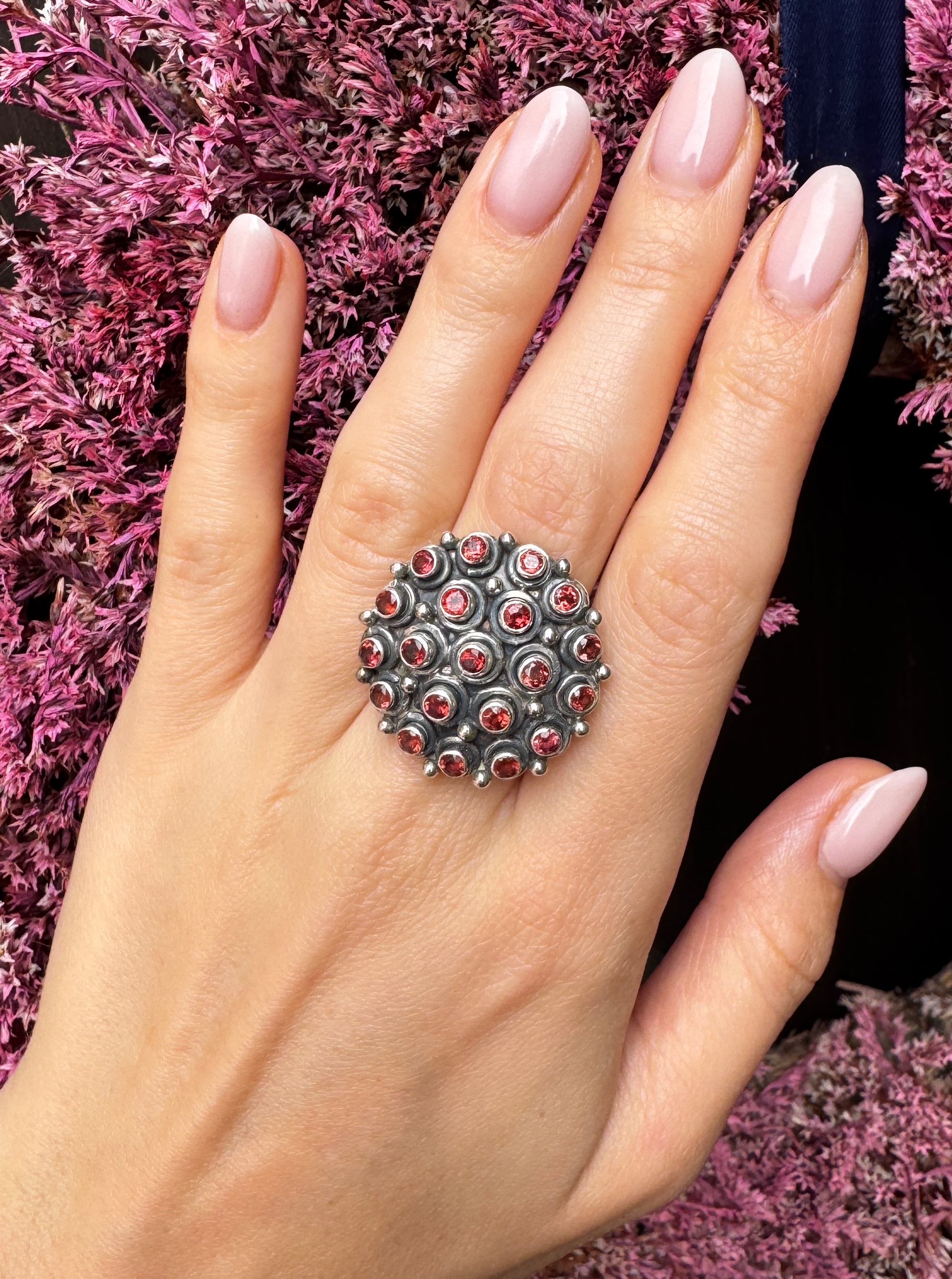 Ręcznie wykonany pierścionek z granatów i srebra pr.925