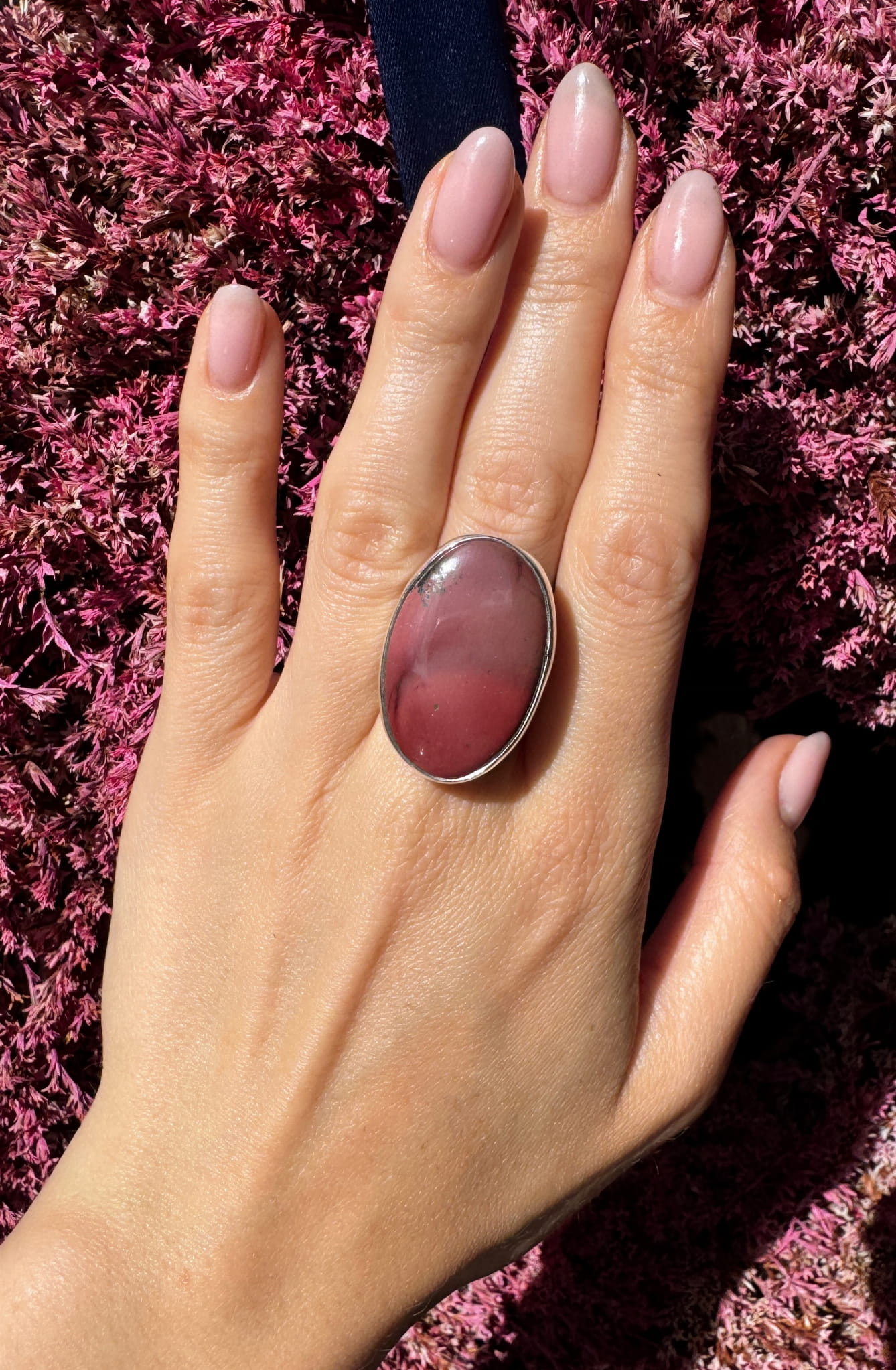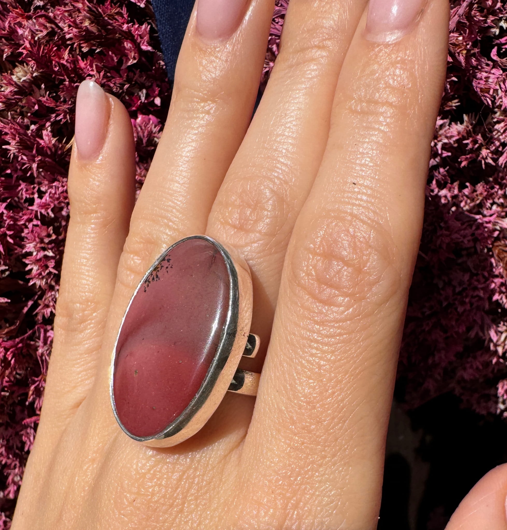 Ręcznie wykonany pierścionek z jaspisu mokaitu w kształcie owalnym i srebra pr.925