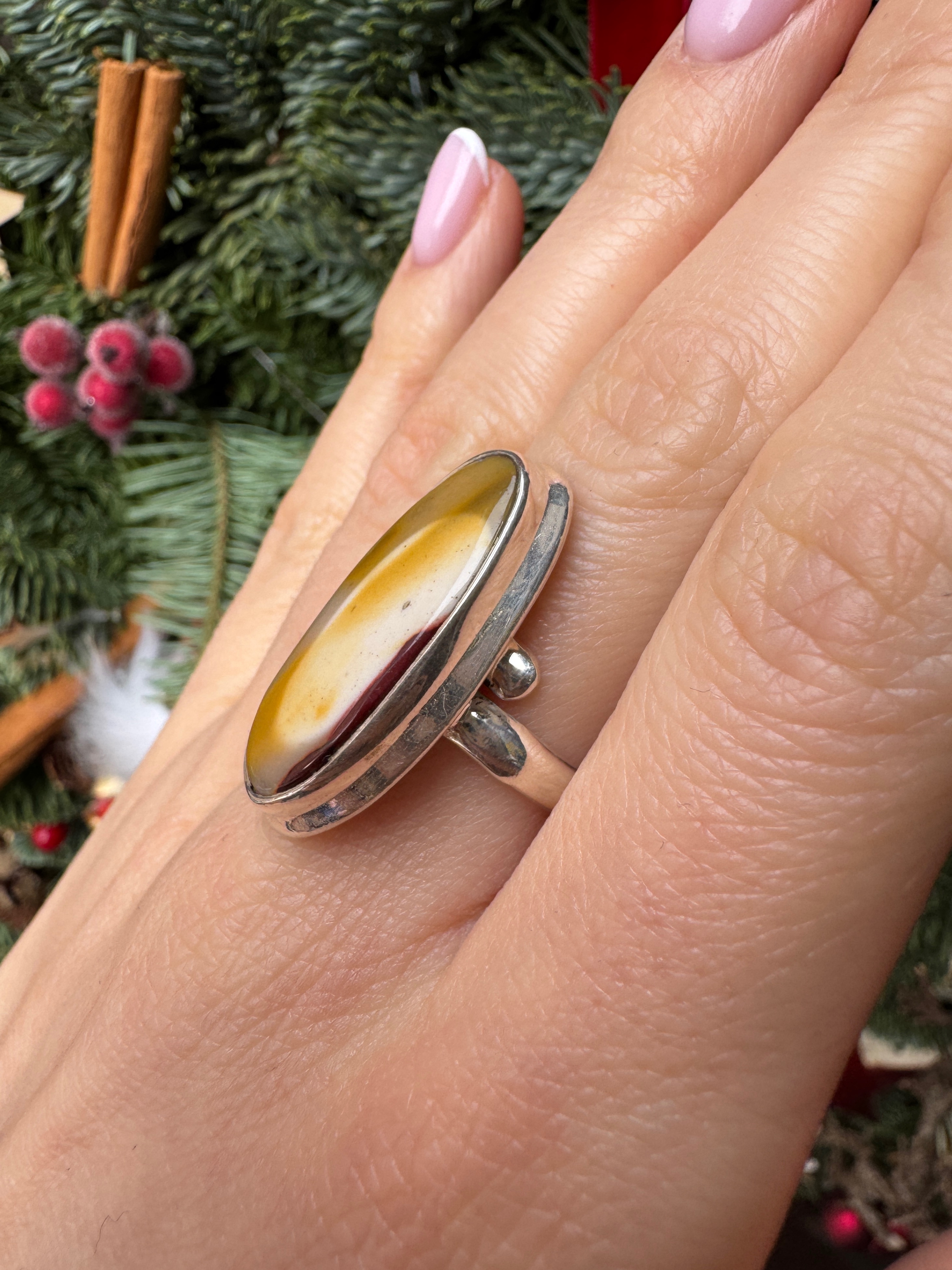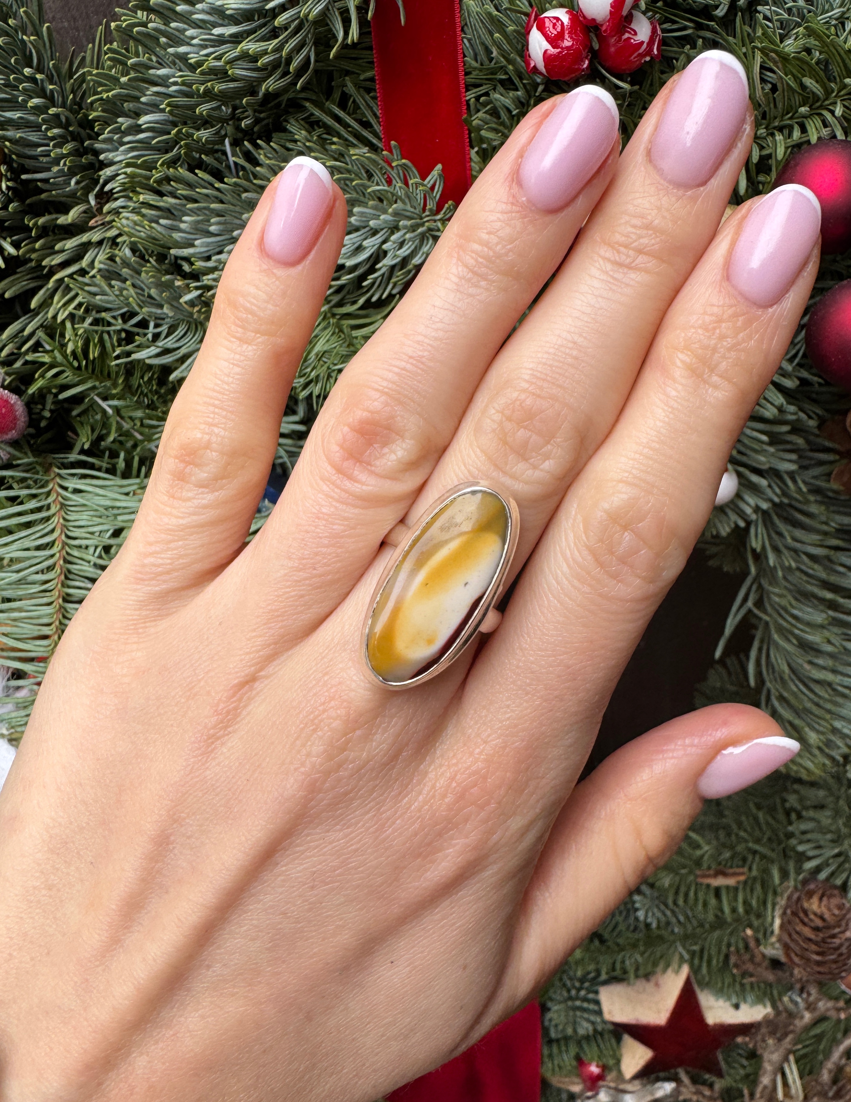 Ręcznie wykonany pierścionek z jaspisu mokaitu w kształcie owalnym i srebra pr.925