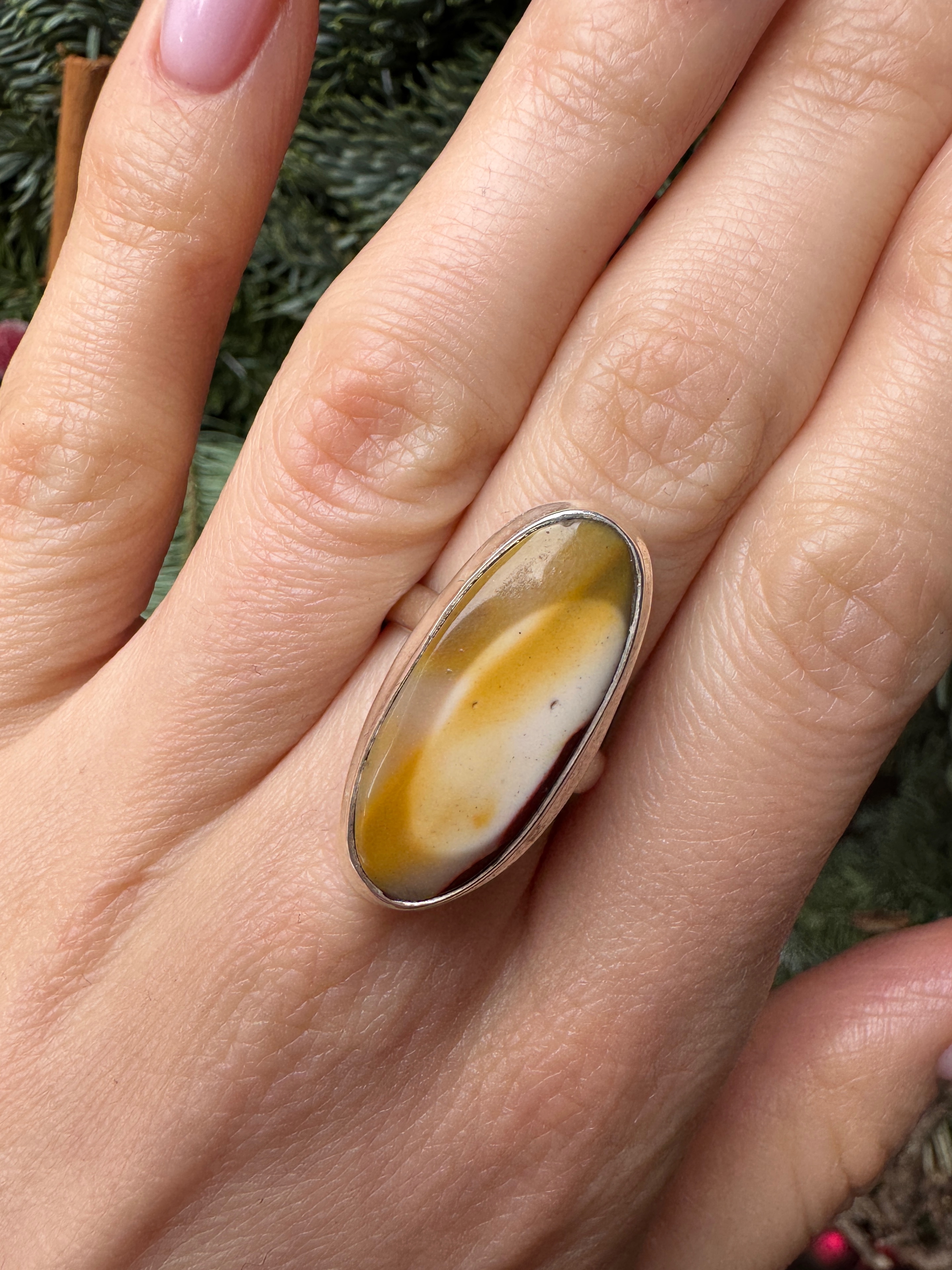 Pierścionek jaspis mokait owal