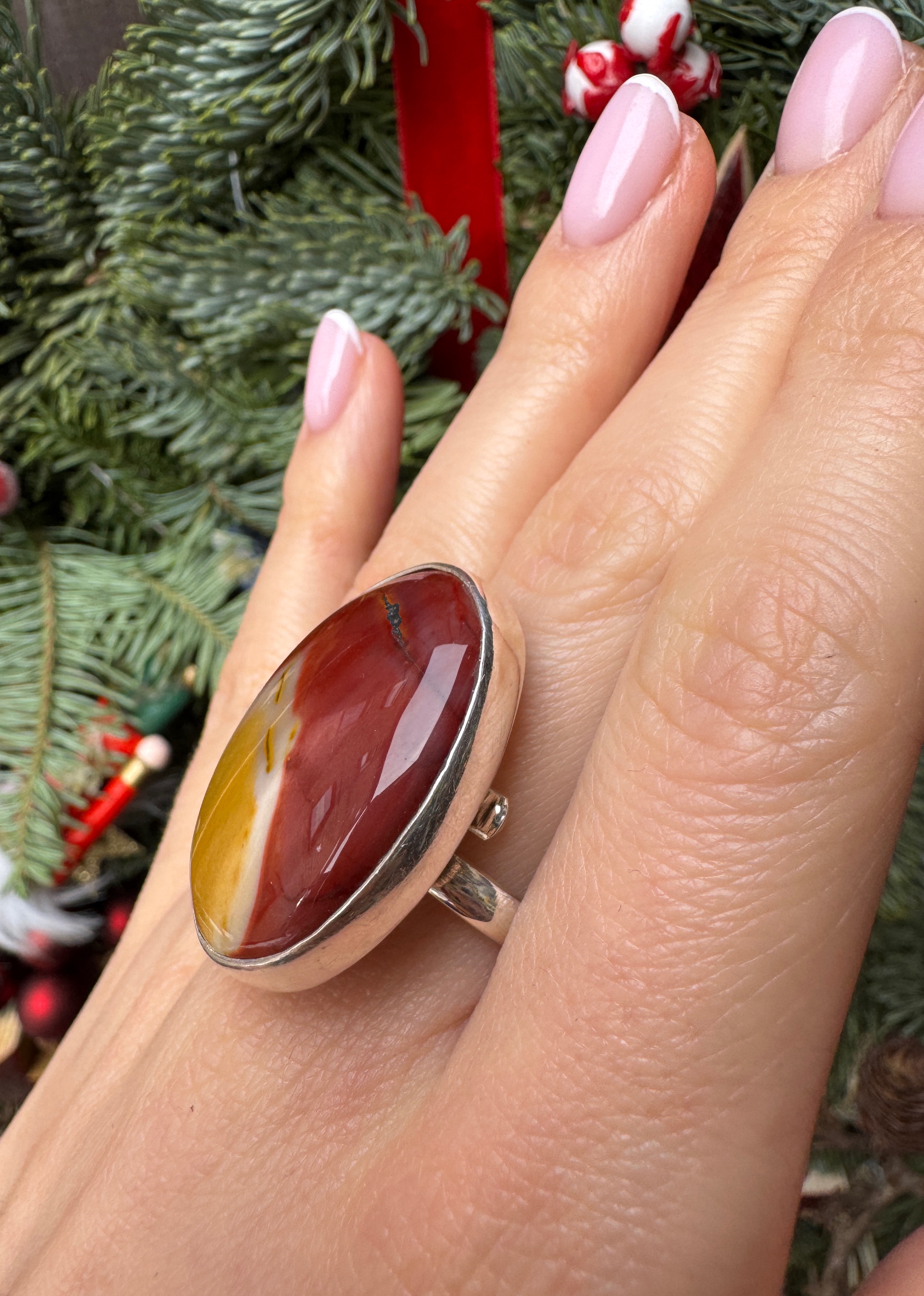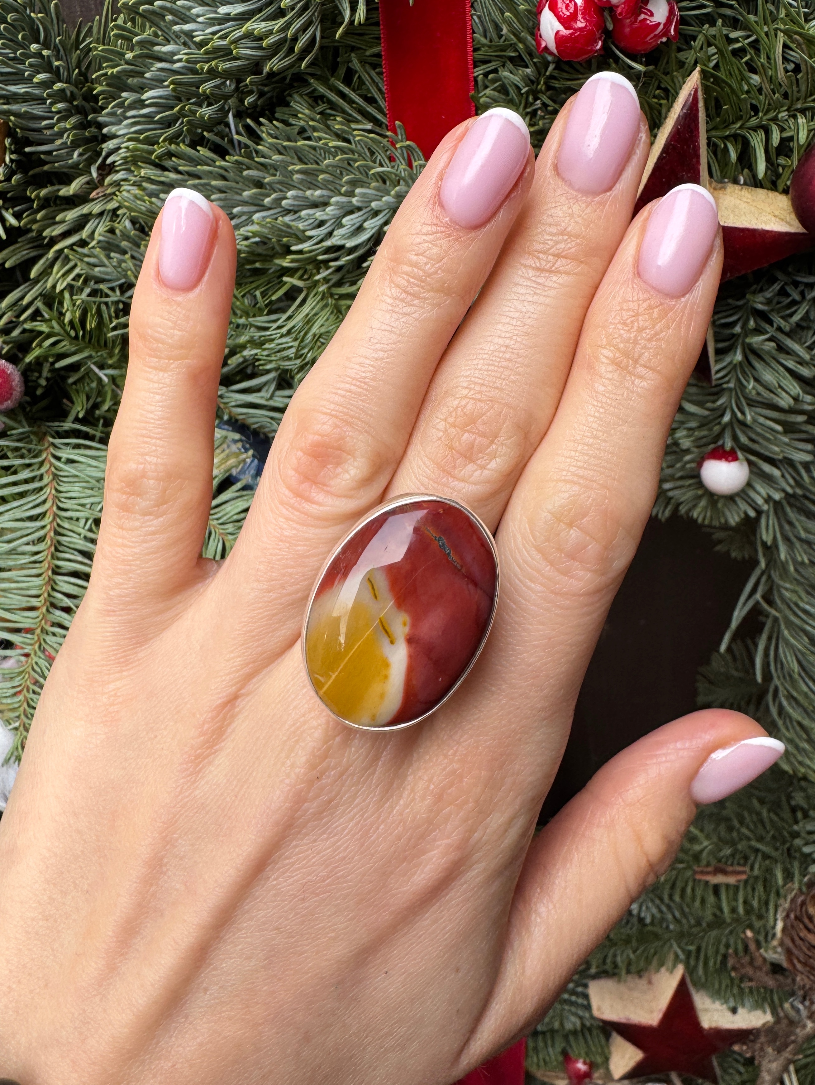 Ręcznie wykonany pierścionek z jaspisu mokaitu w kształcie owalnym i srebra pr.925