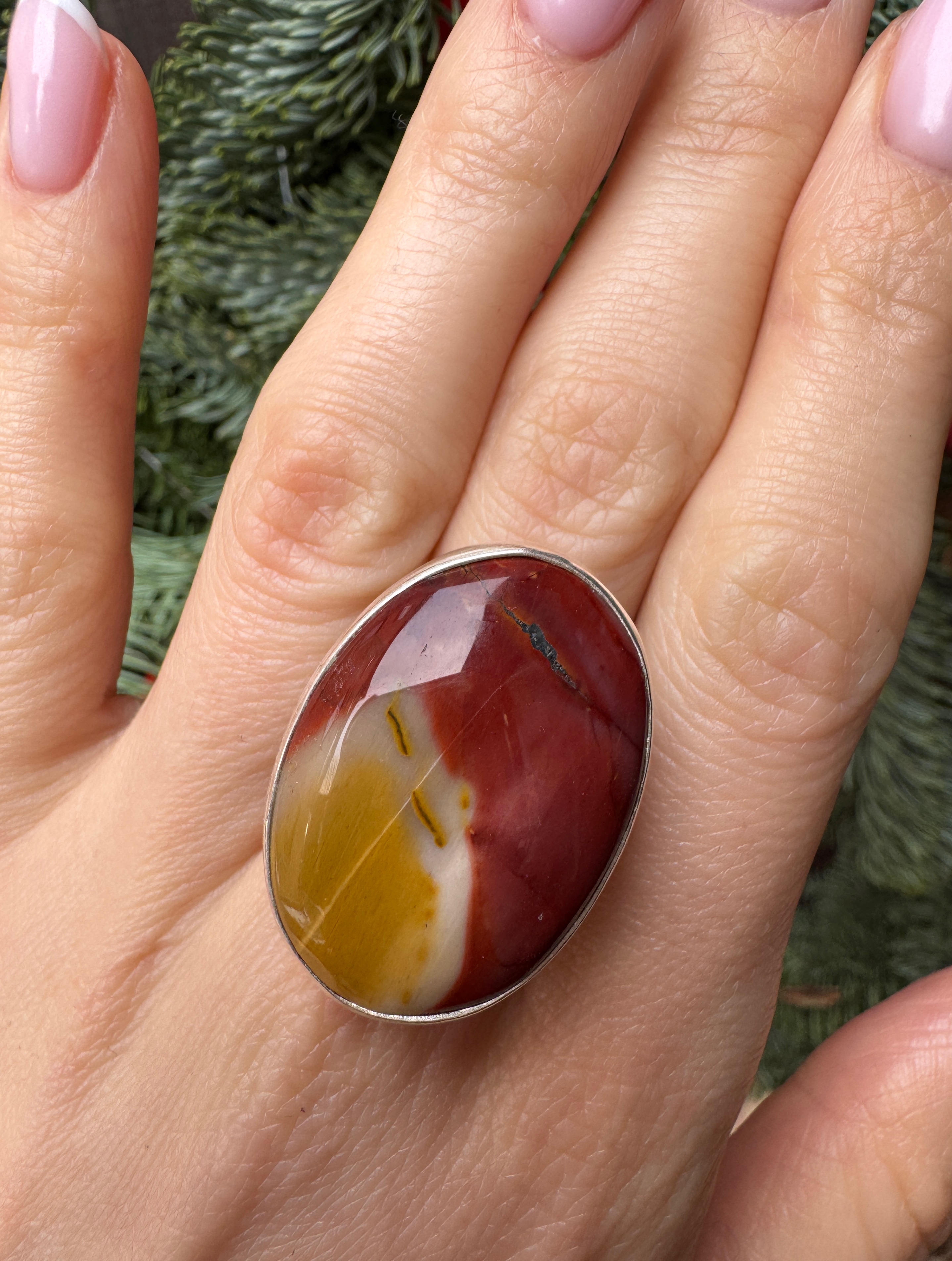 Pierścionek jaspis mokait owal