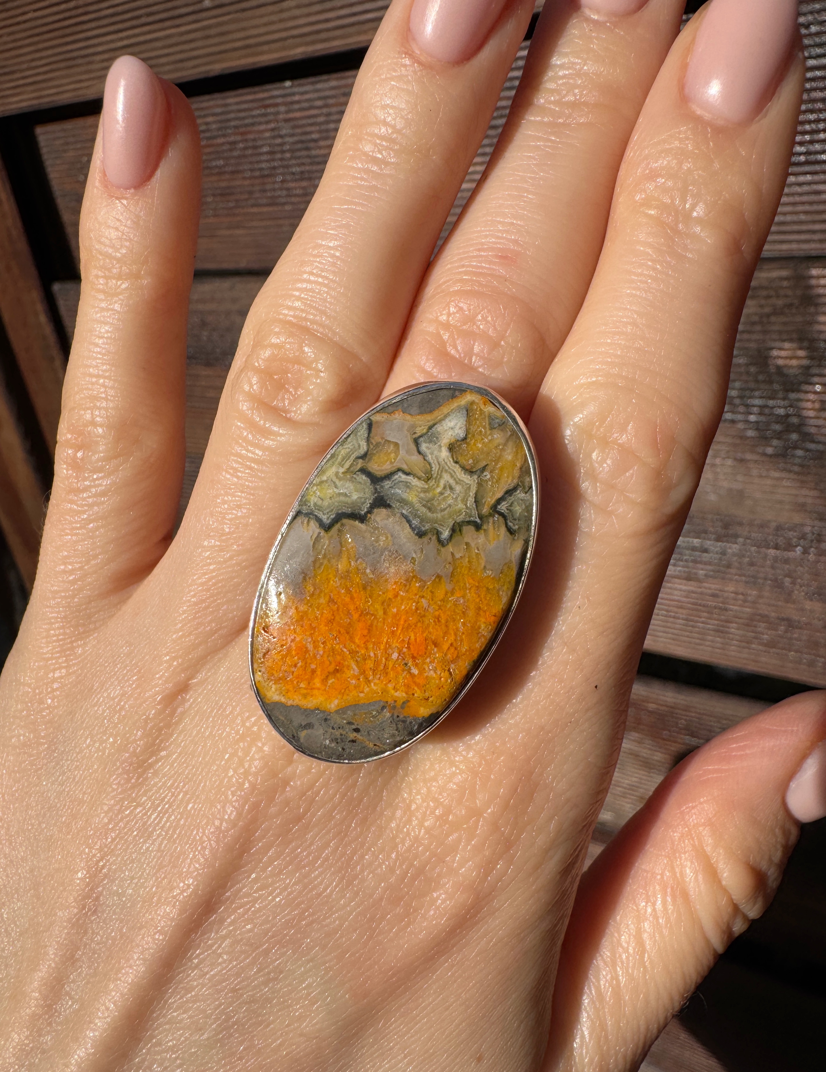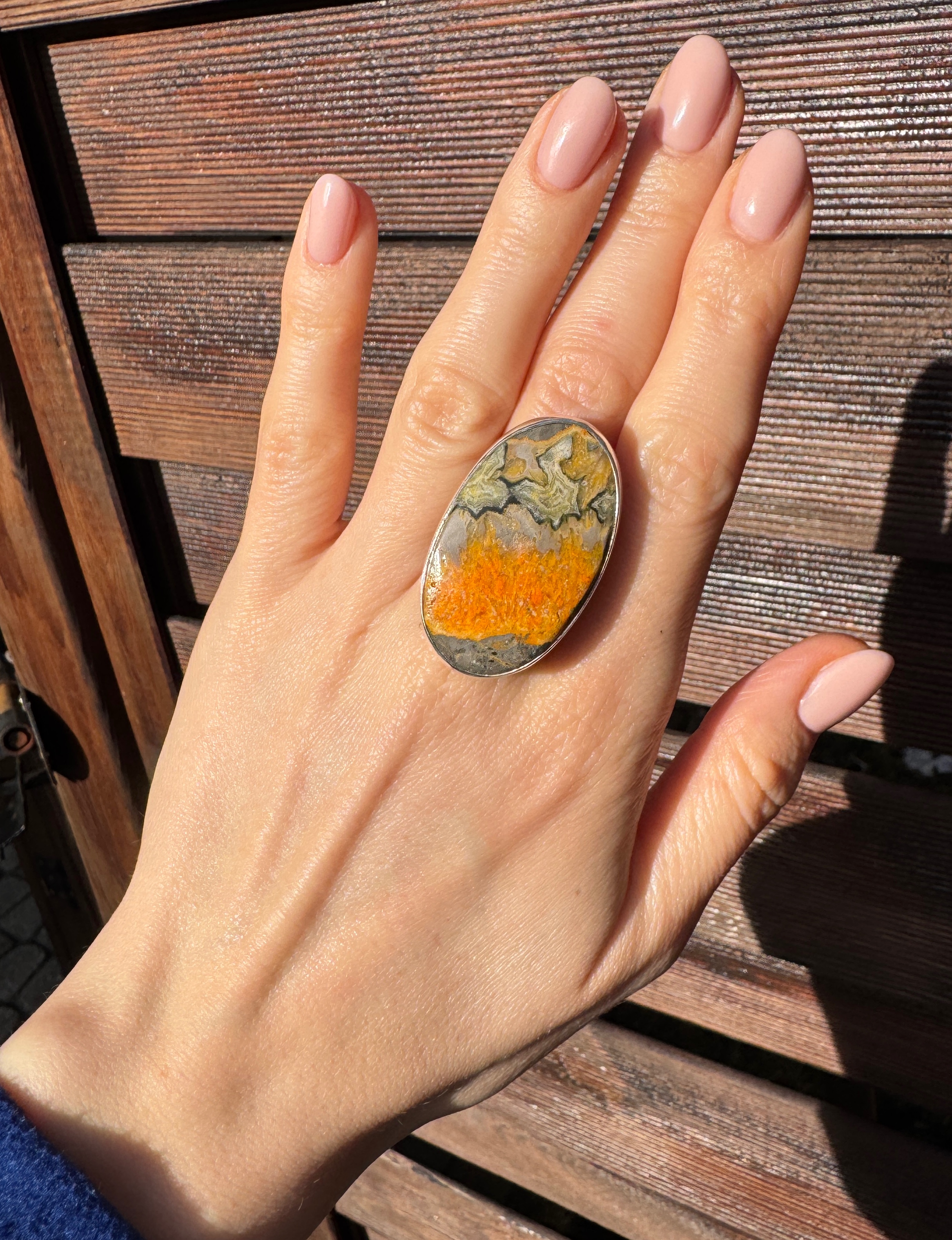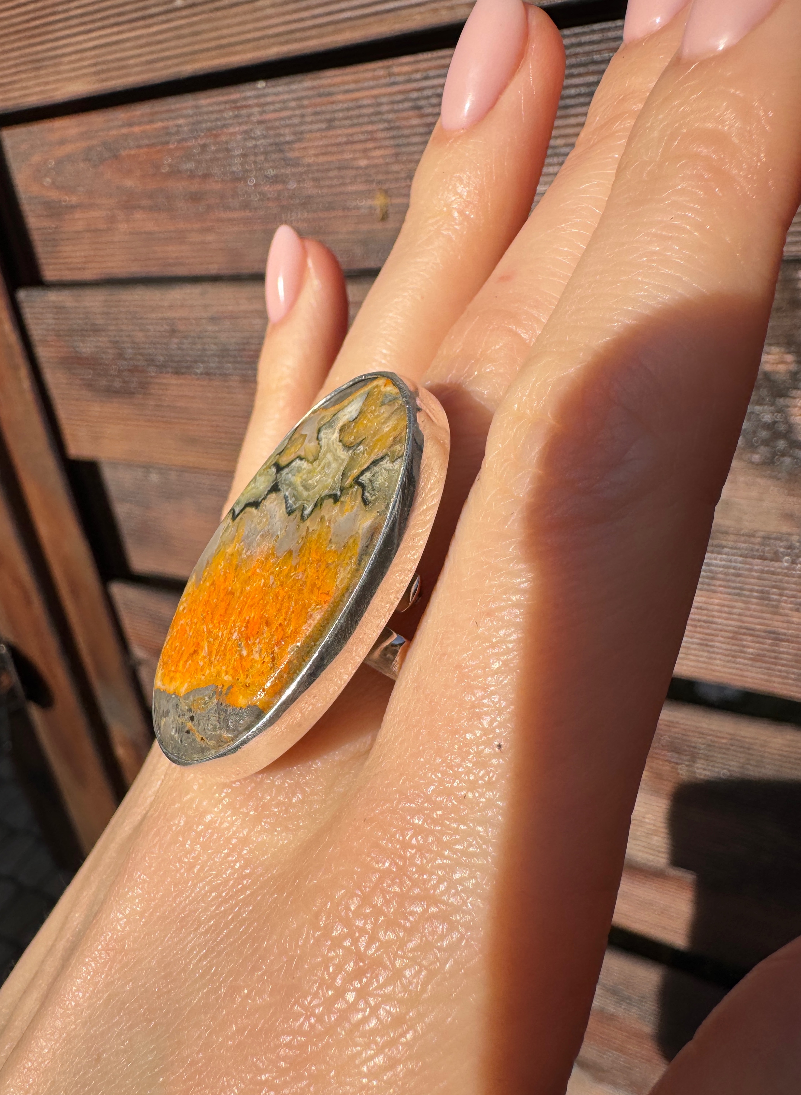 Ręcznie wykonany pierścionek z jaspisu trzmielego w kształcie owalnym i srebra pr.925