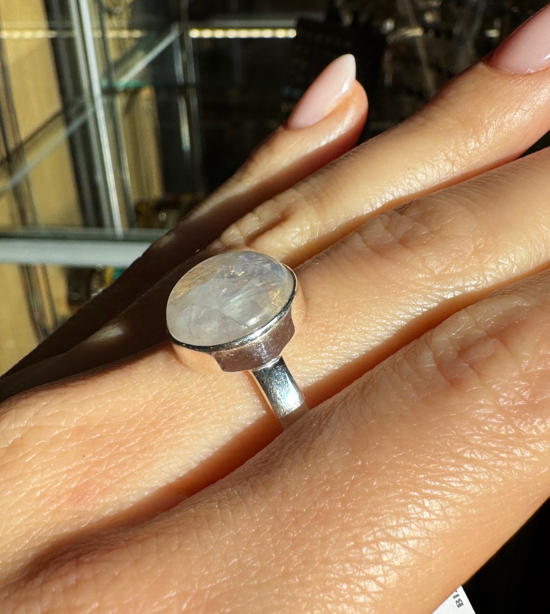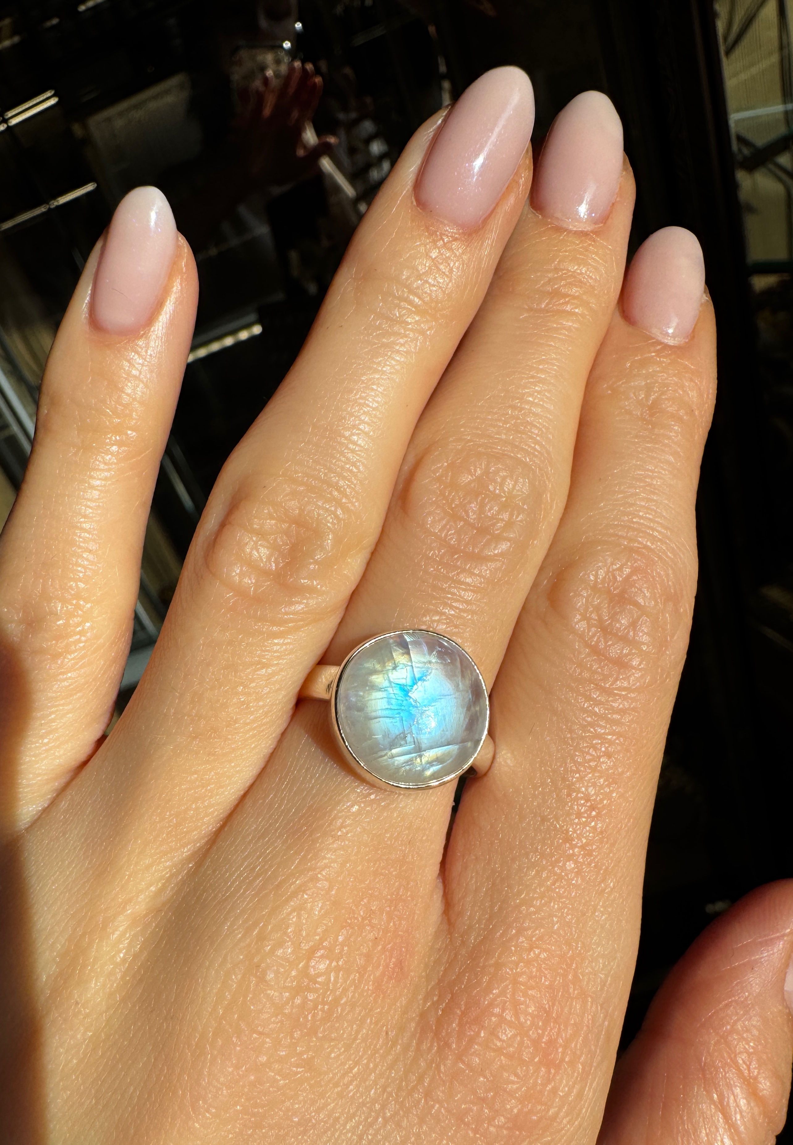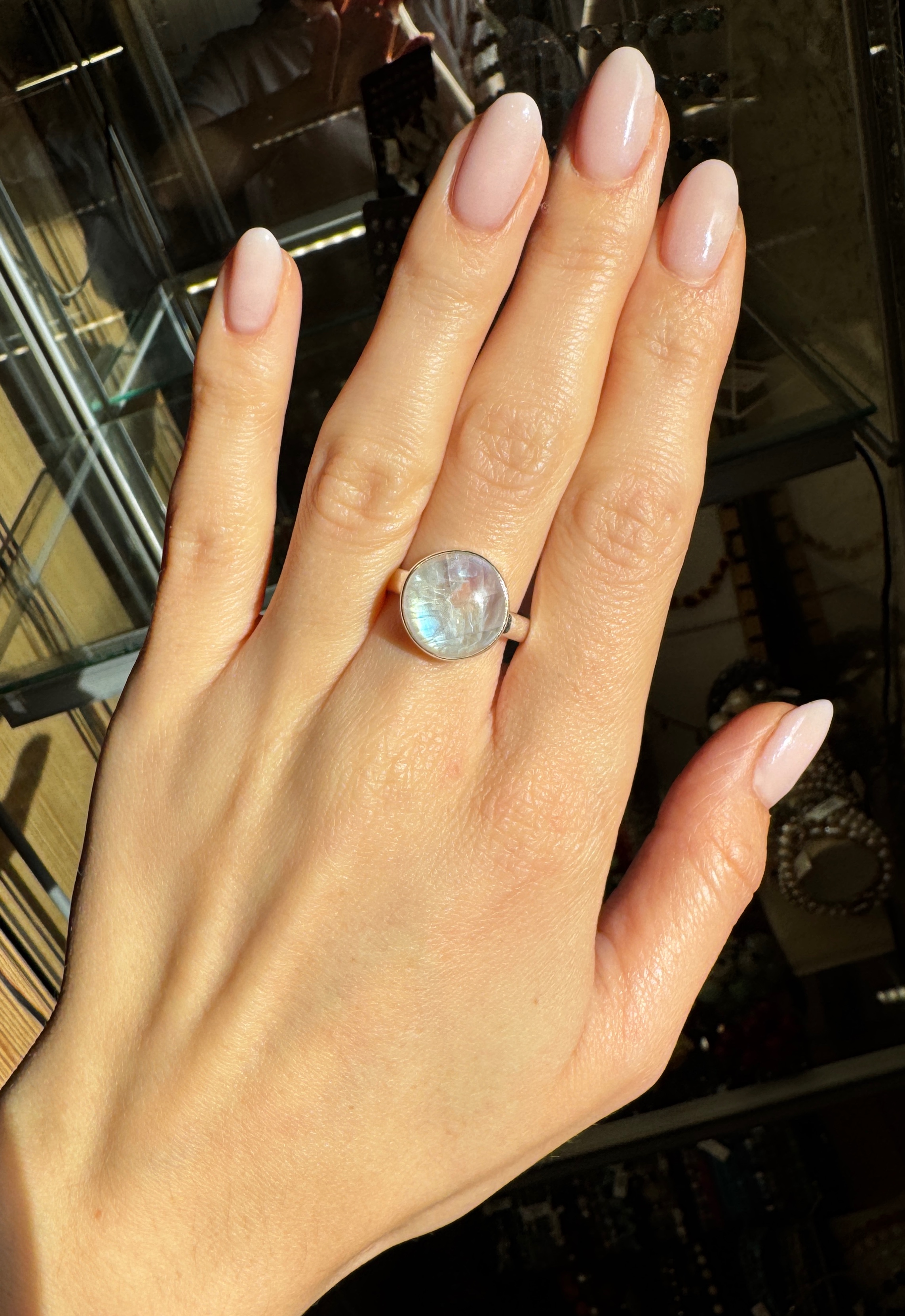 Pierścionek kamień księżycowy okrągły