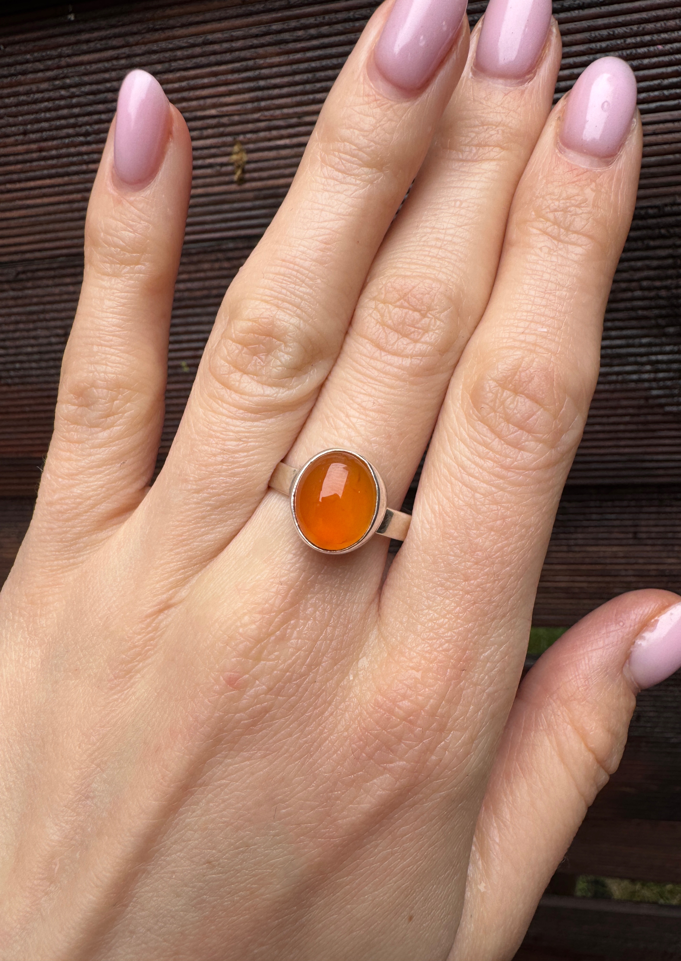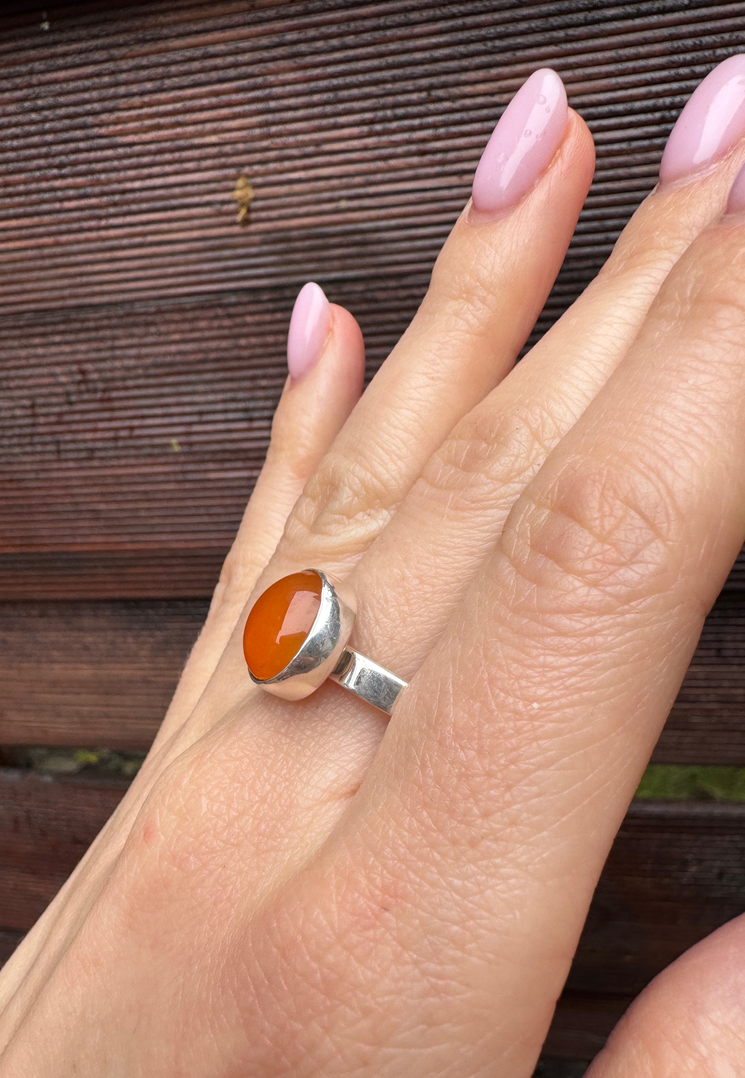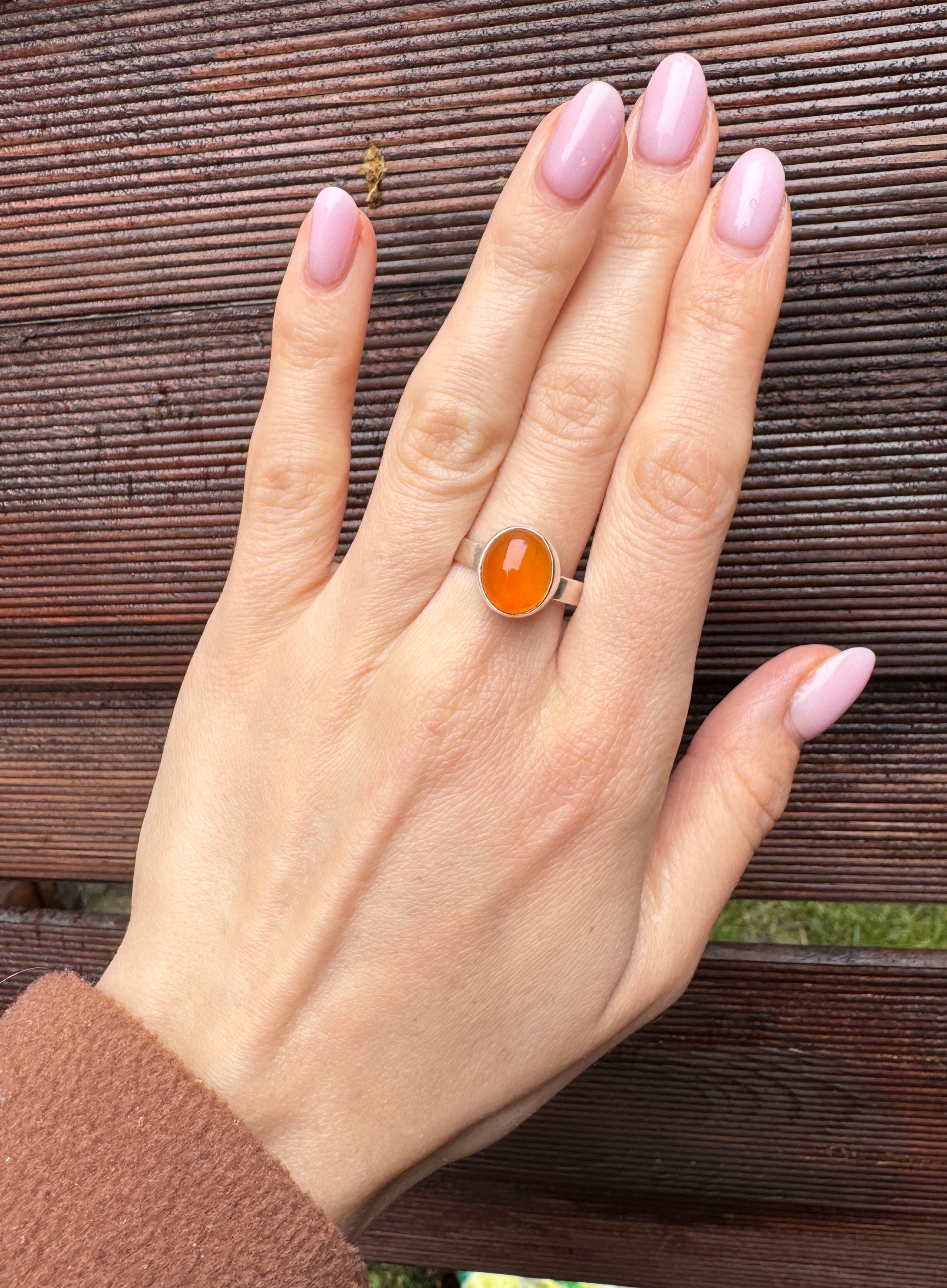 Piękny ręcznie wykonany pierścionek z karneolu i srebra pr.925.