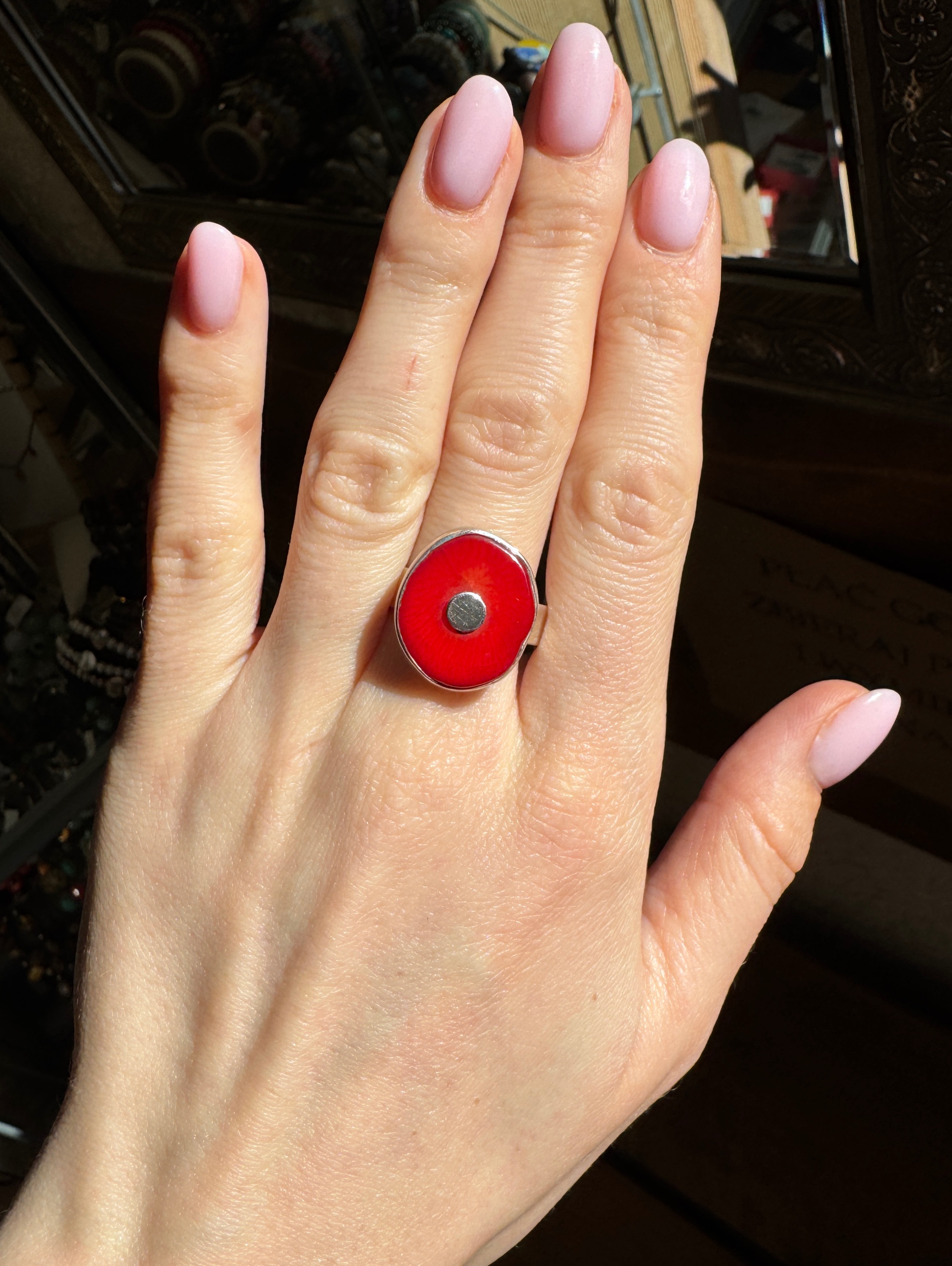 Ręcznie wykonany pierścionek z korala czerwonego oraz srebra pr.925